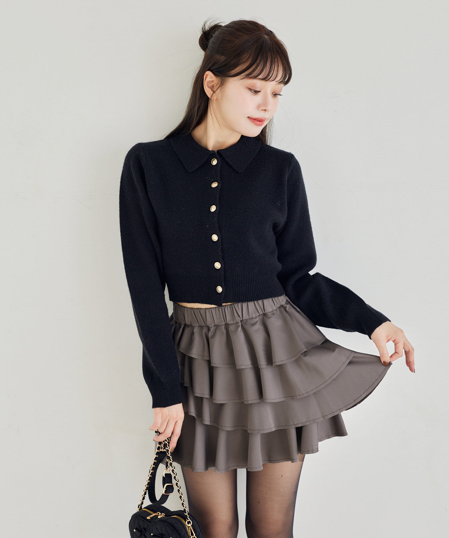 ミニ丈のプリーツやフリルスカートと合わせると韓国風ガーリーコーデに。
