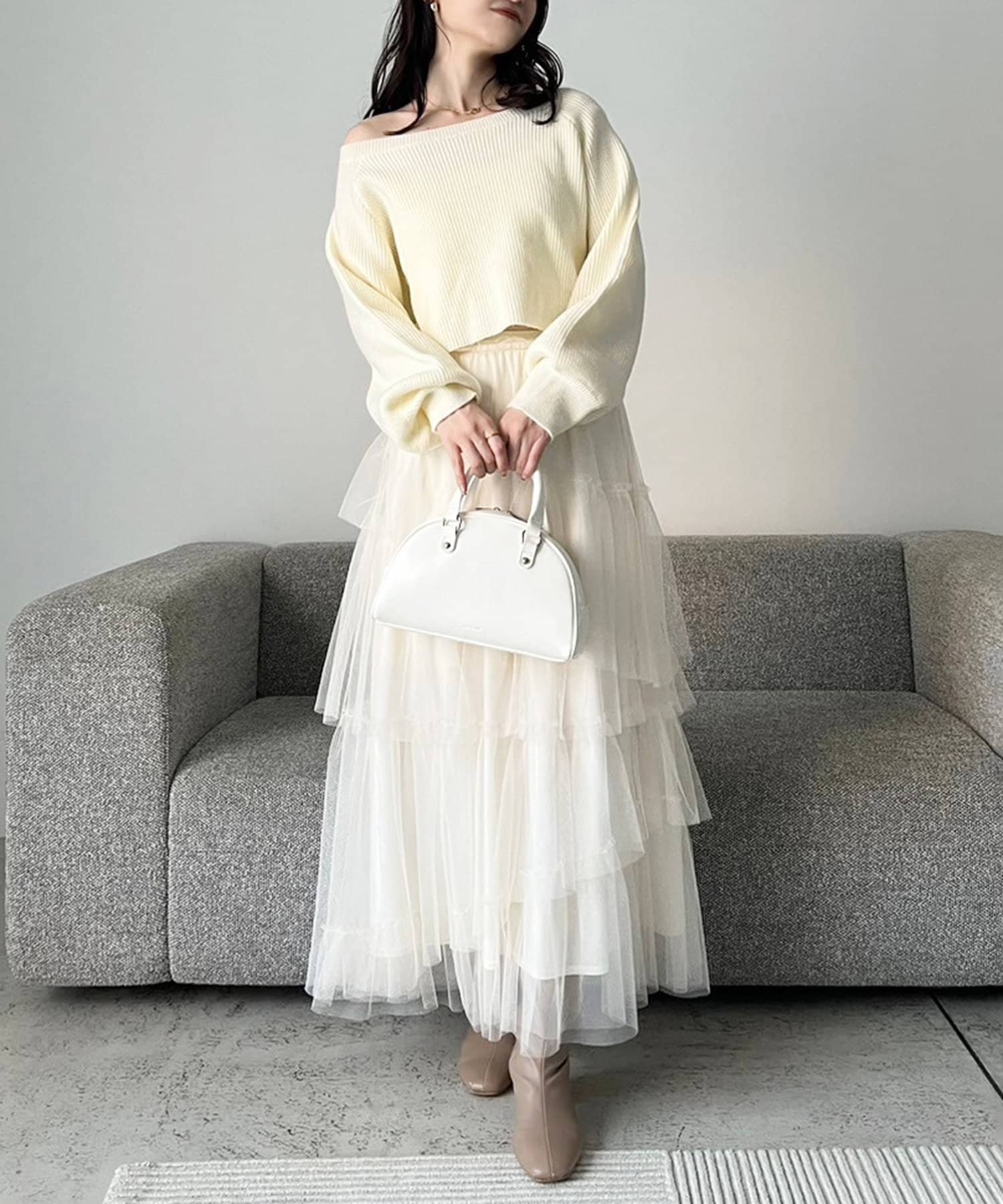 フェミニンにもカジュアルにも合わせやすいアイテムです。