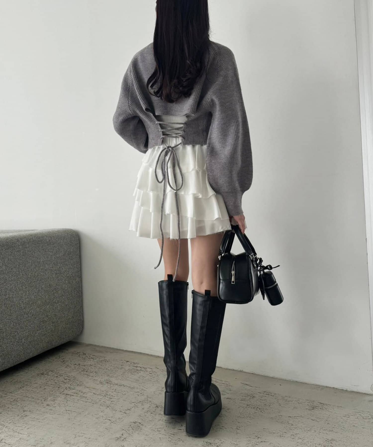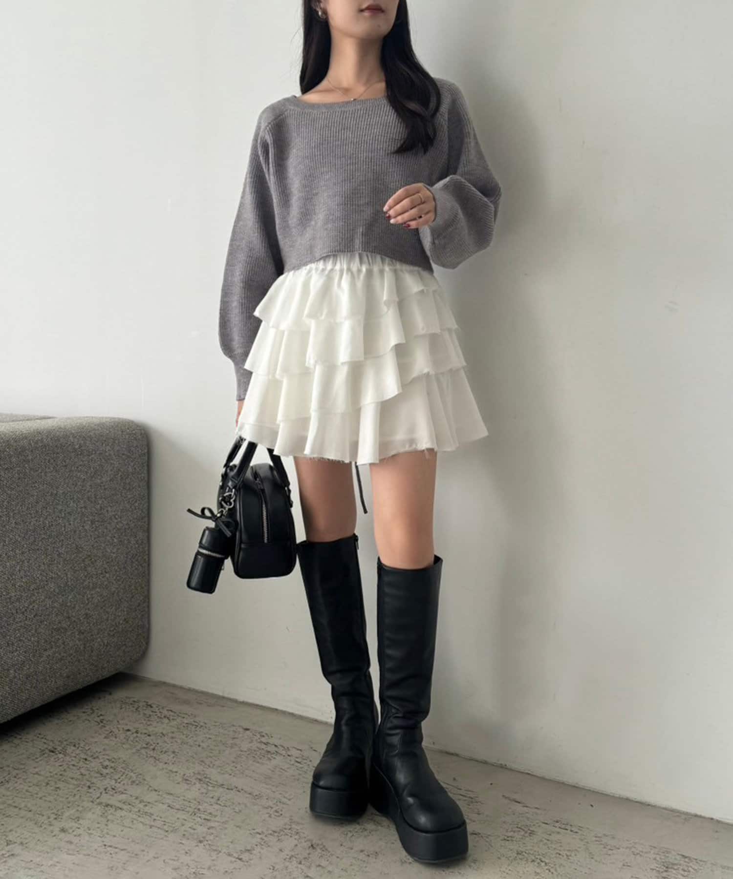 ミニ丈のボトムスと合わせると韓国風ガーリーコーデに◎