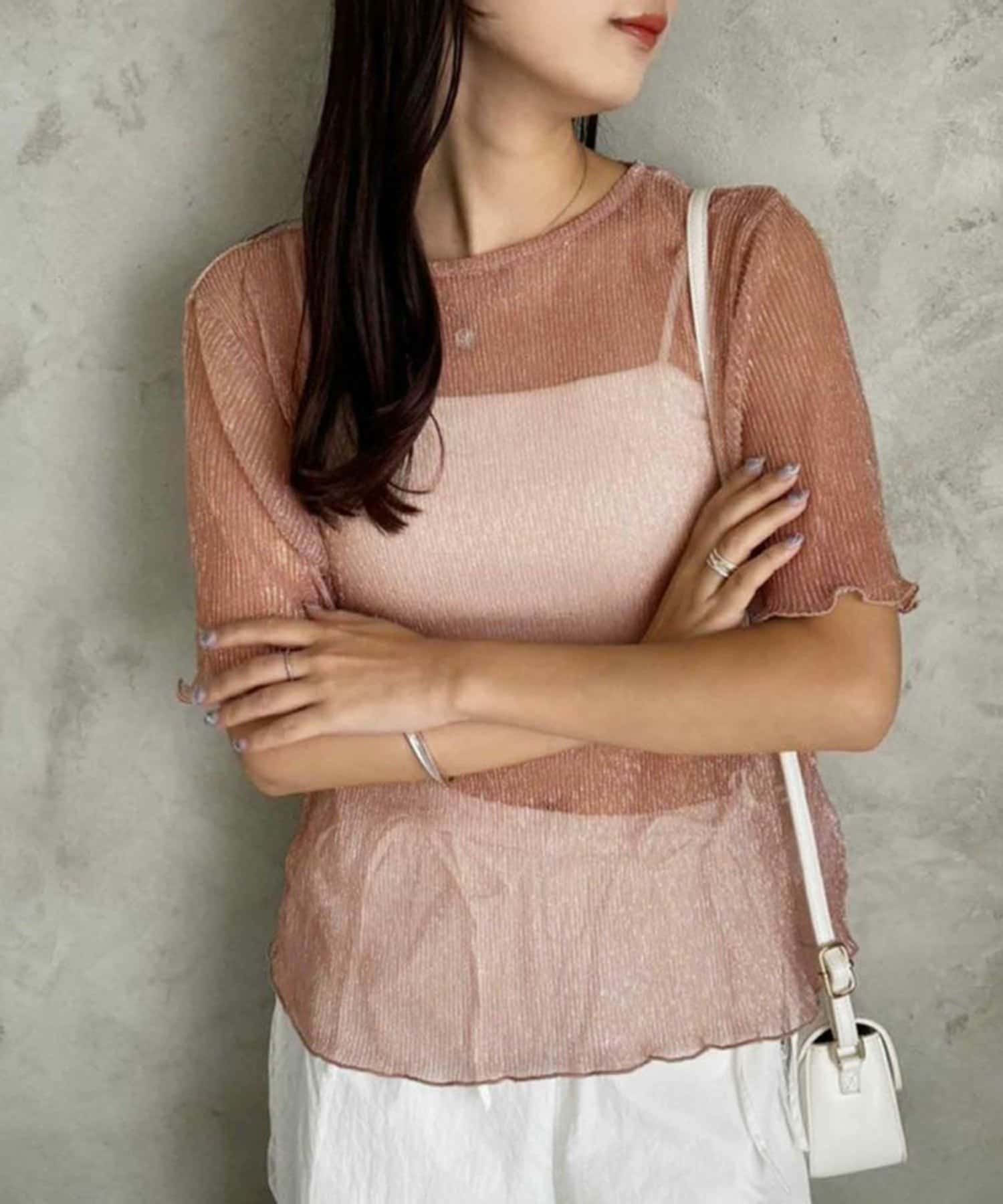 煌びやかなラメが華やかさをプラスしてくれるプリーツトップス