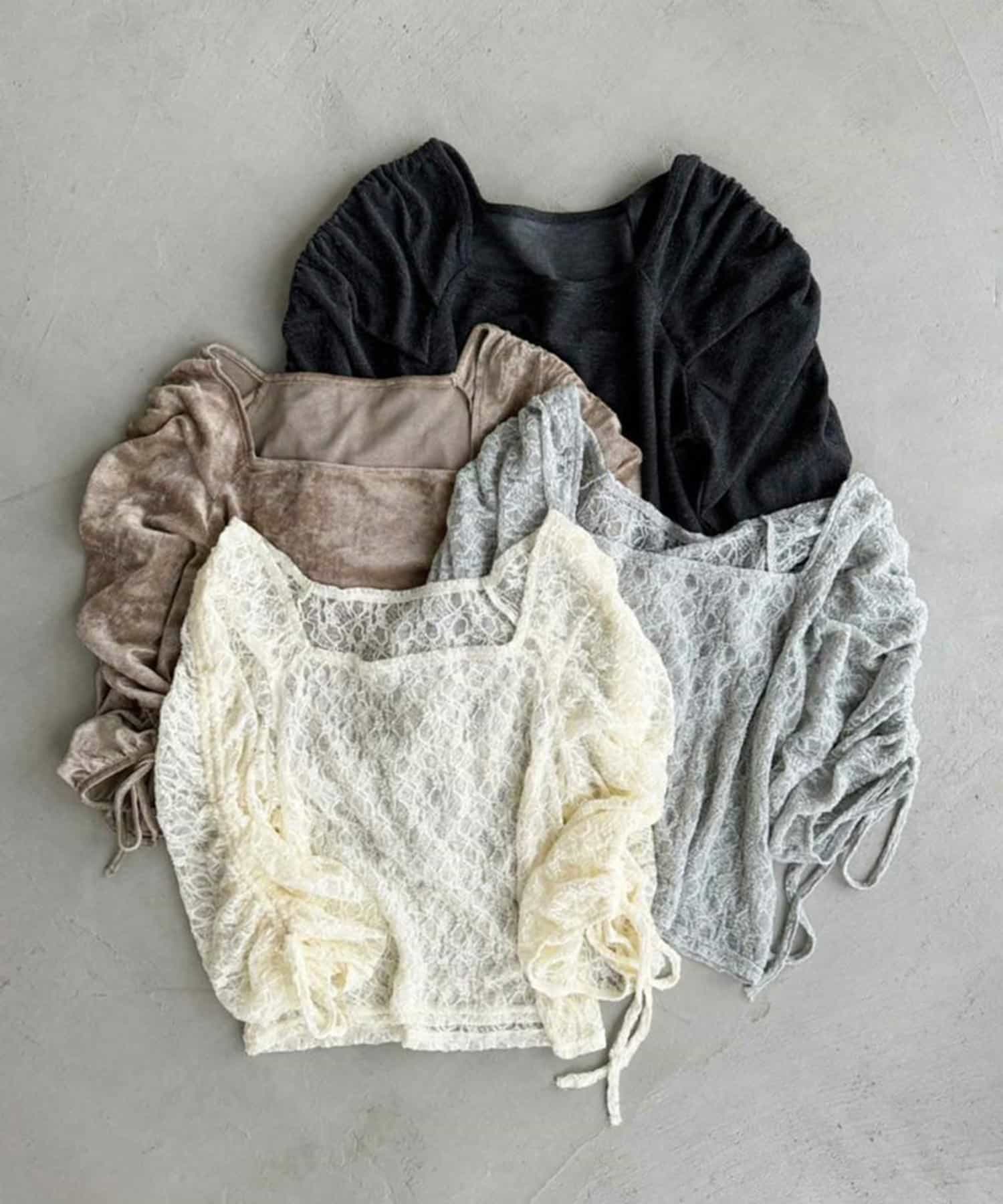 スクエアネックでお顔周りもスッキリと見せてくれます。