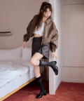 肌寒くなる時期にはニットカーデなどを合わせるのもオススメです。