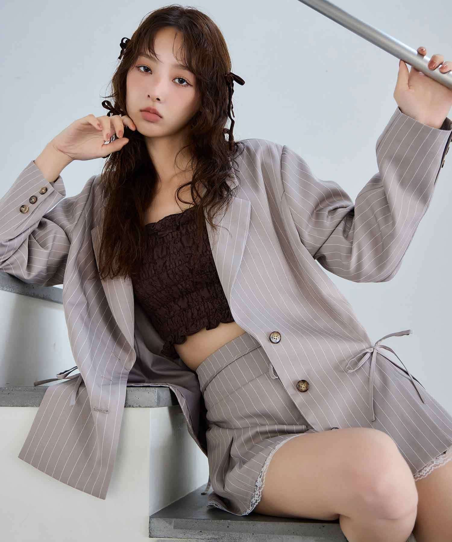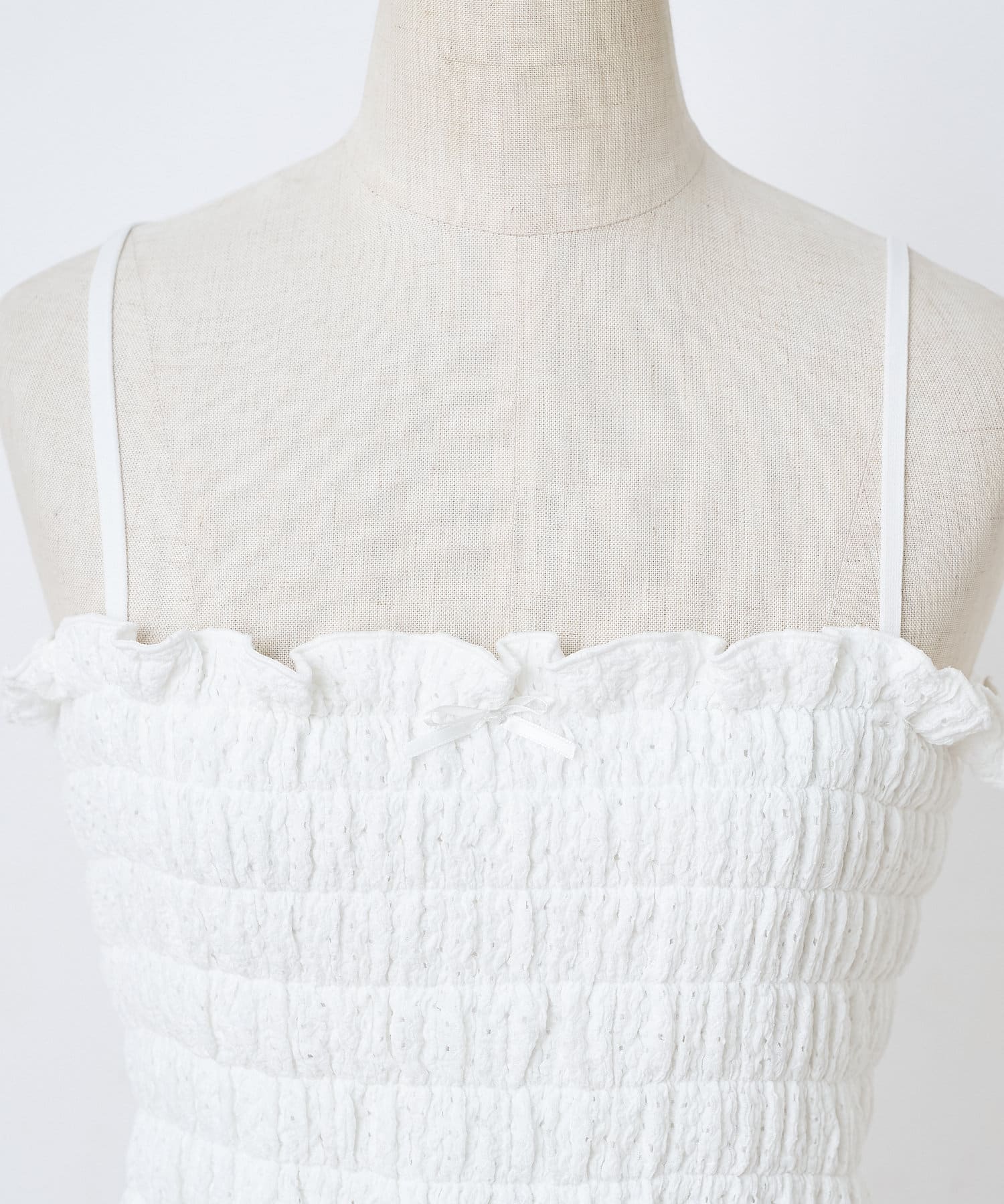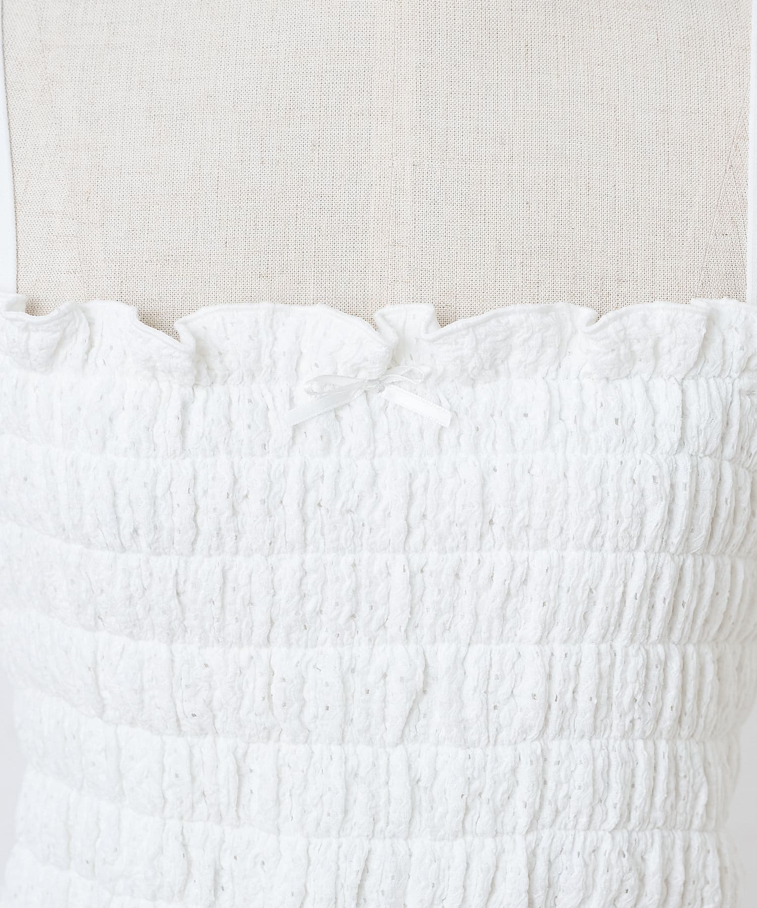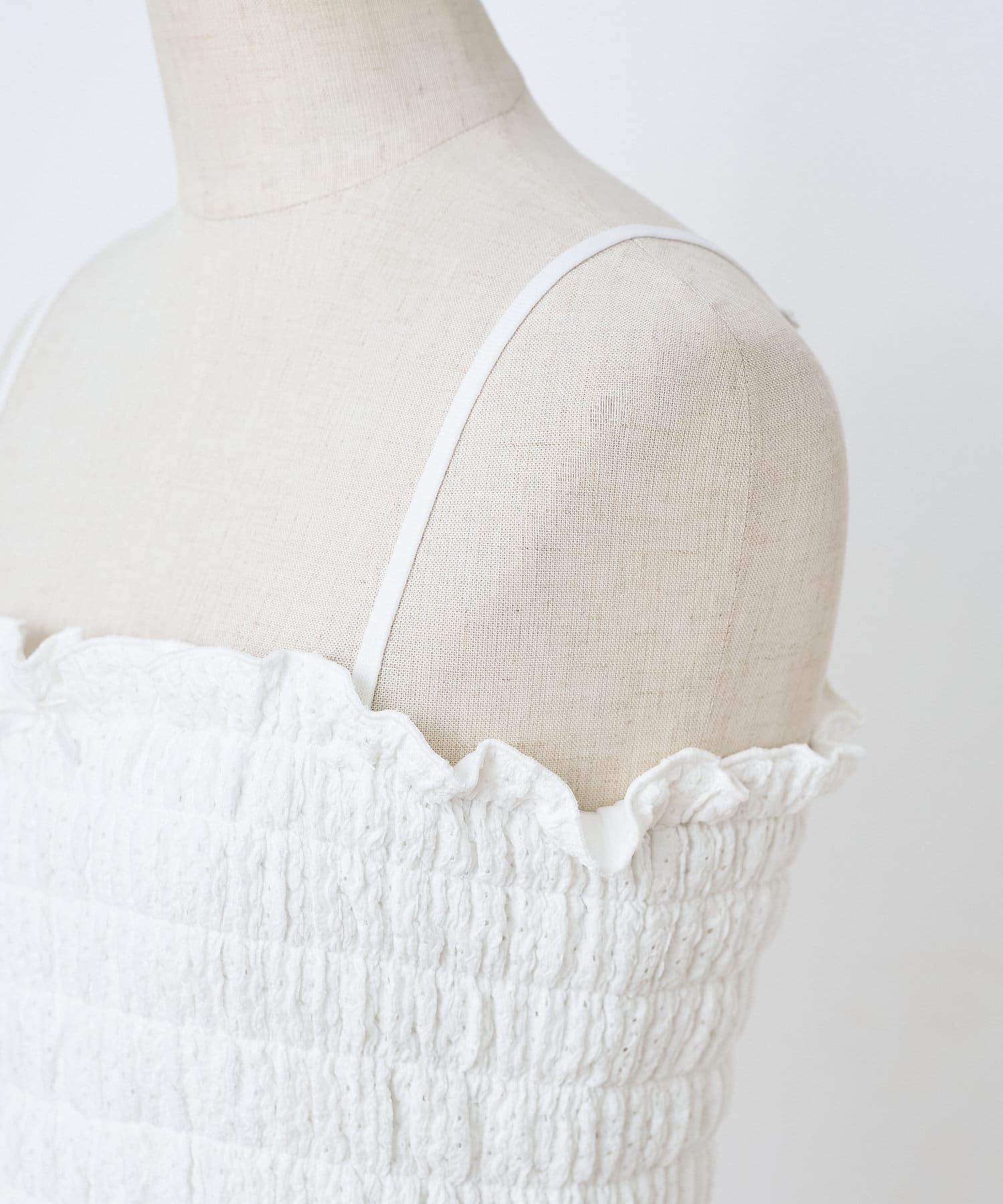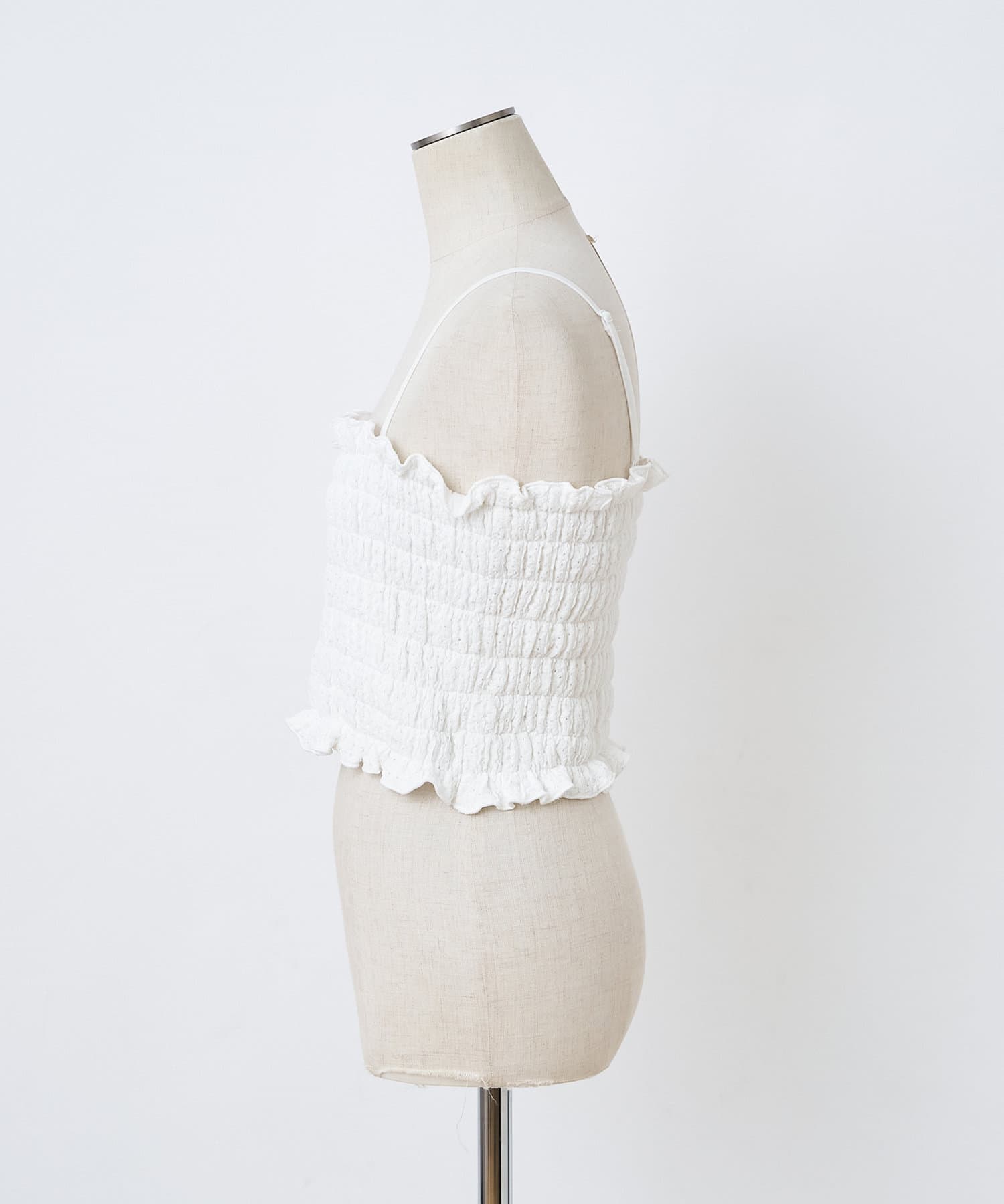 身体のラインにフィットしマルチに使えるシャーリングビスチェ
