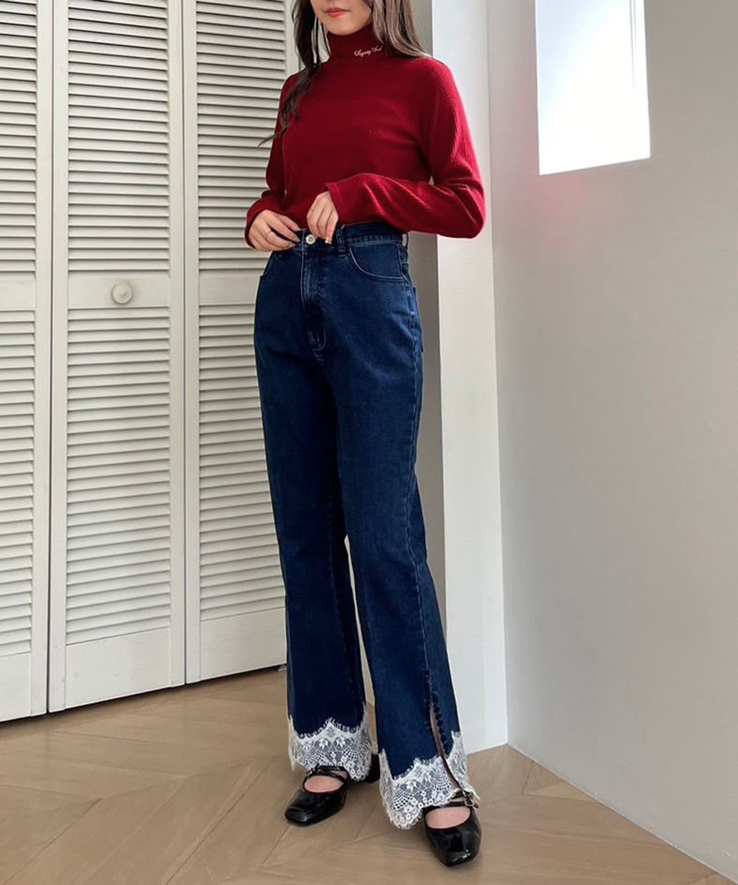 首元の刺しゅうがコーデのアクセントに。