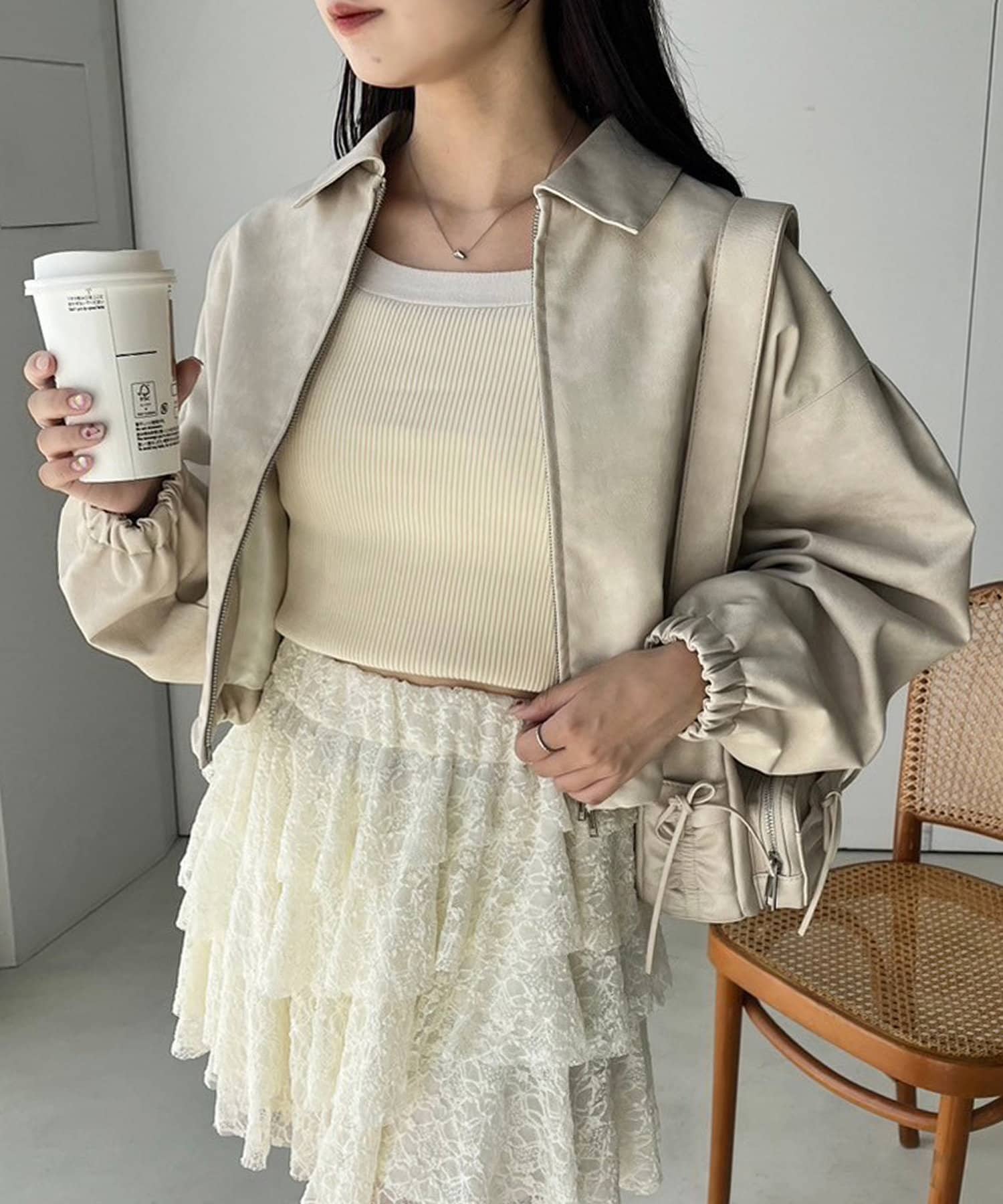 【one after another】合皮ショートブルゾン