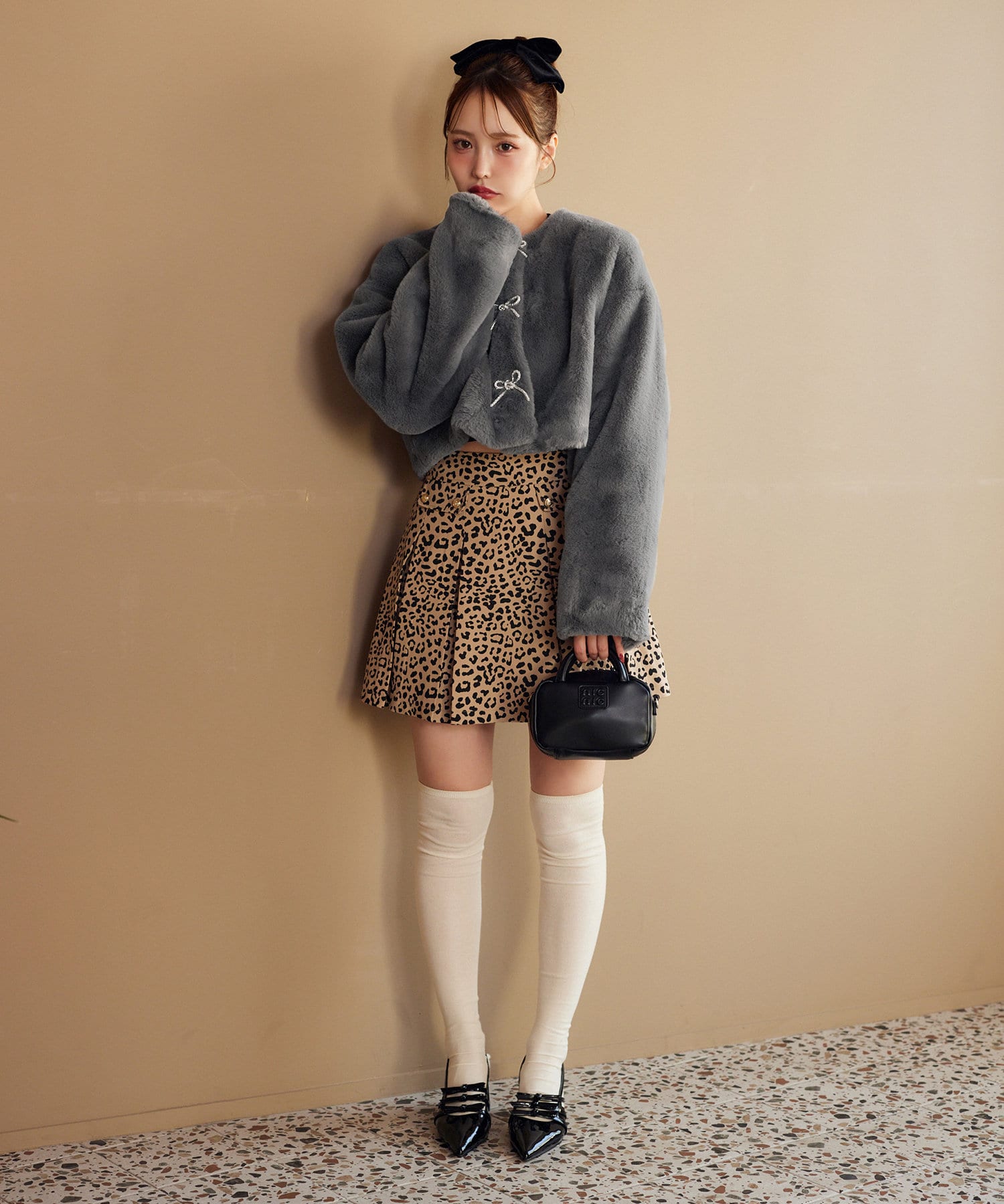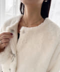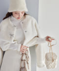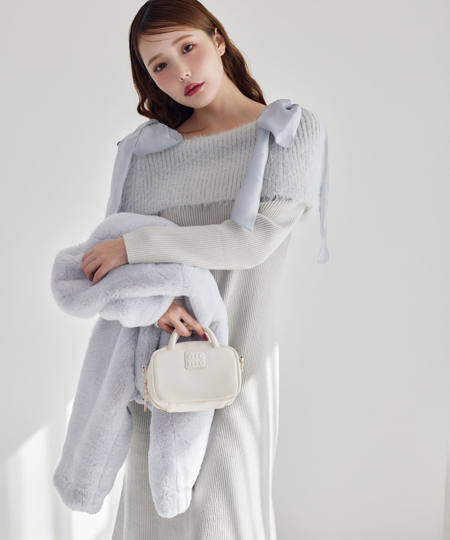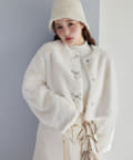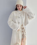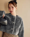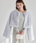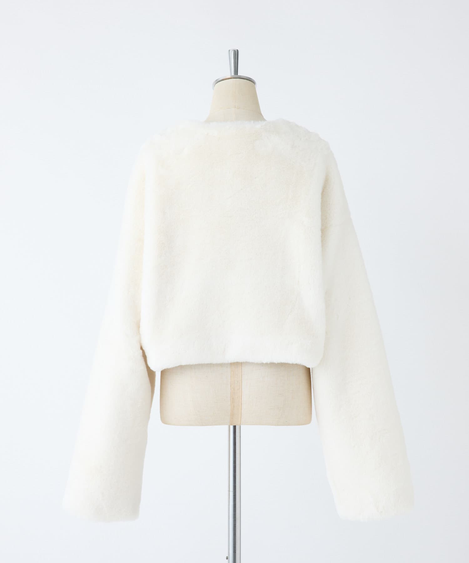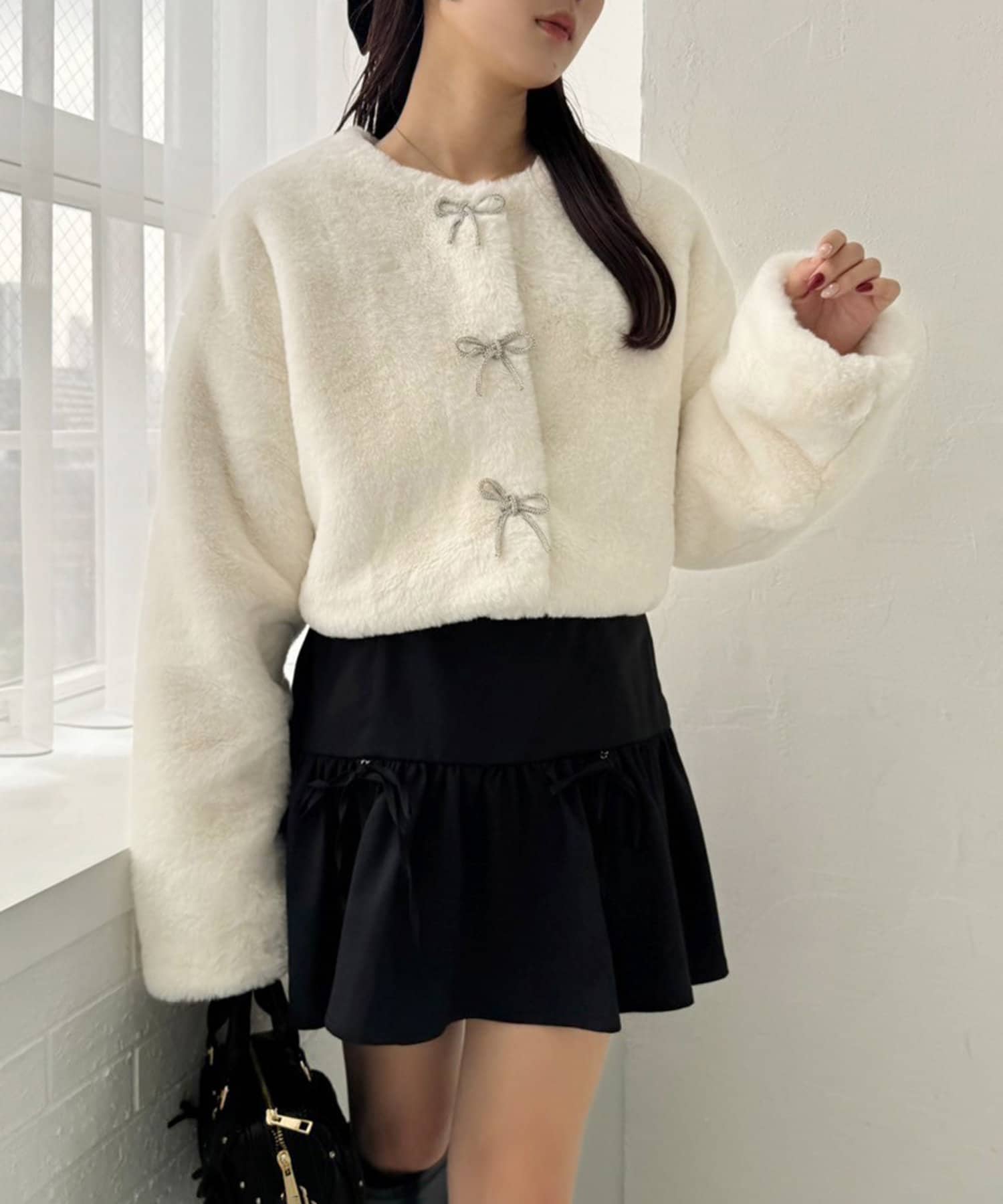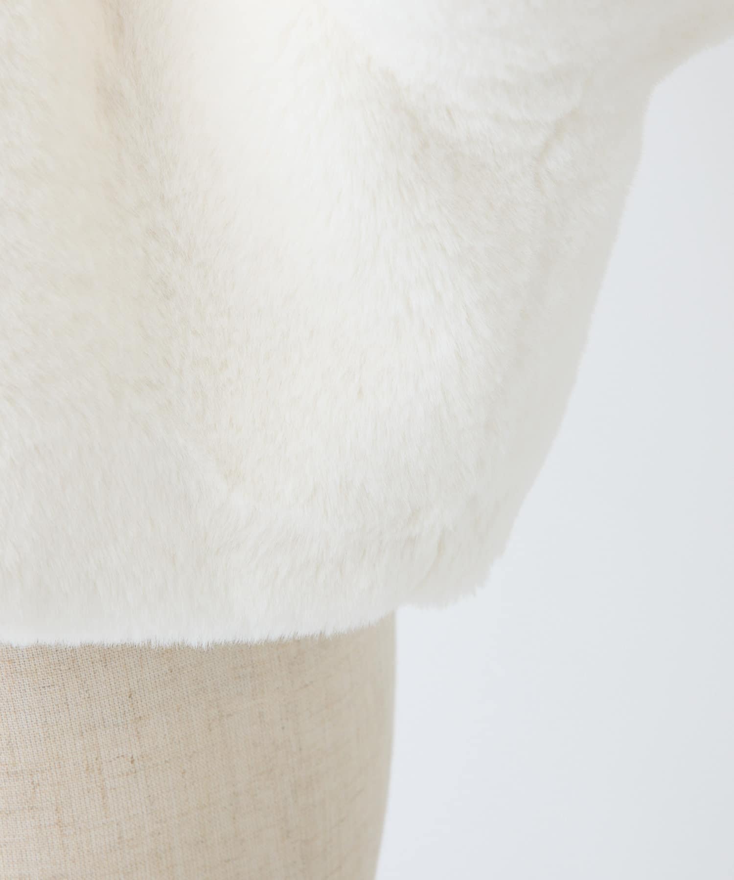 ふんわり柔らかで肌触りも良く、リボンのビジューがポイントのフェイクファーコート
