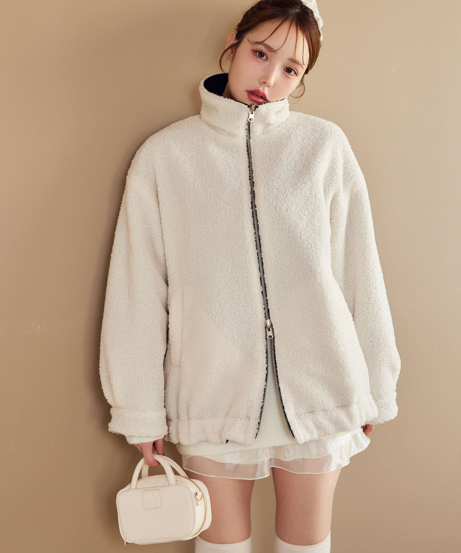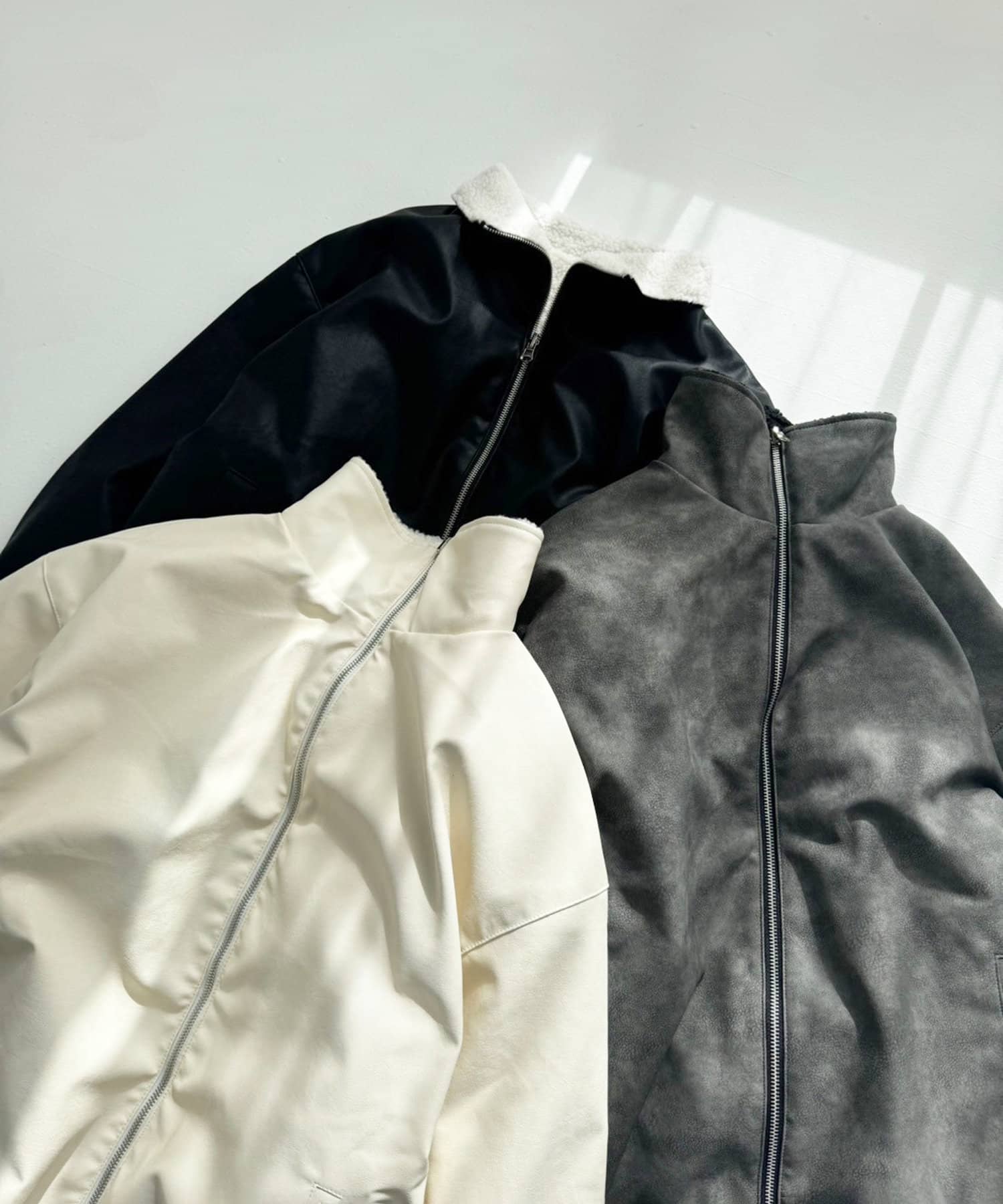 1枚でフェイクレザーとボアの両方が楽しめる2WAYジャケット