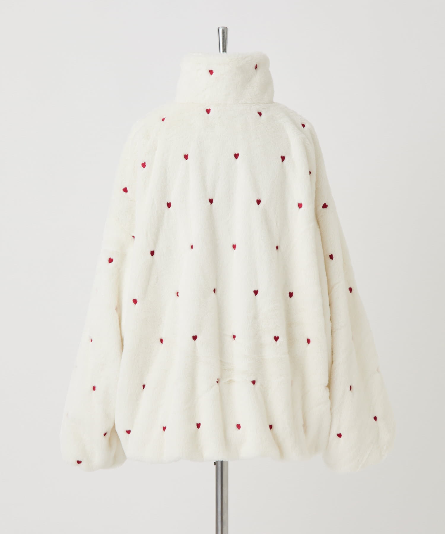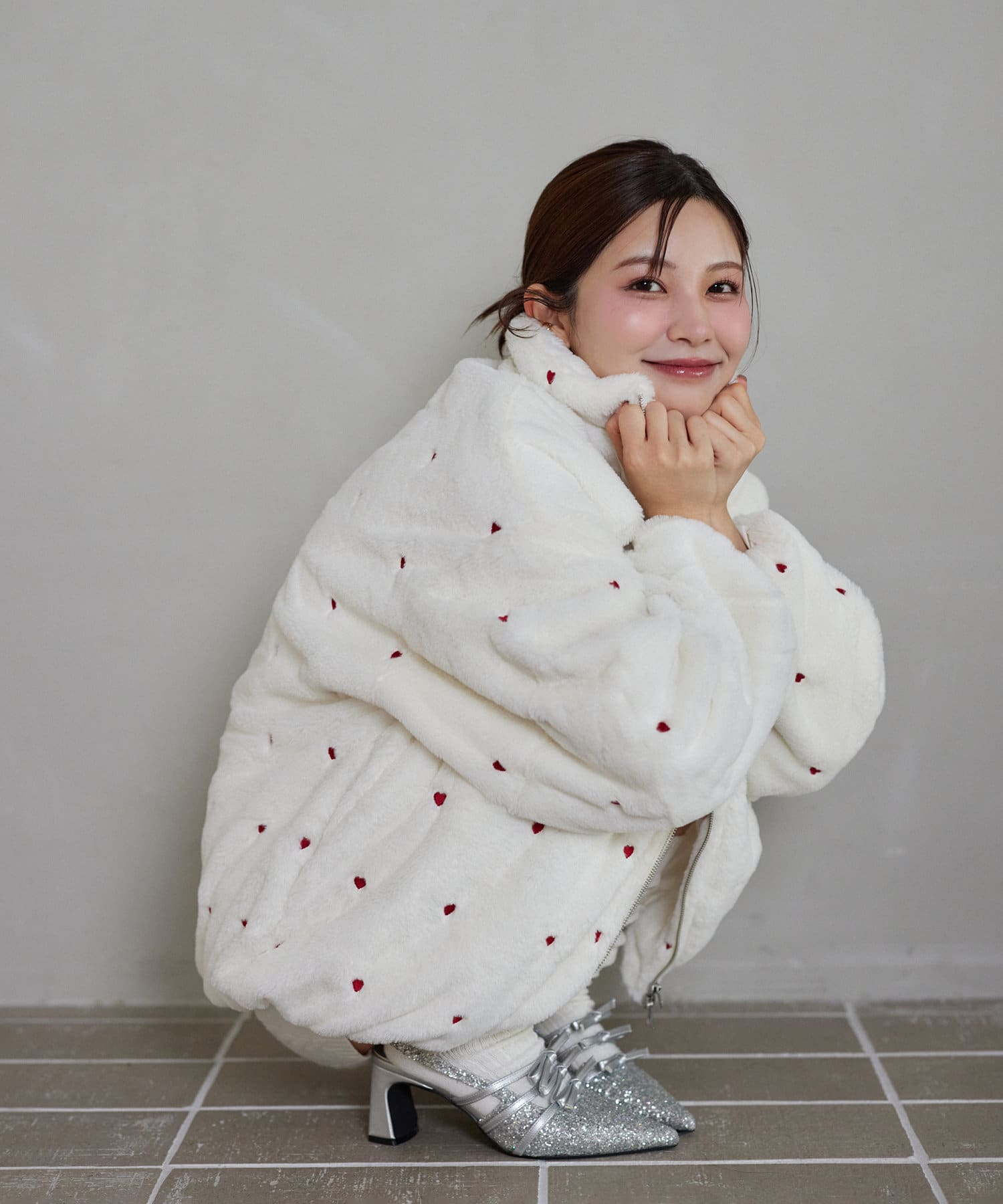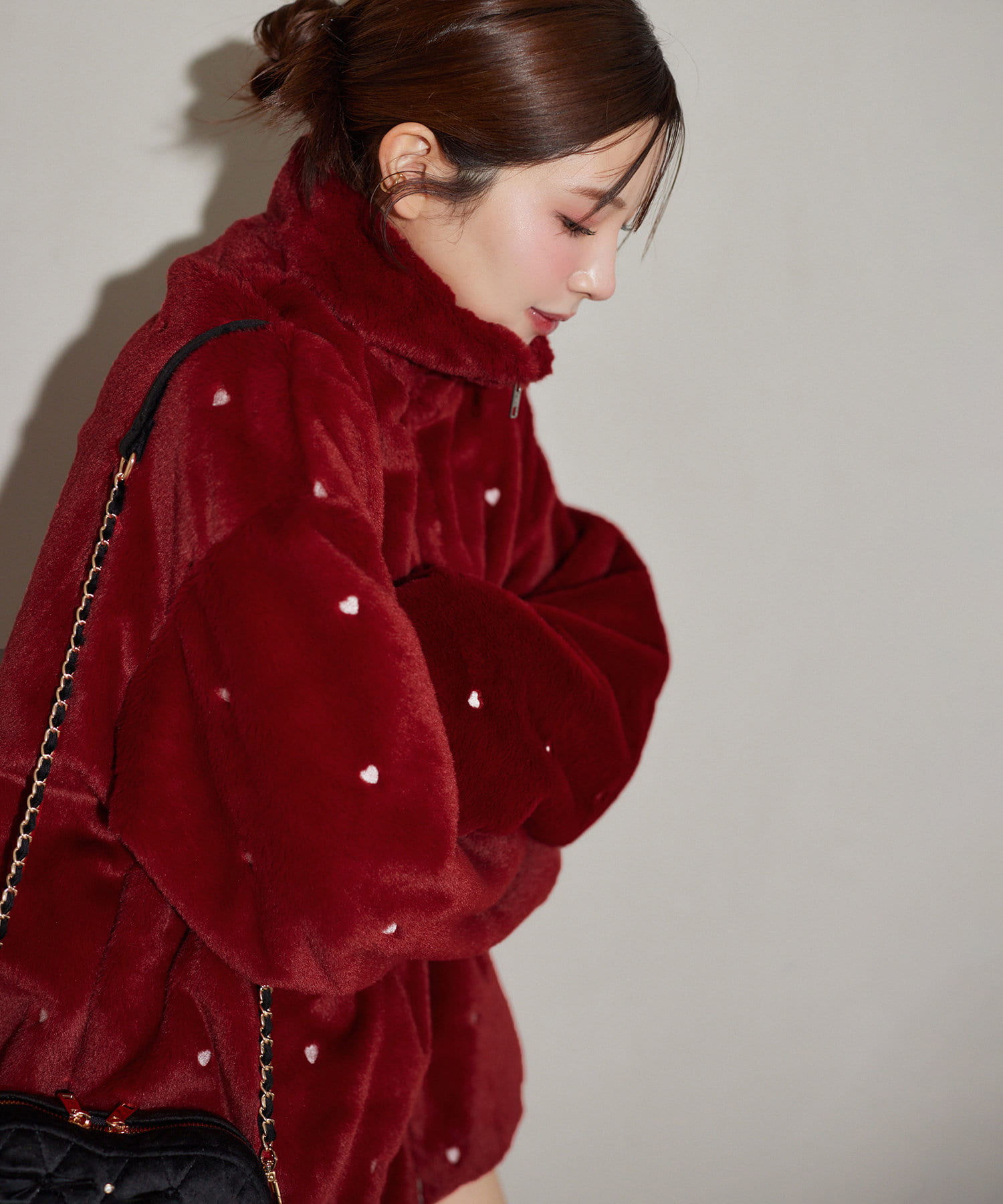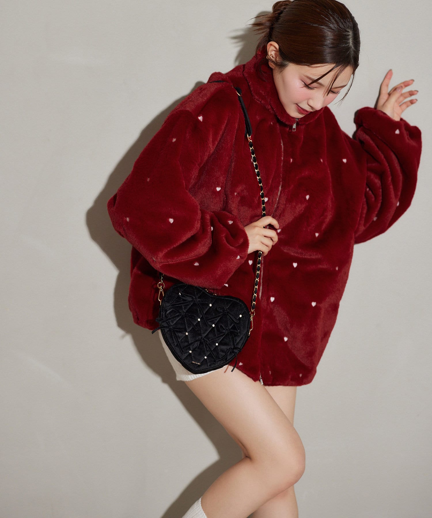 小ぶりなハートが可愛いフェイクファーブルゾン