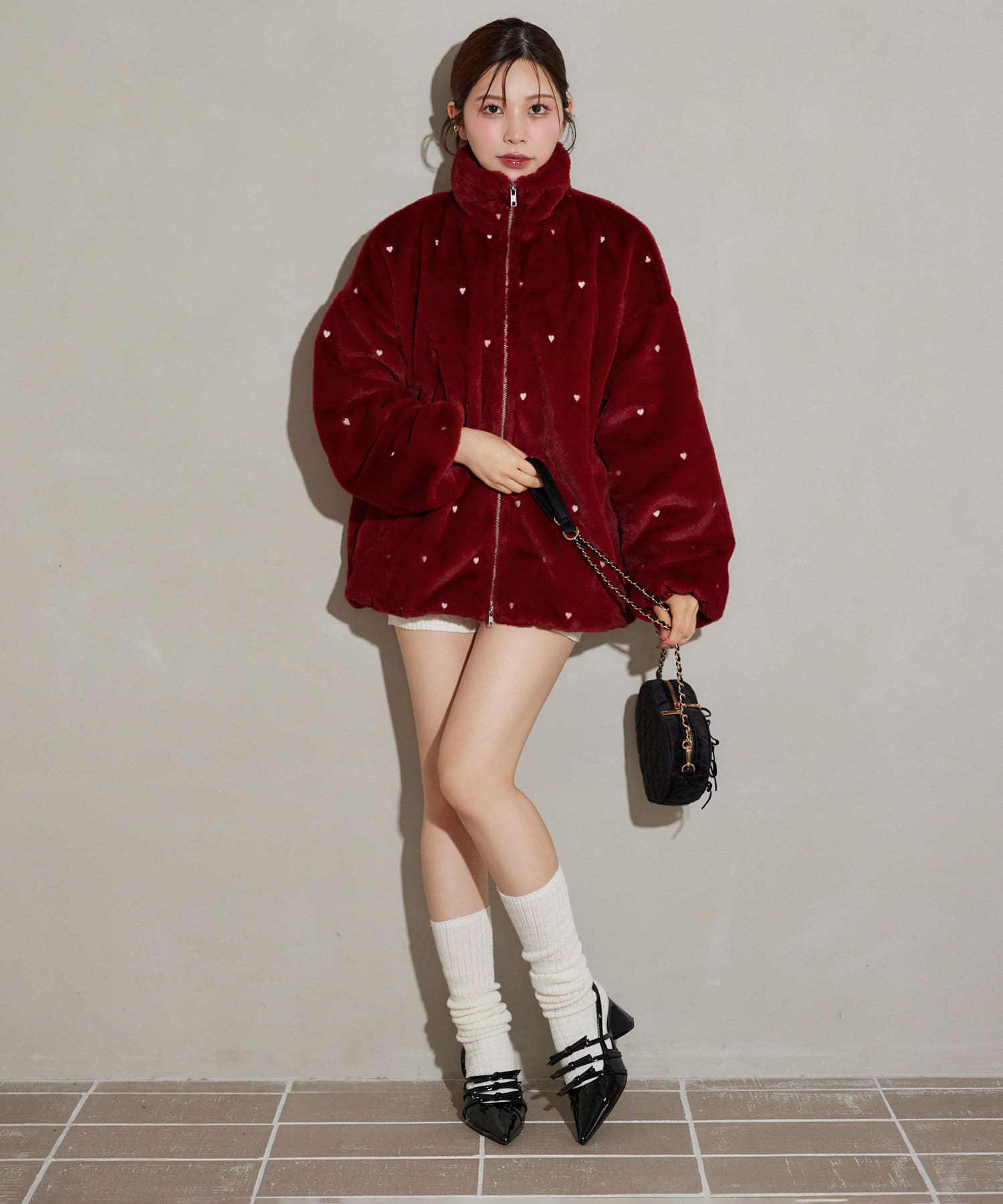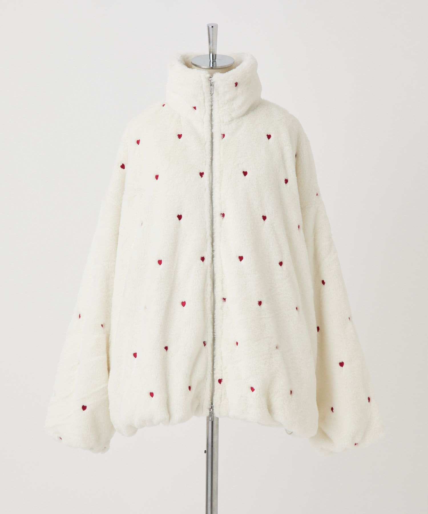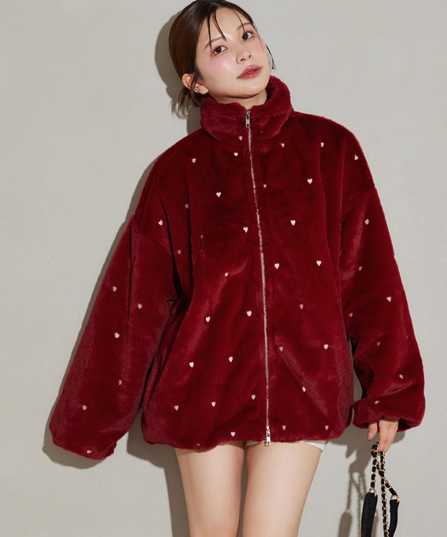 小ぶりなハートが可愛いフェイクファーブルゾン