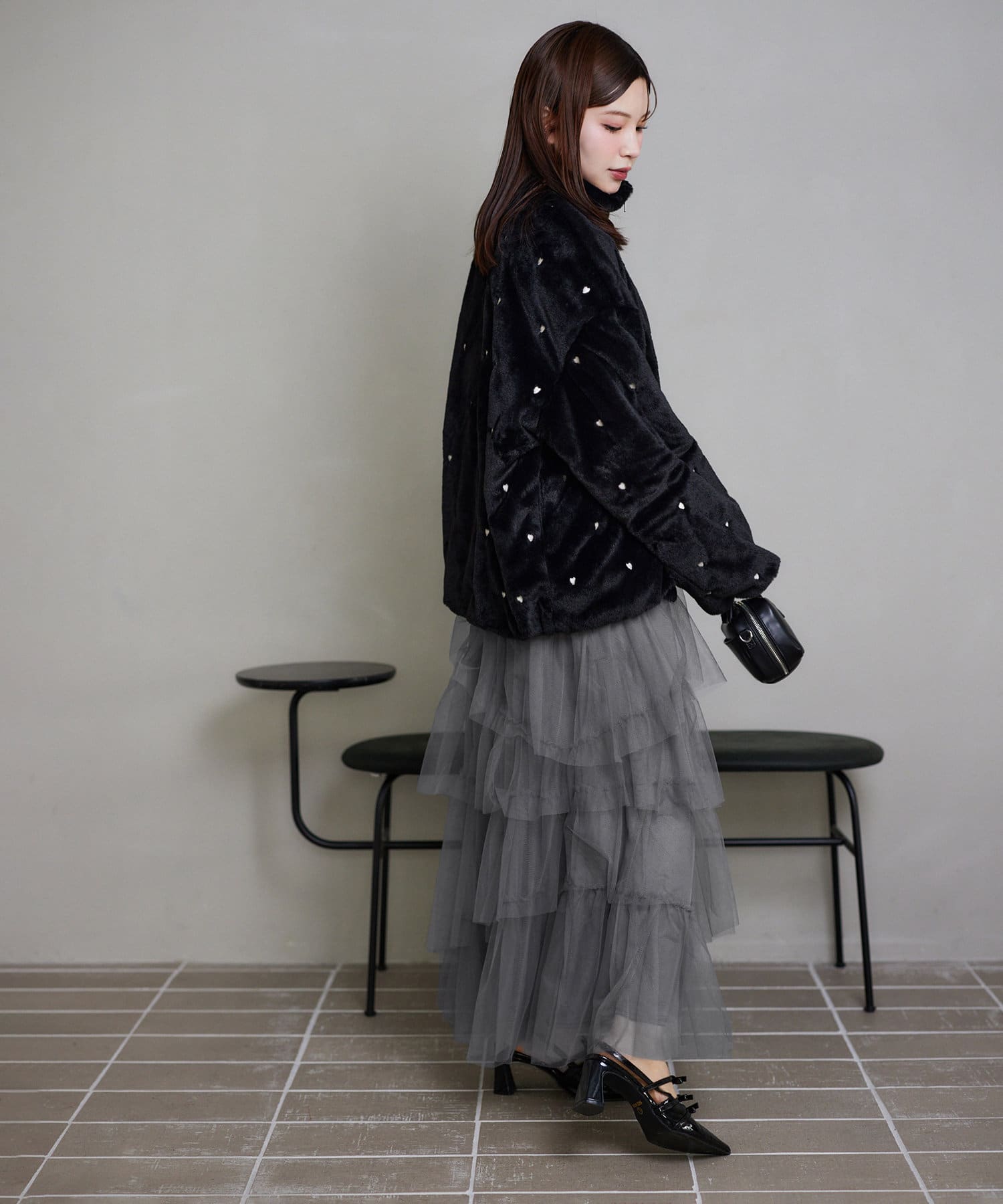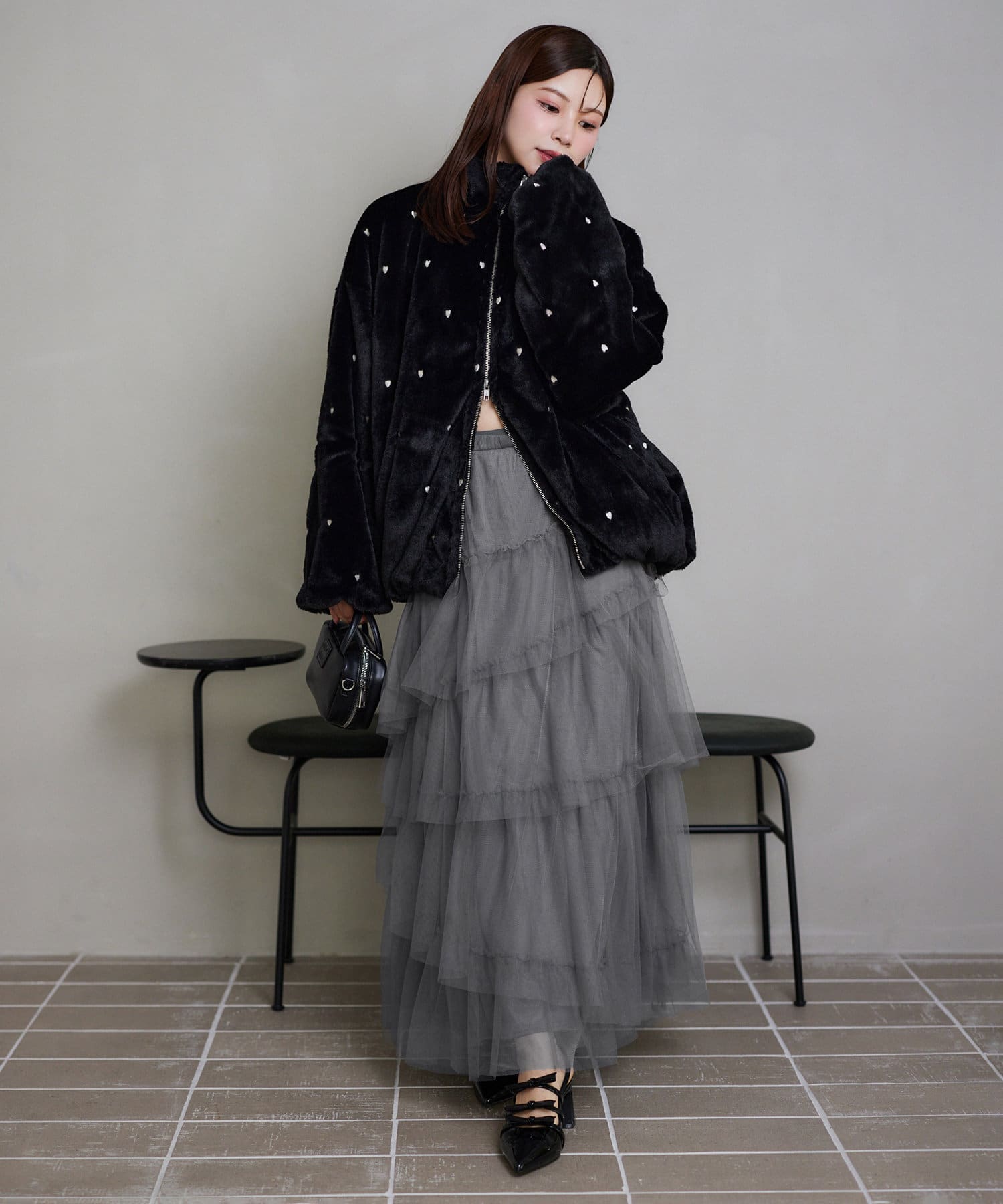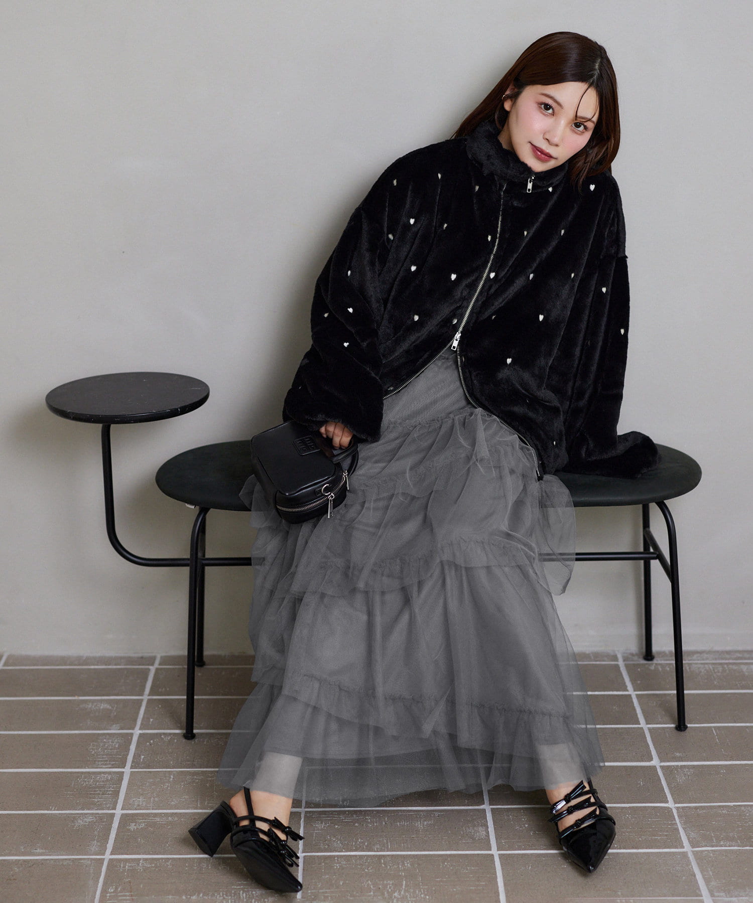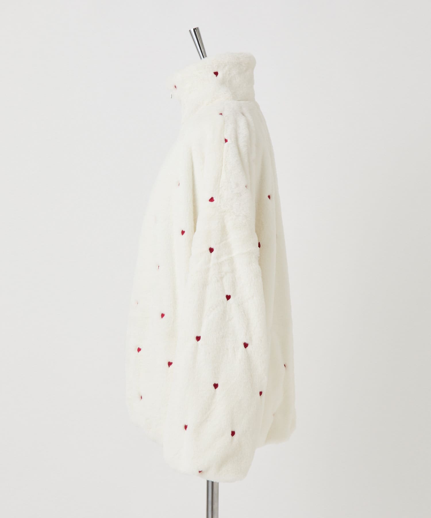 小ぶりなハートが可愛いフェイクファーブルゾン