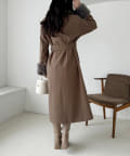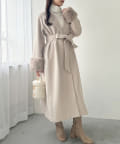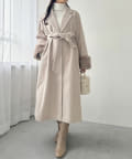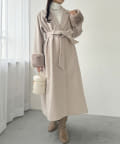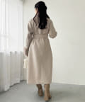 前で結んでウエストマークをしてガウンコートのようにも着ていただけます。