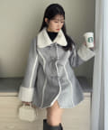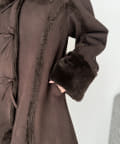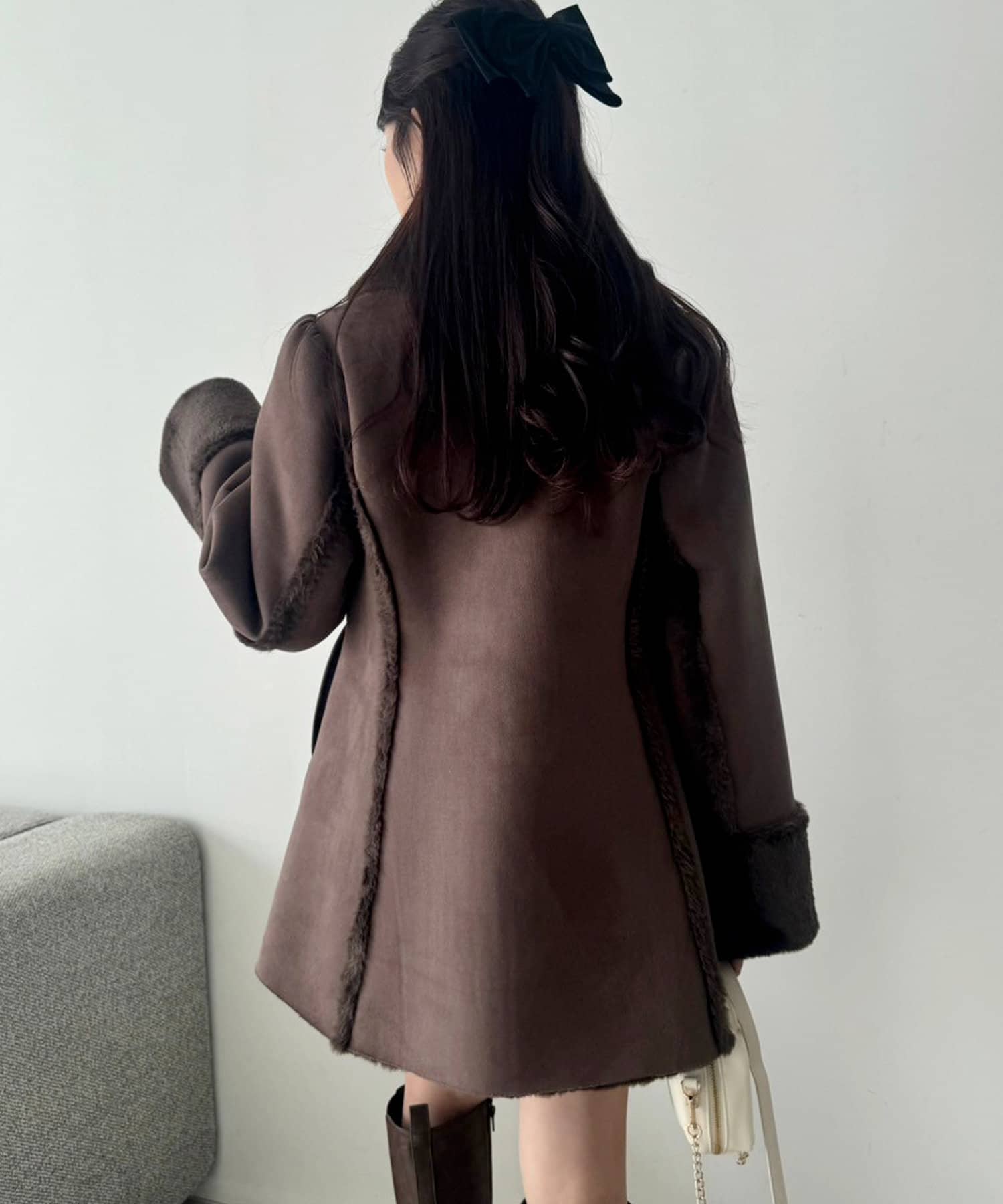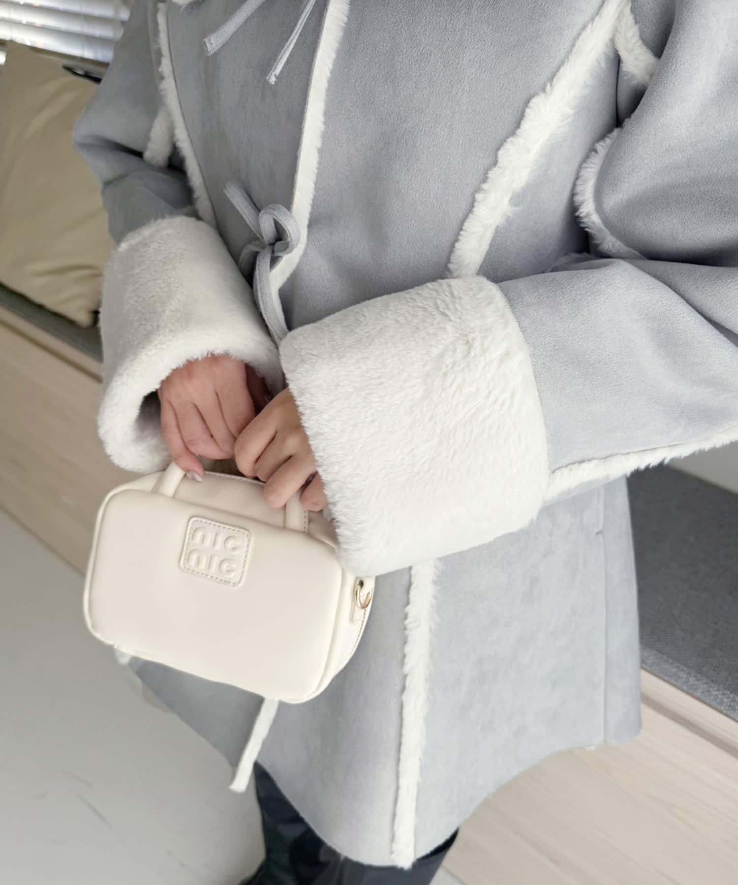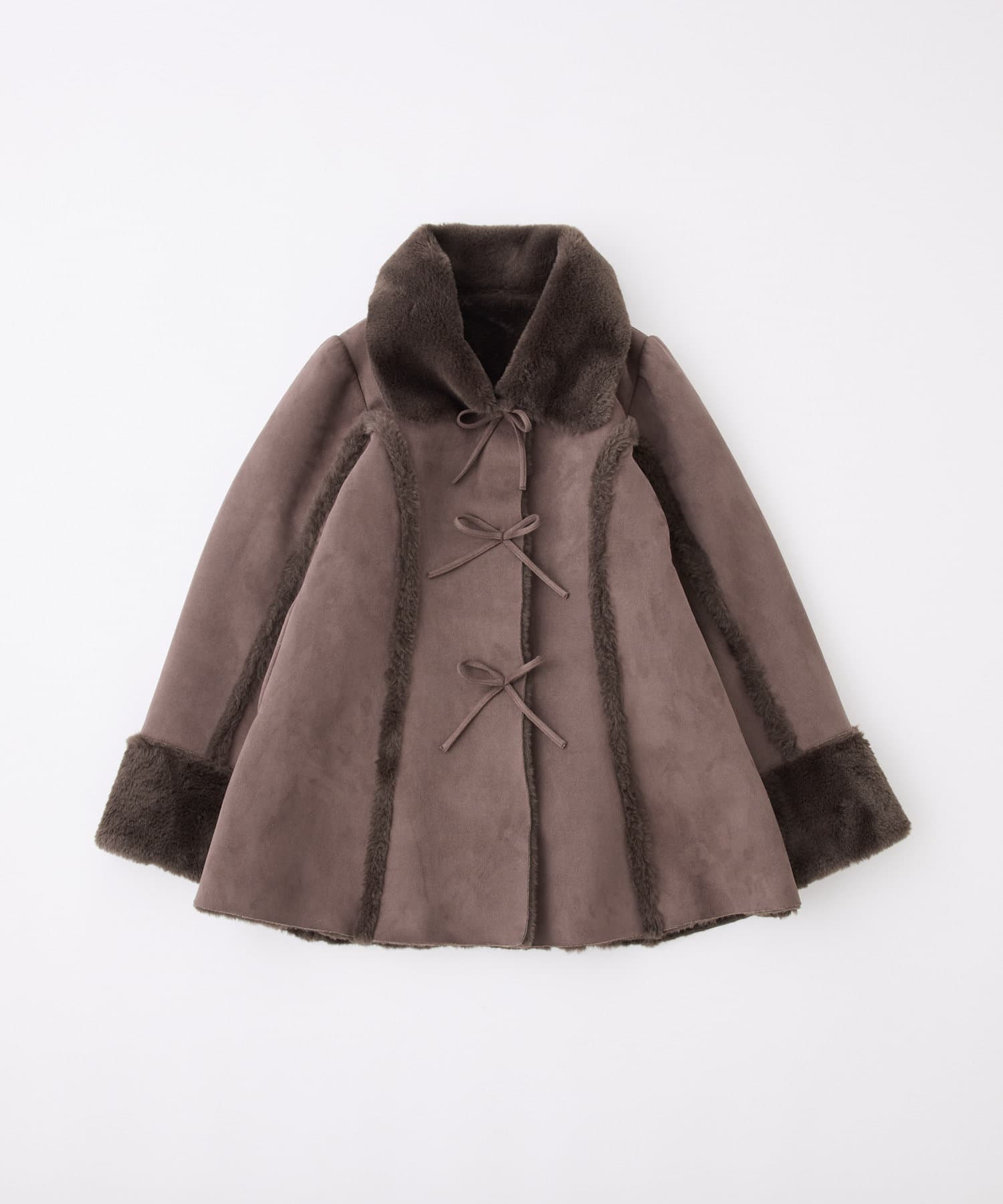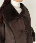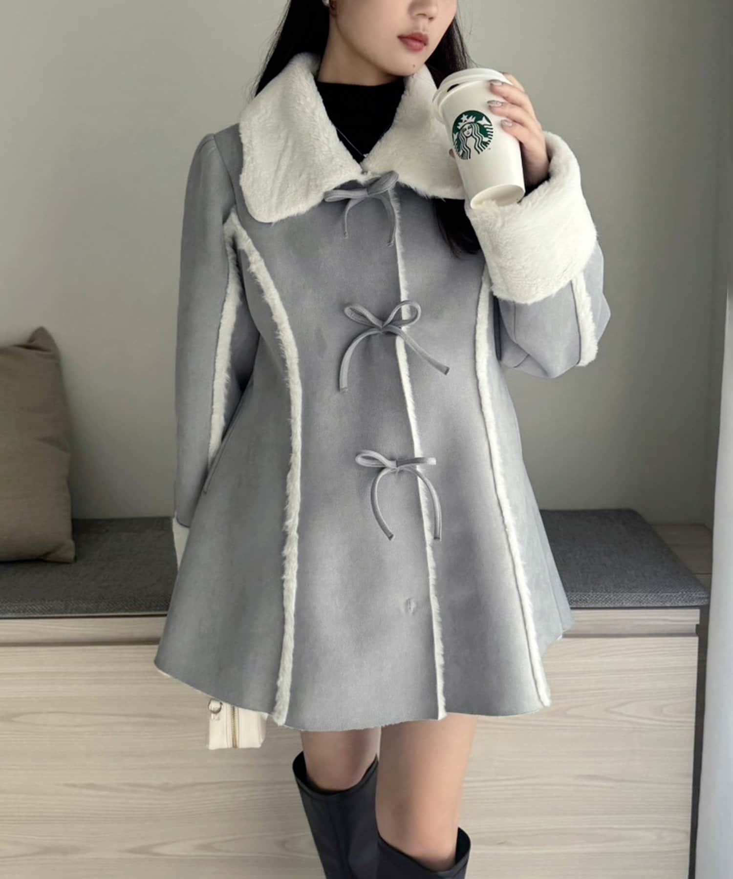 柔らかなムートン素材とリボンディテールが女性らしさを引き立て、