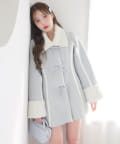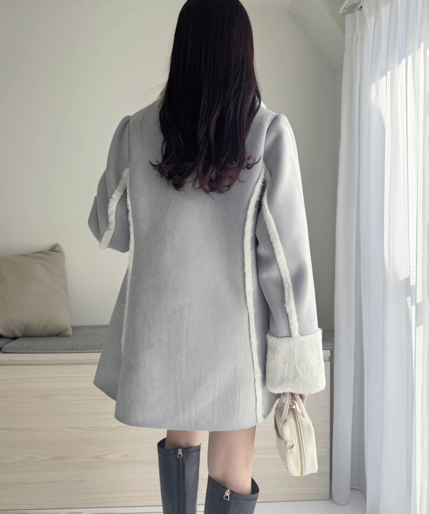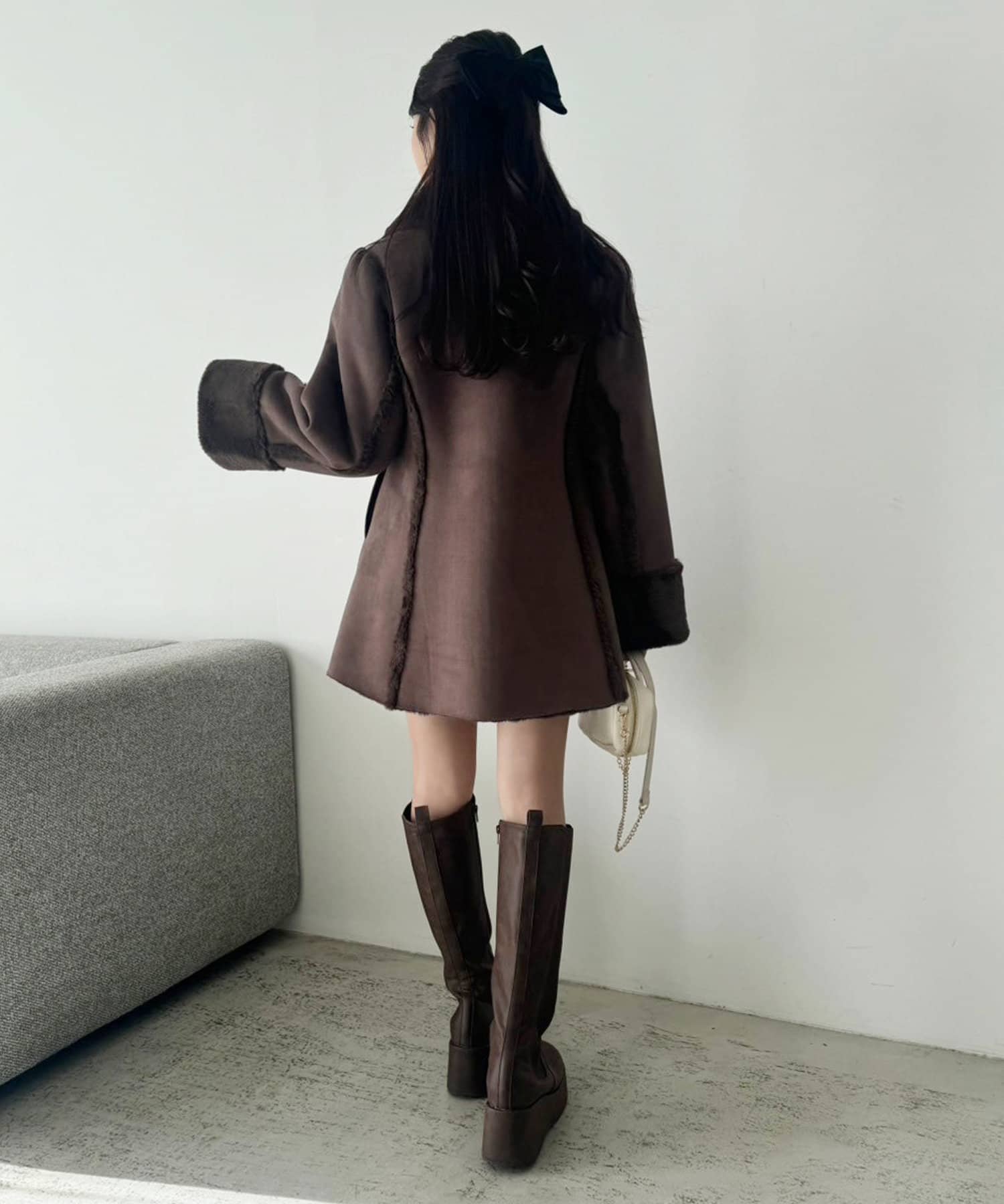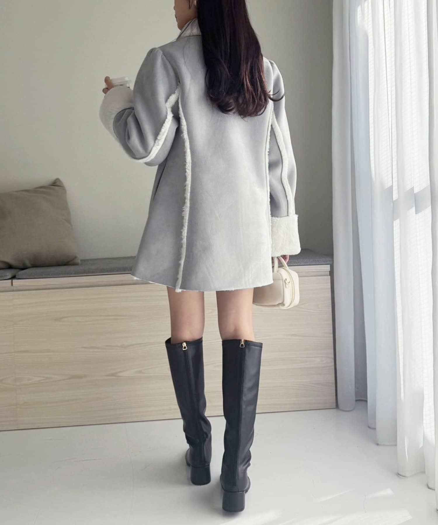 ミニボトム×ロングブーツで前を閉じてワンピースっぽく着こなすのがオススメ!
