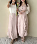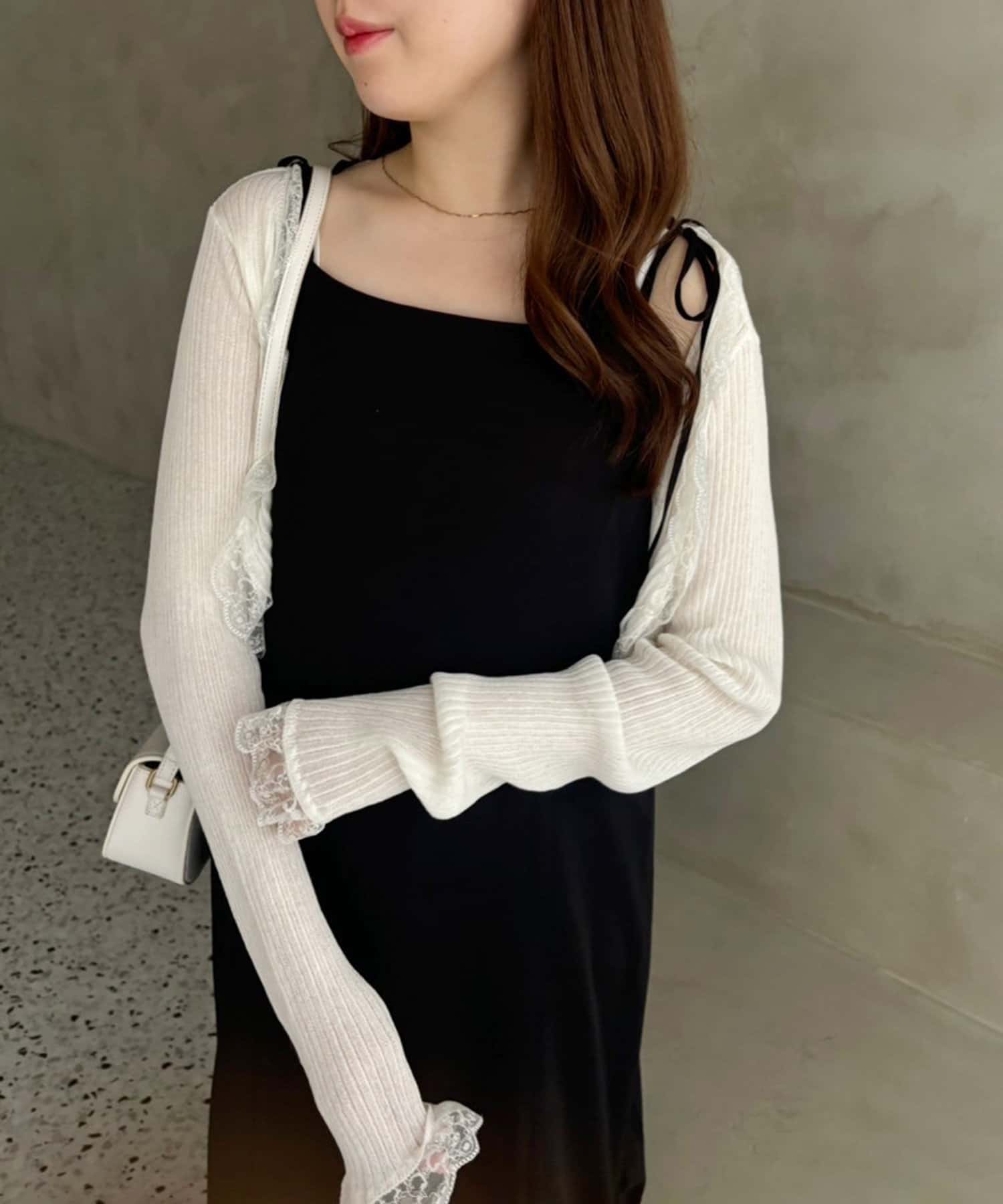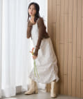 ・肌寒い日なら、短めニットなどを上から重ねたりしたレイヤードスタイルも印象が変わりオススメです。