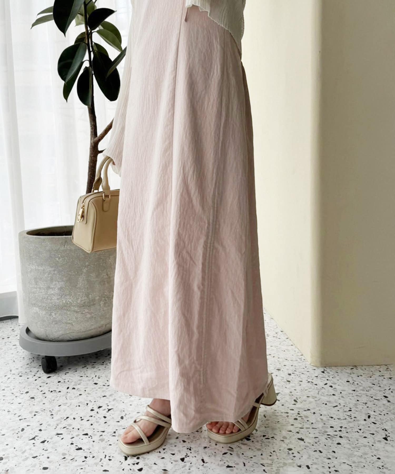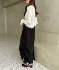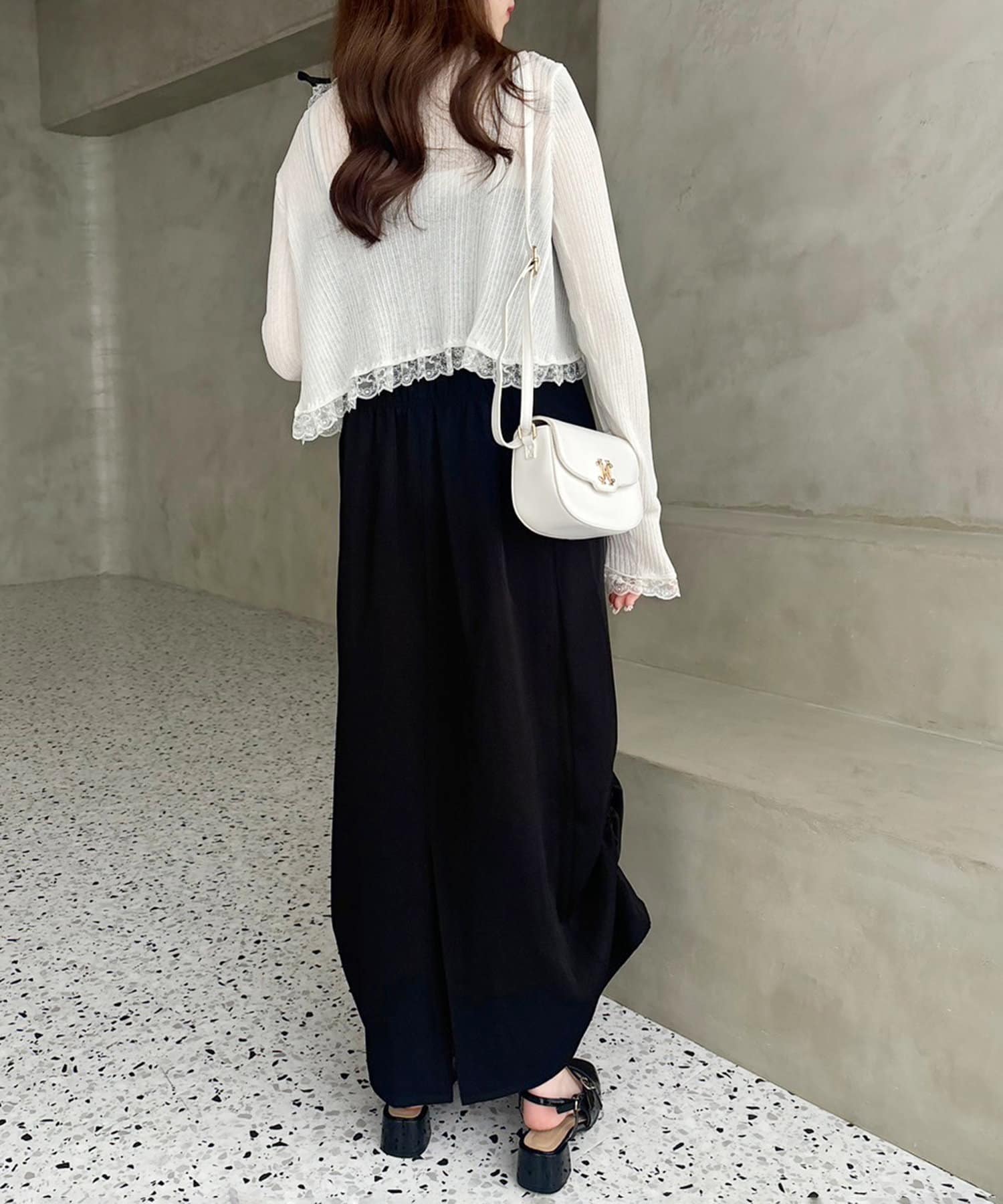 ・上品なコーデがお好きなら、シアートップスやブラウス合わせもオススメです。