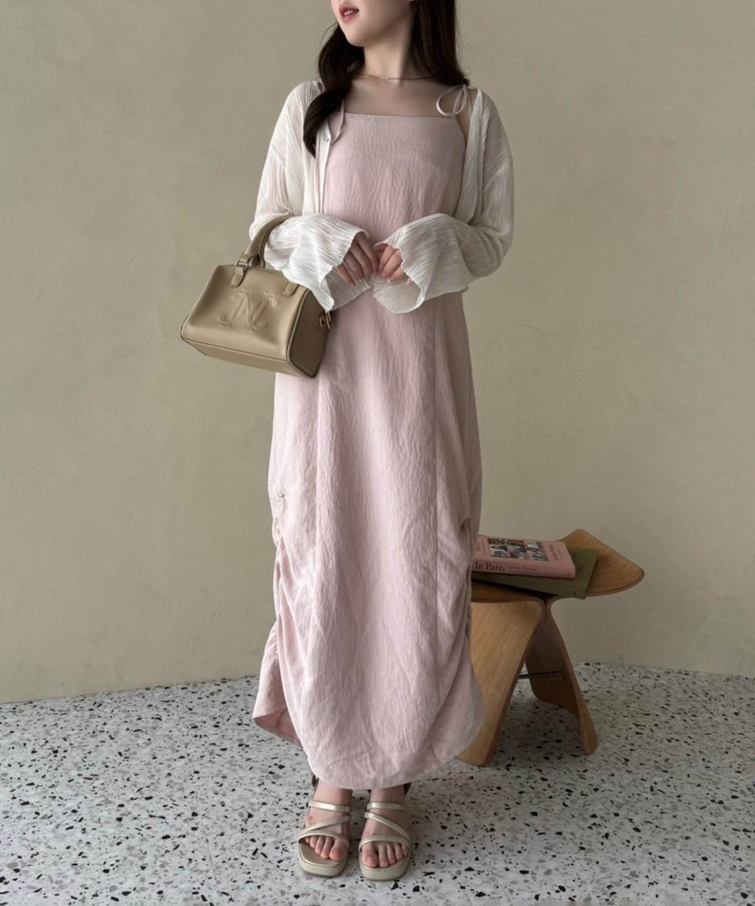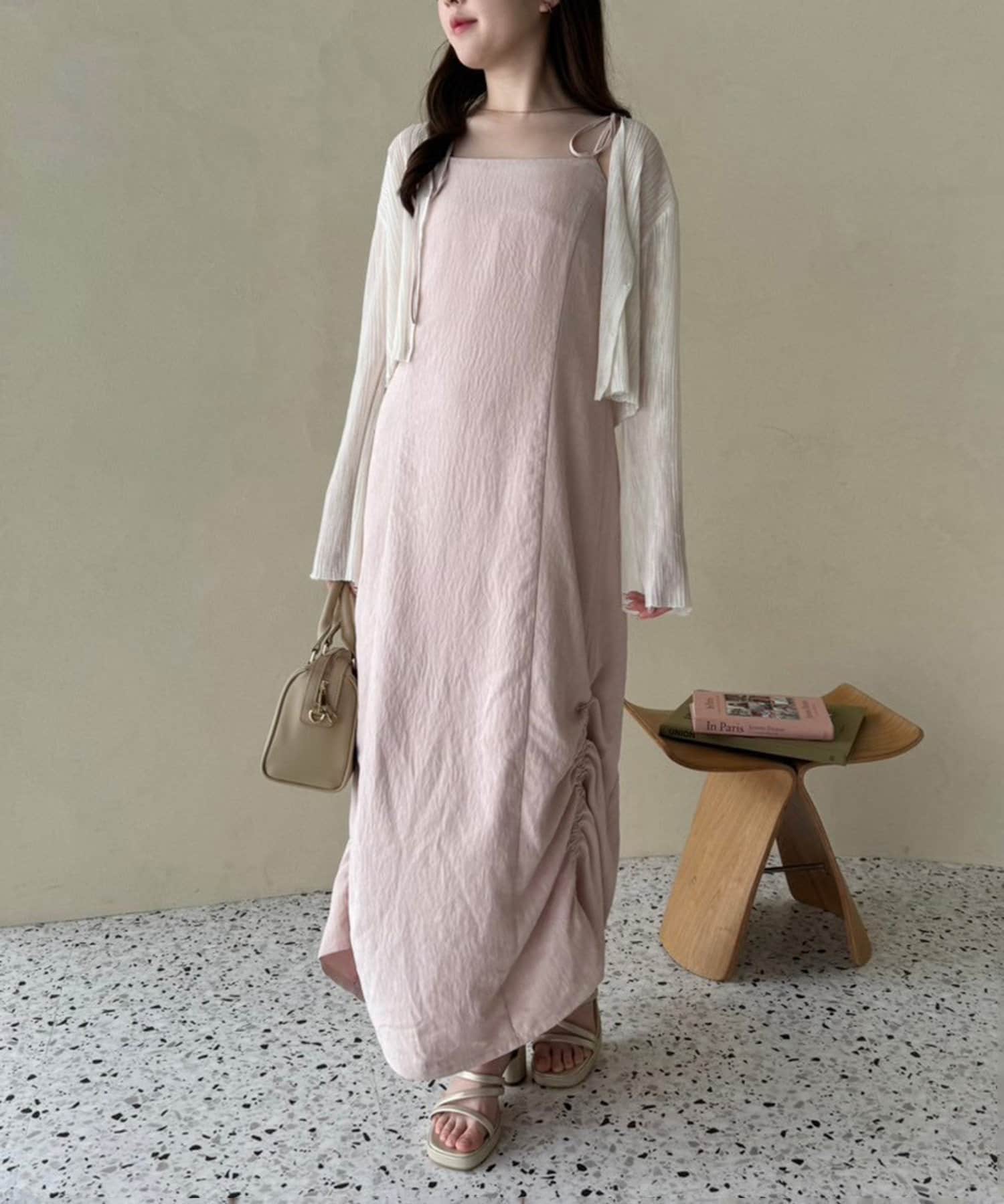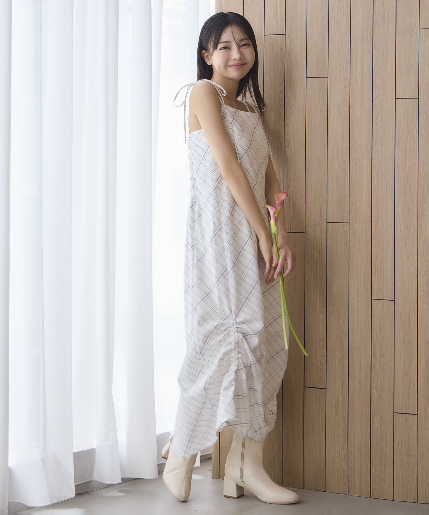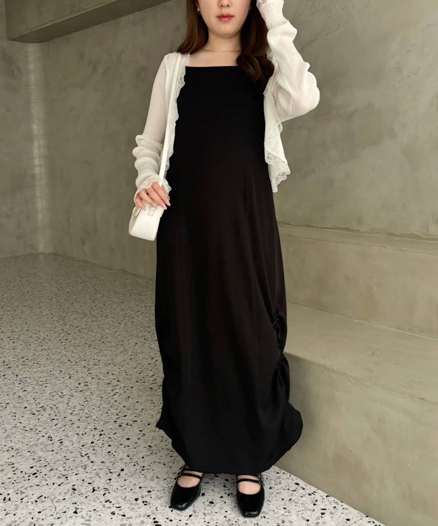 ・ドロストを全部伸ばすとシンプルなワンピースになるので、