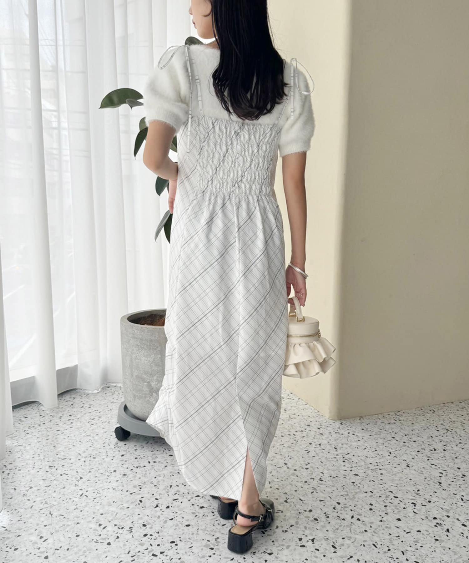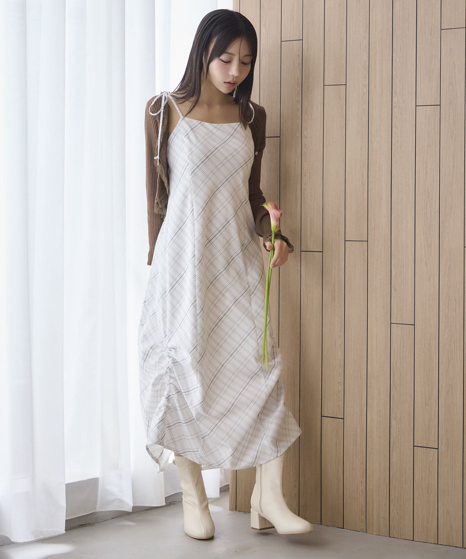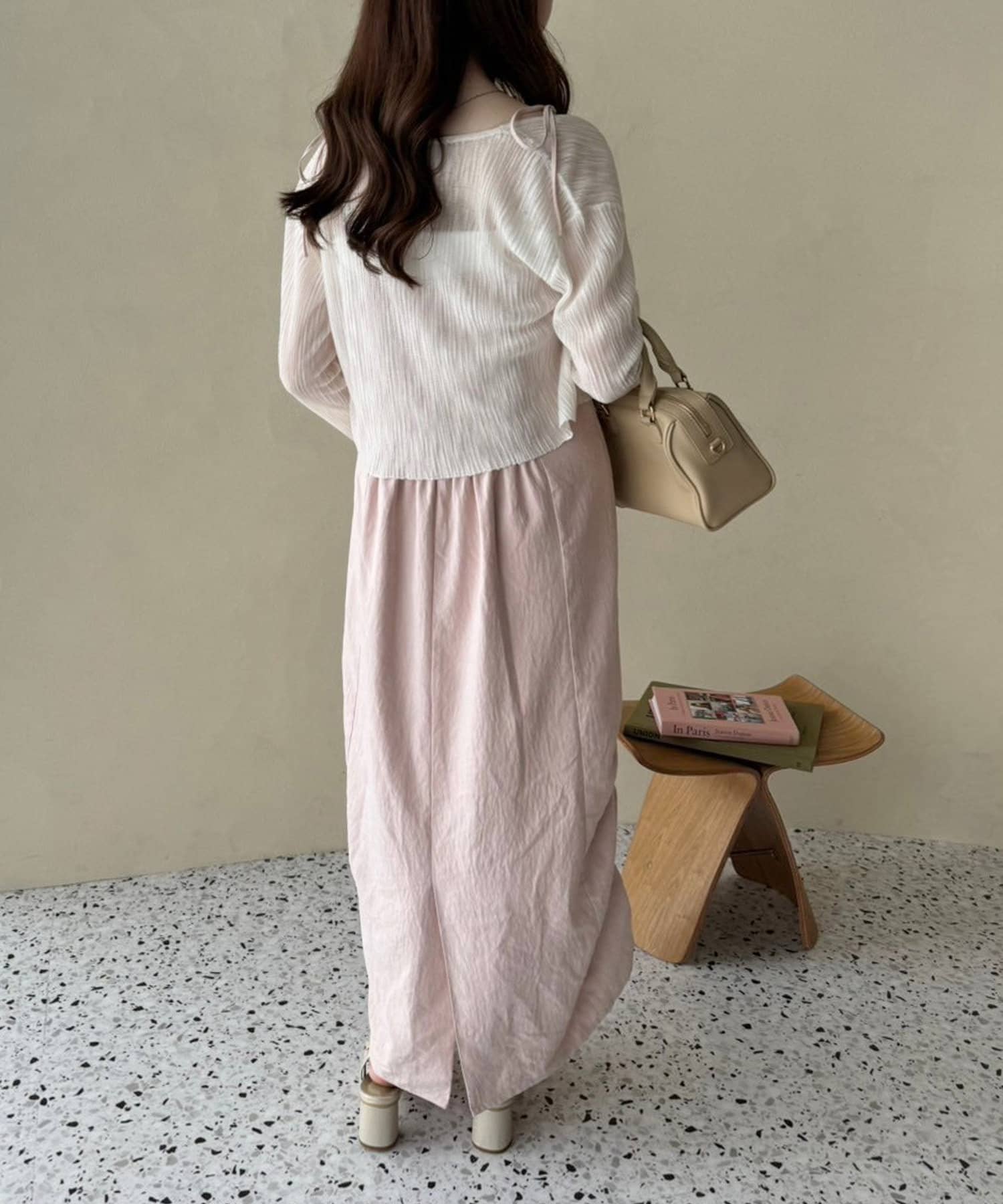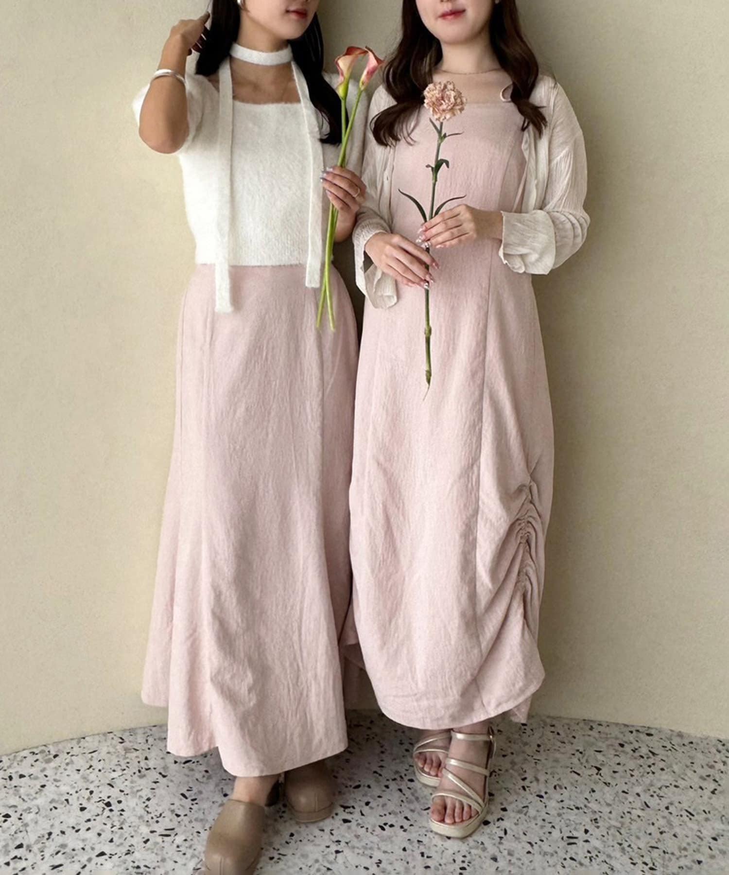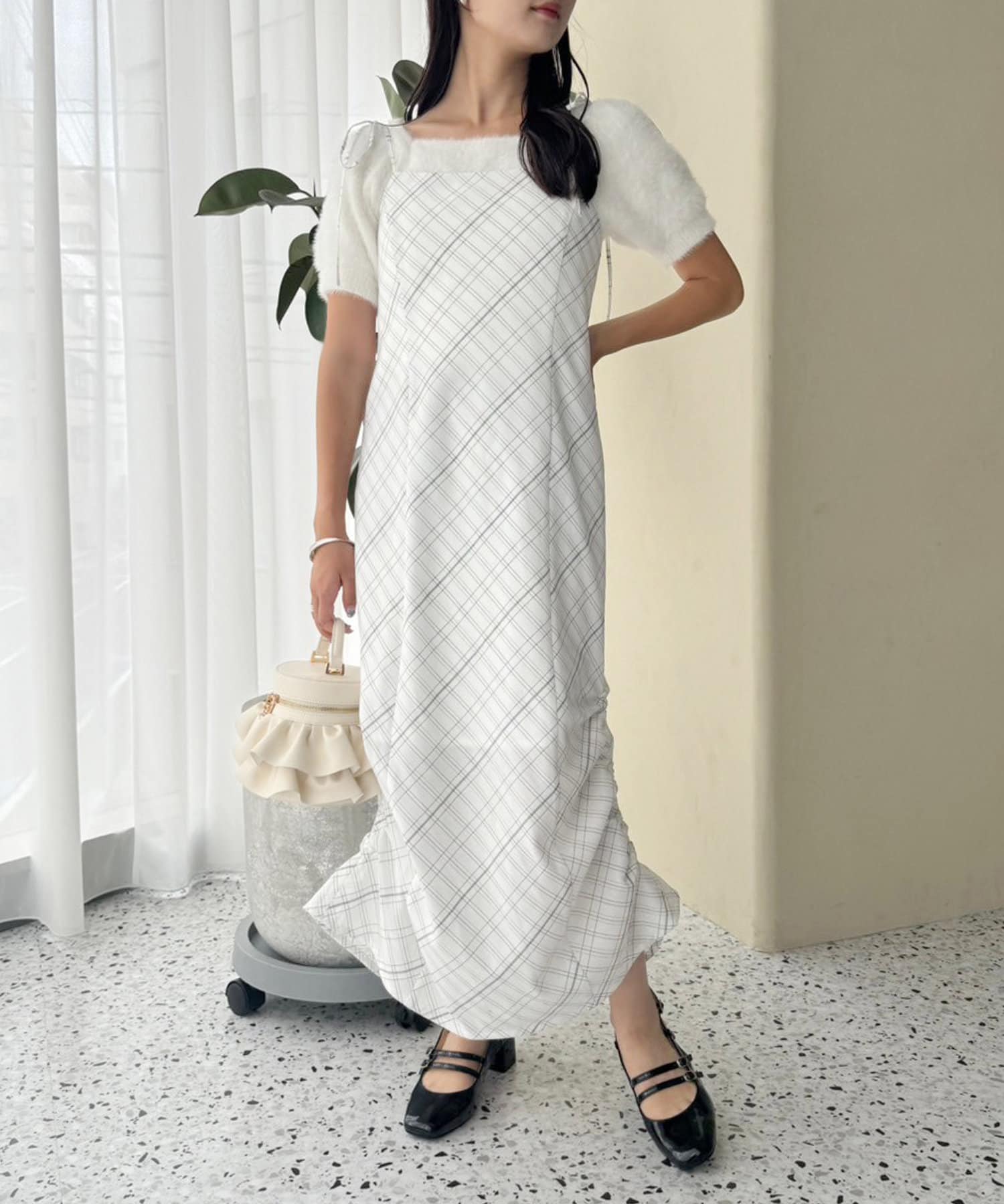 ・ドロストを全部伸ばすとシンプルなワンピースになるので、