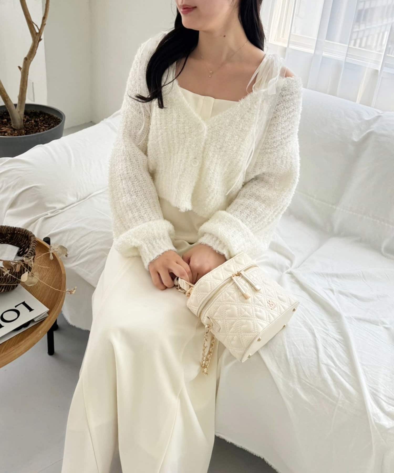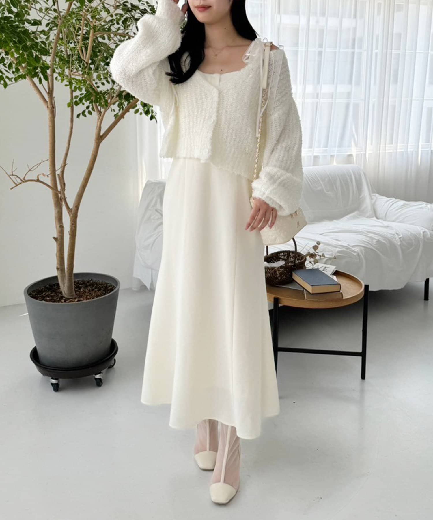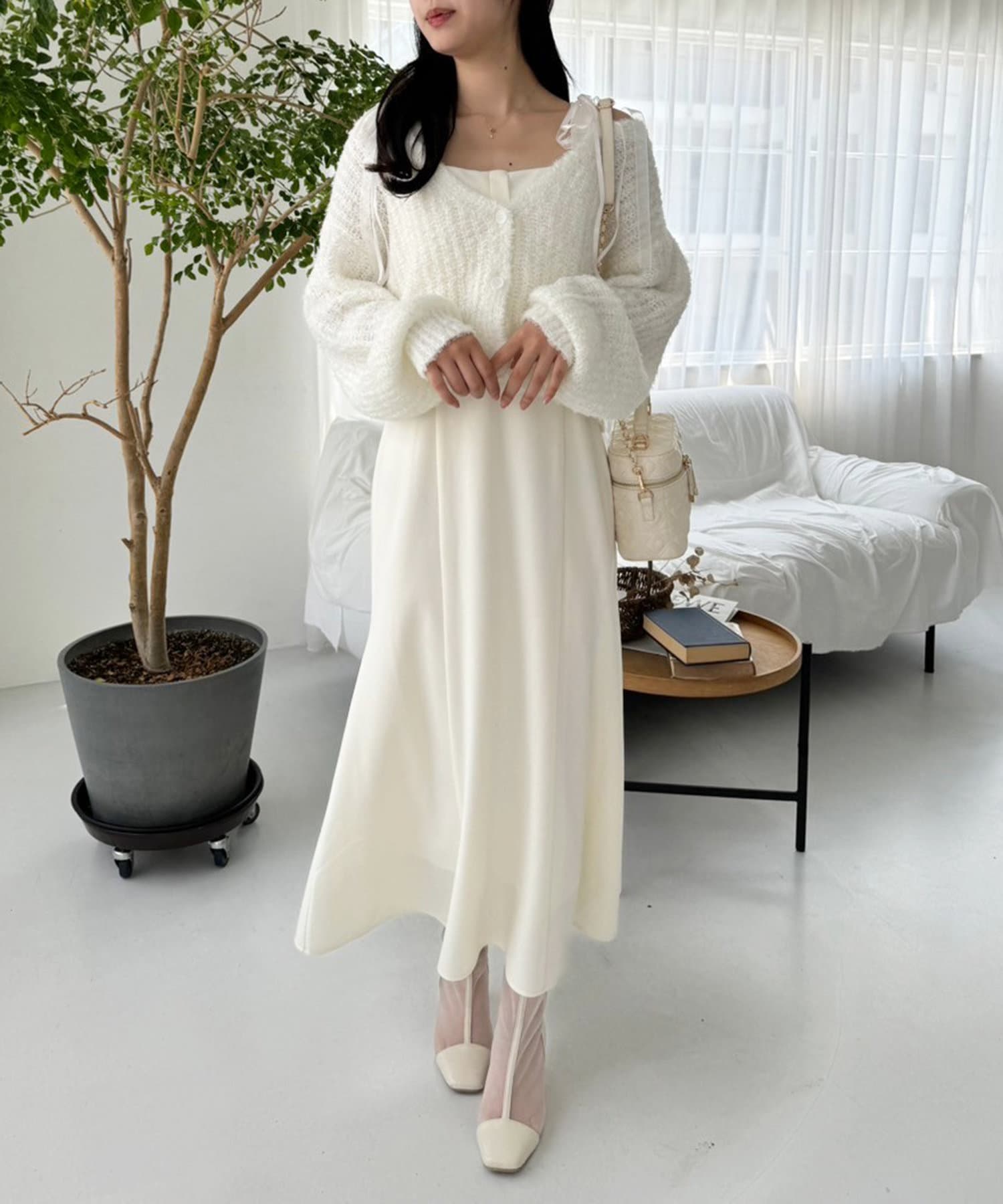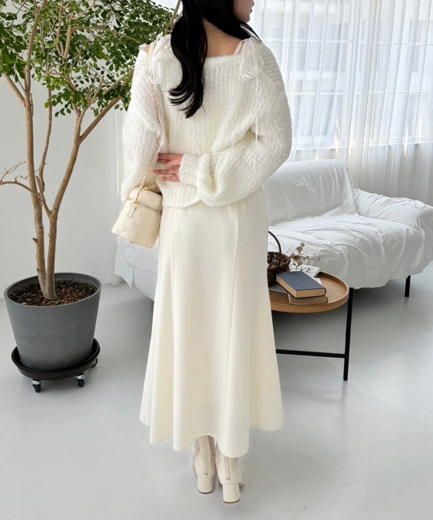 肌寒くなってきたら、ニットやカーディガンとも合わせて着ていただけます。