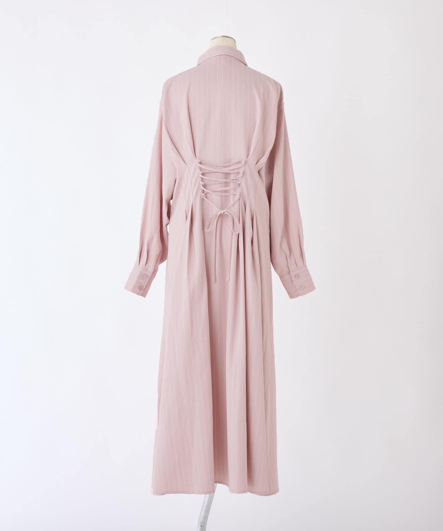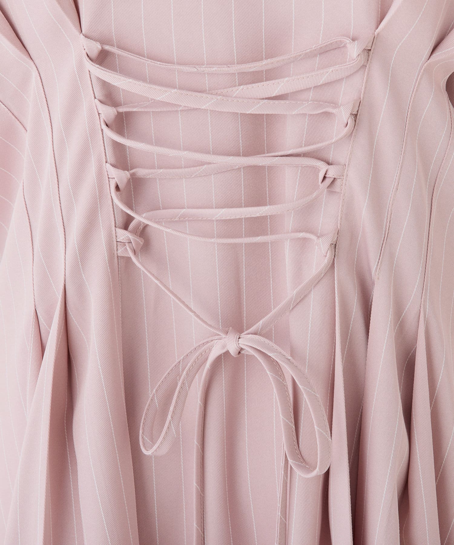 後ろのレースアップで身体のラインに合わせて調節ができるので、