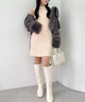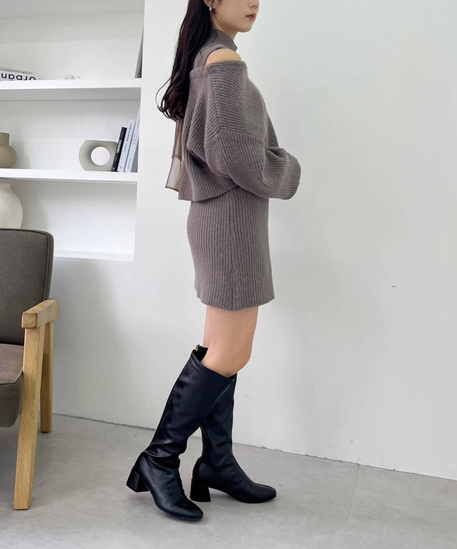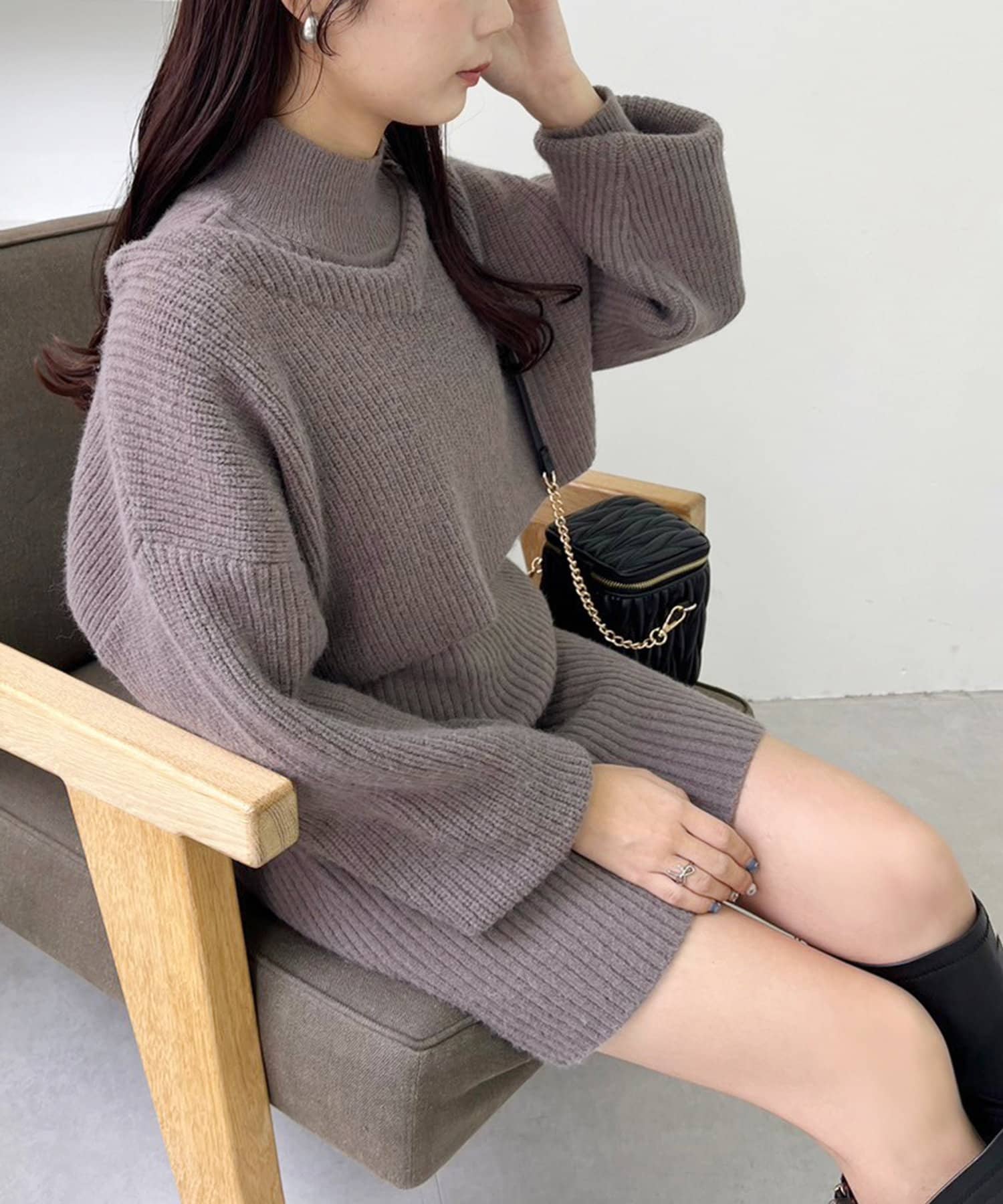 ニットの肩を落として着るとヘルシーな肌見せが叶います◎