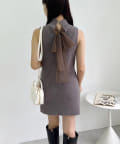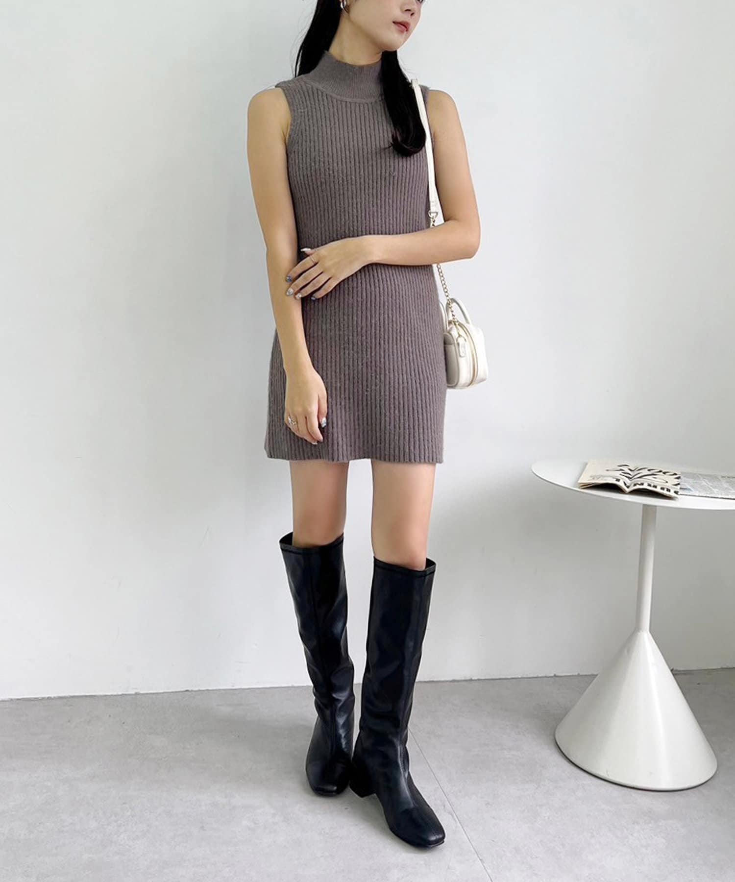 ワンピースはハイネックでクラシカルな雰囲気に。