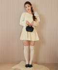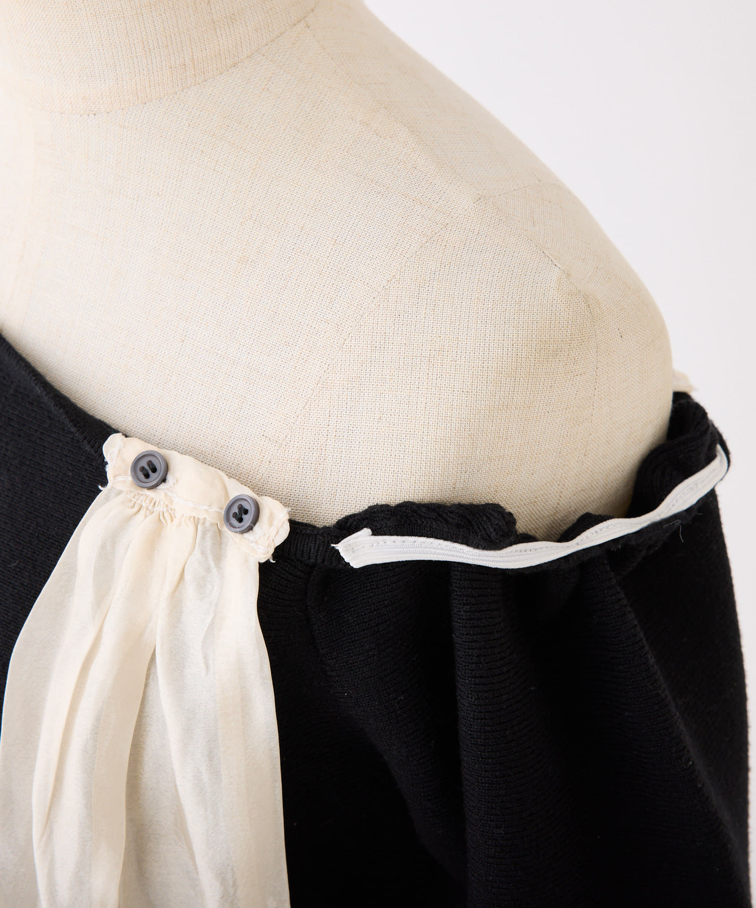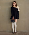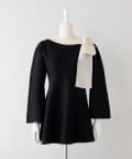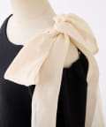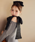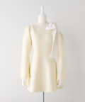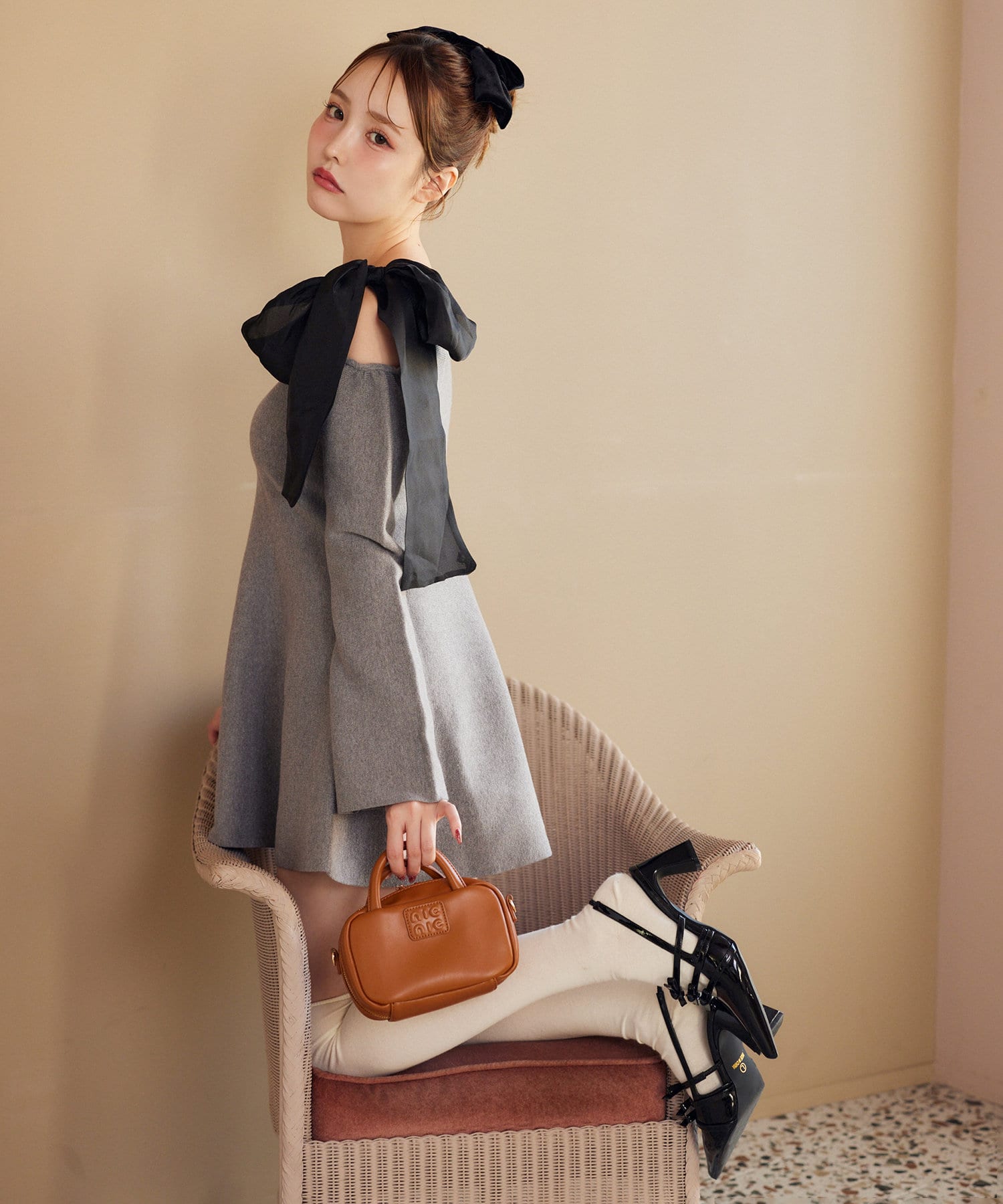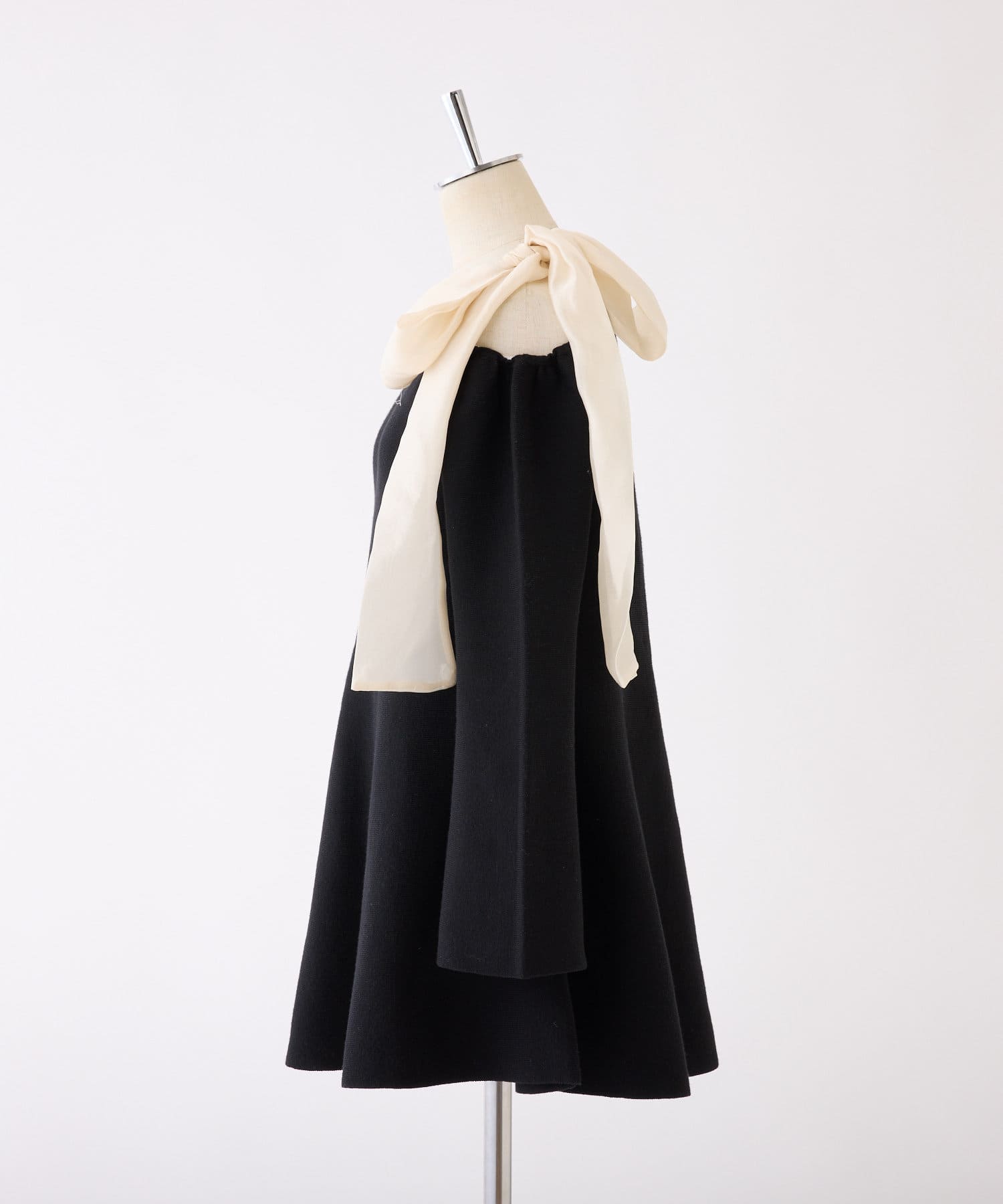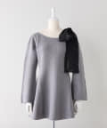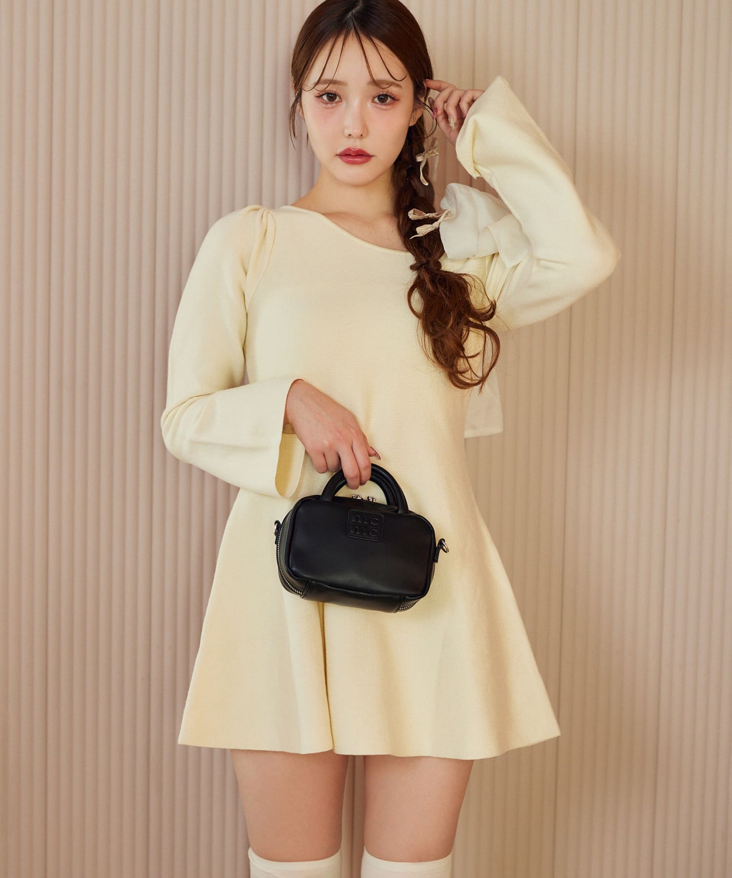肩の大きなリボンが可愛さを引き立てるニットワンピース