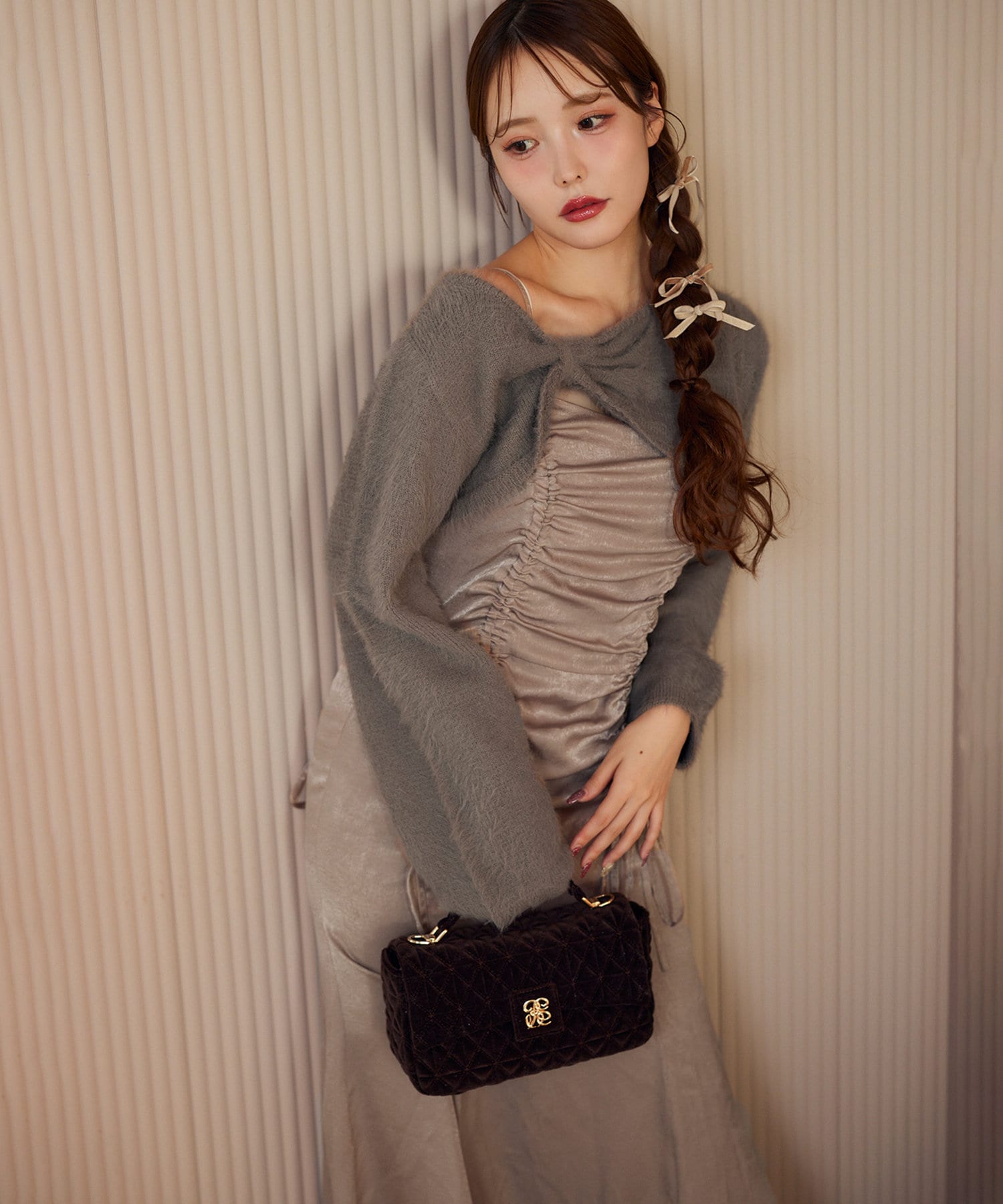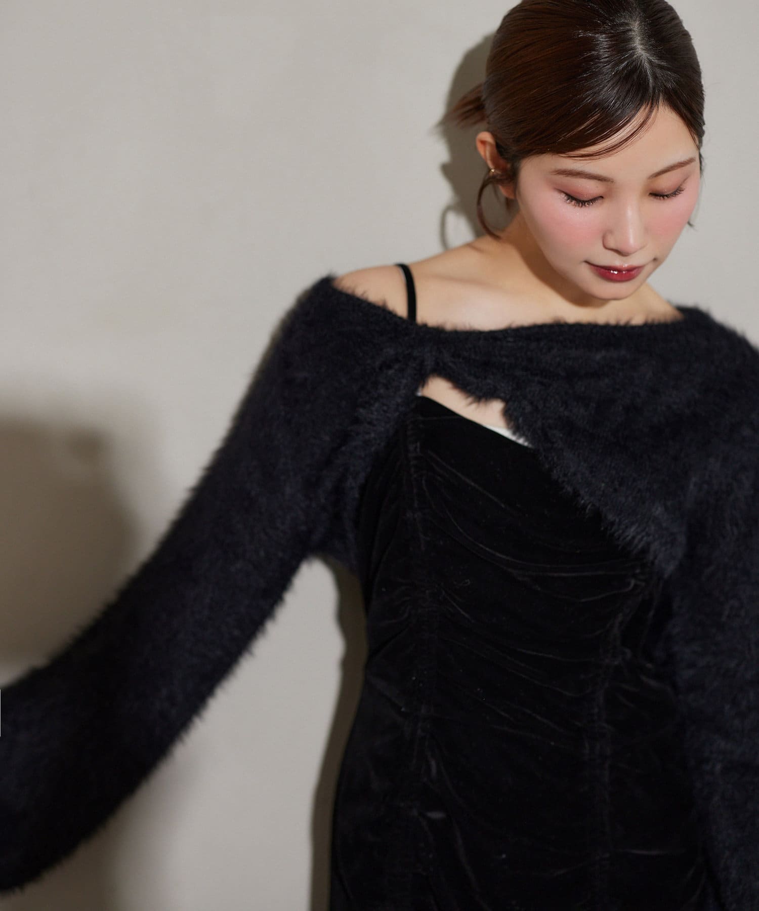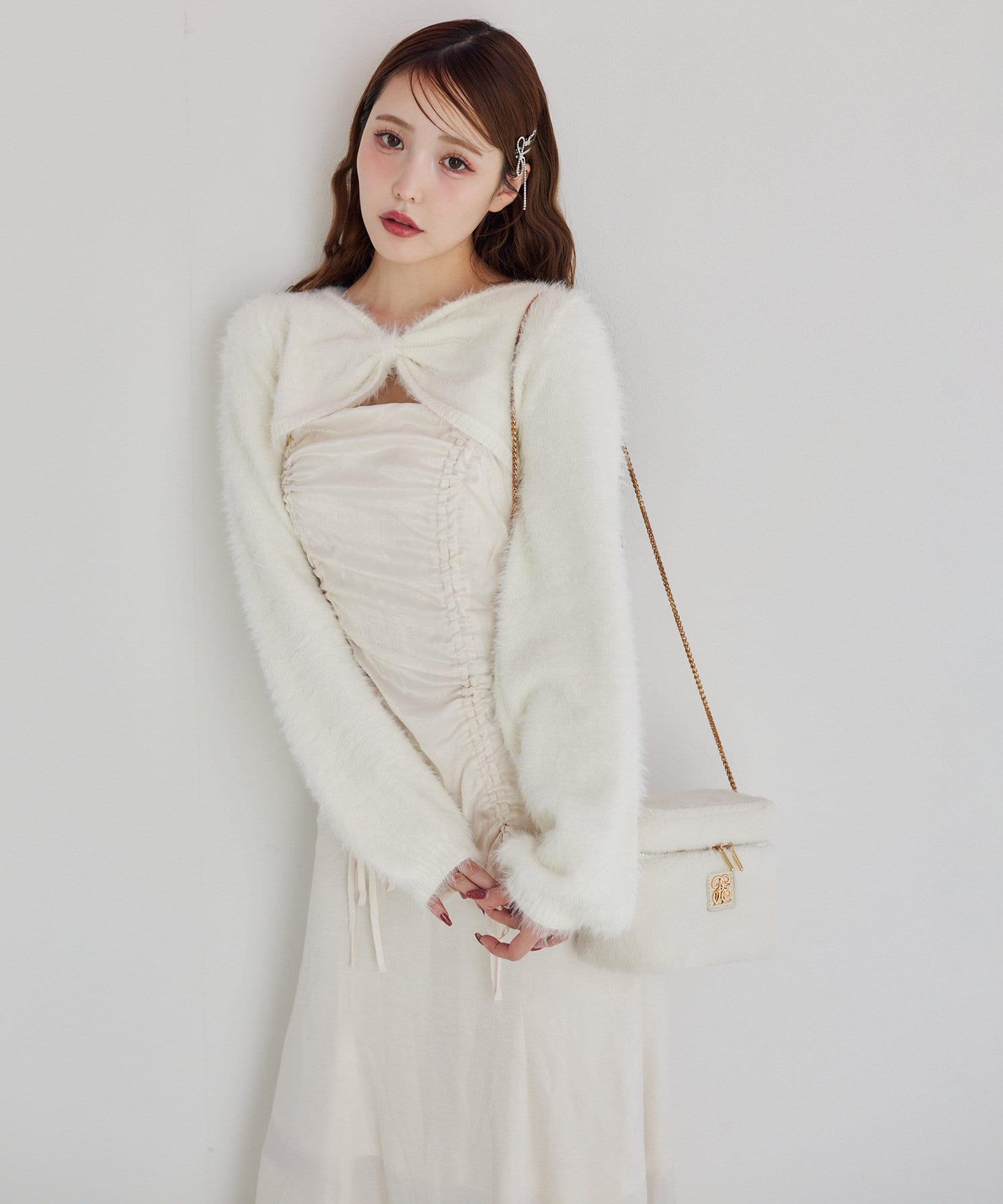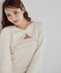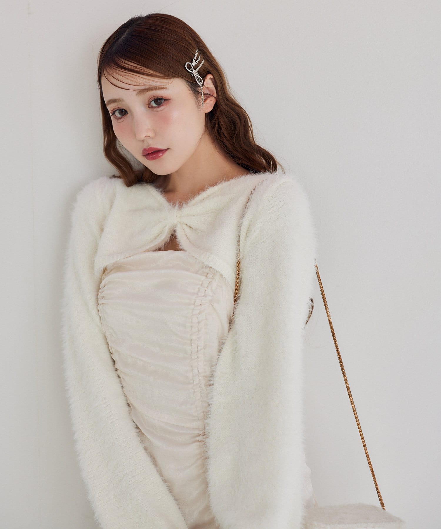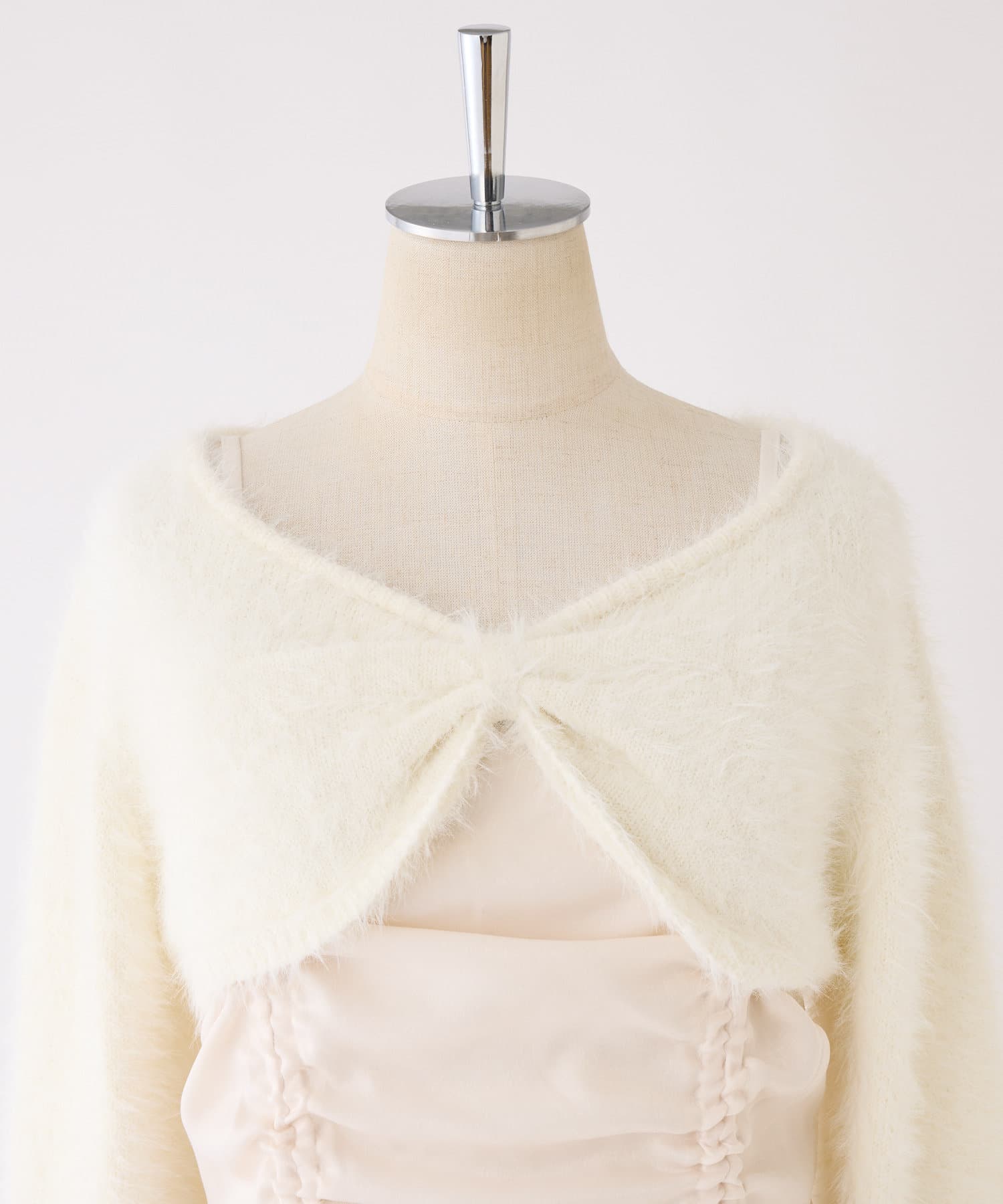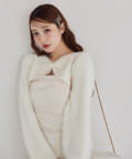 ニットボレロは肌ざわりの良いフェザーニットで前後どちらが前でもお使い頂けます。
