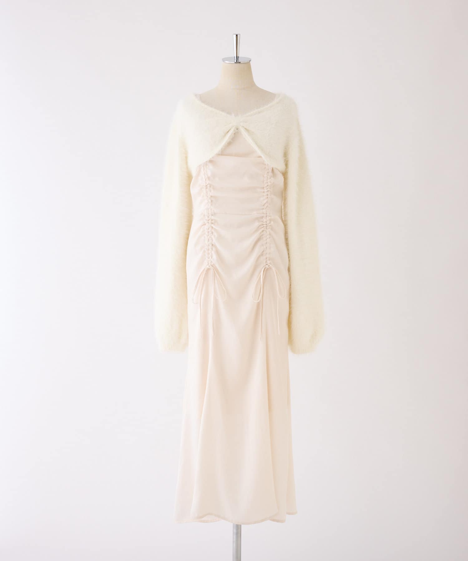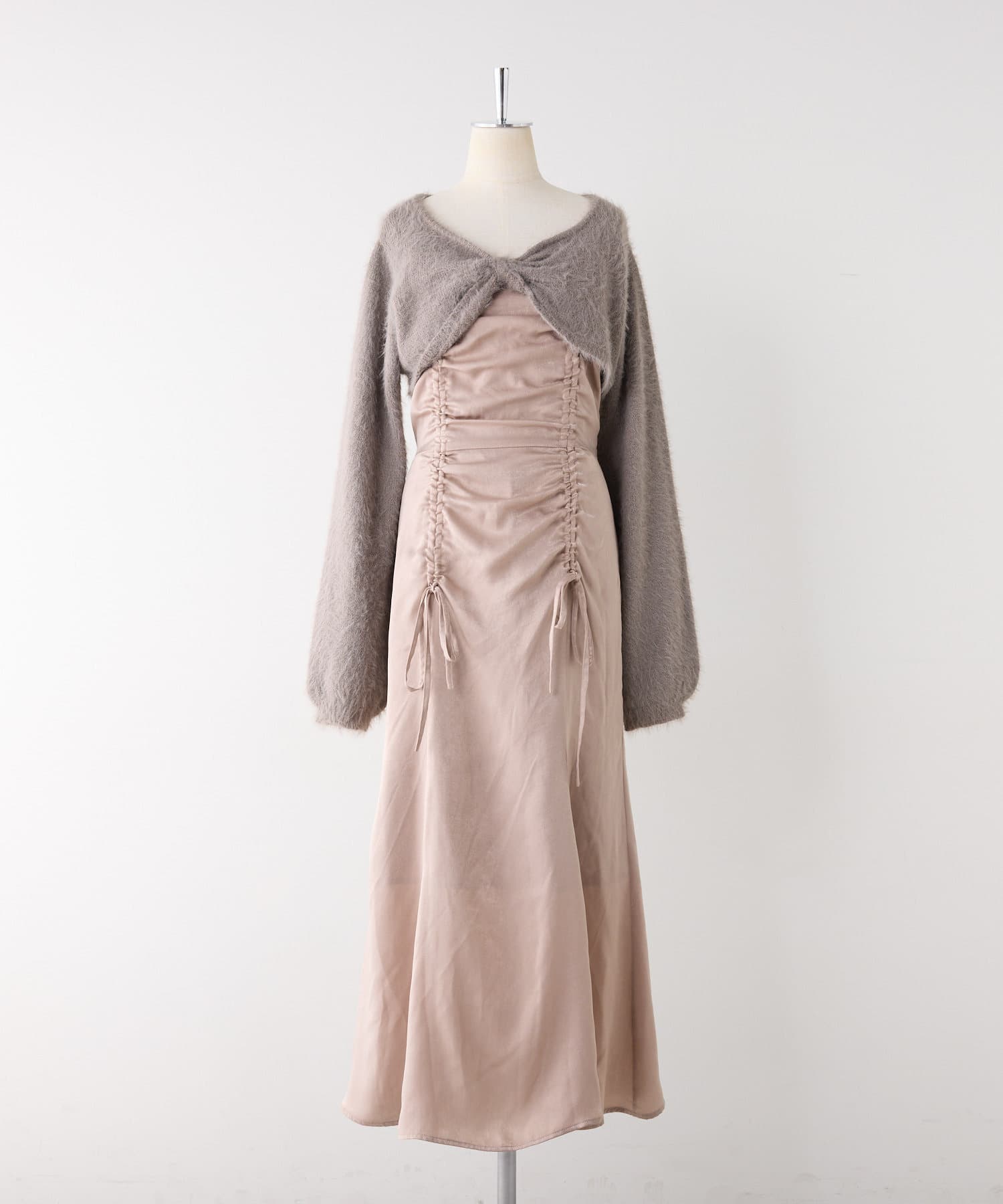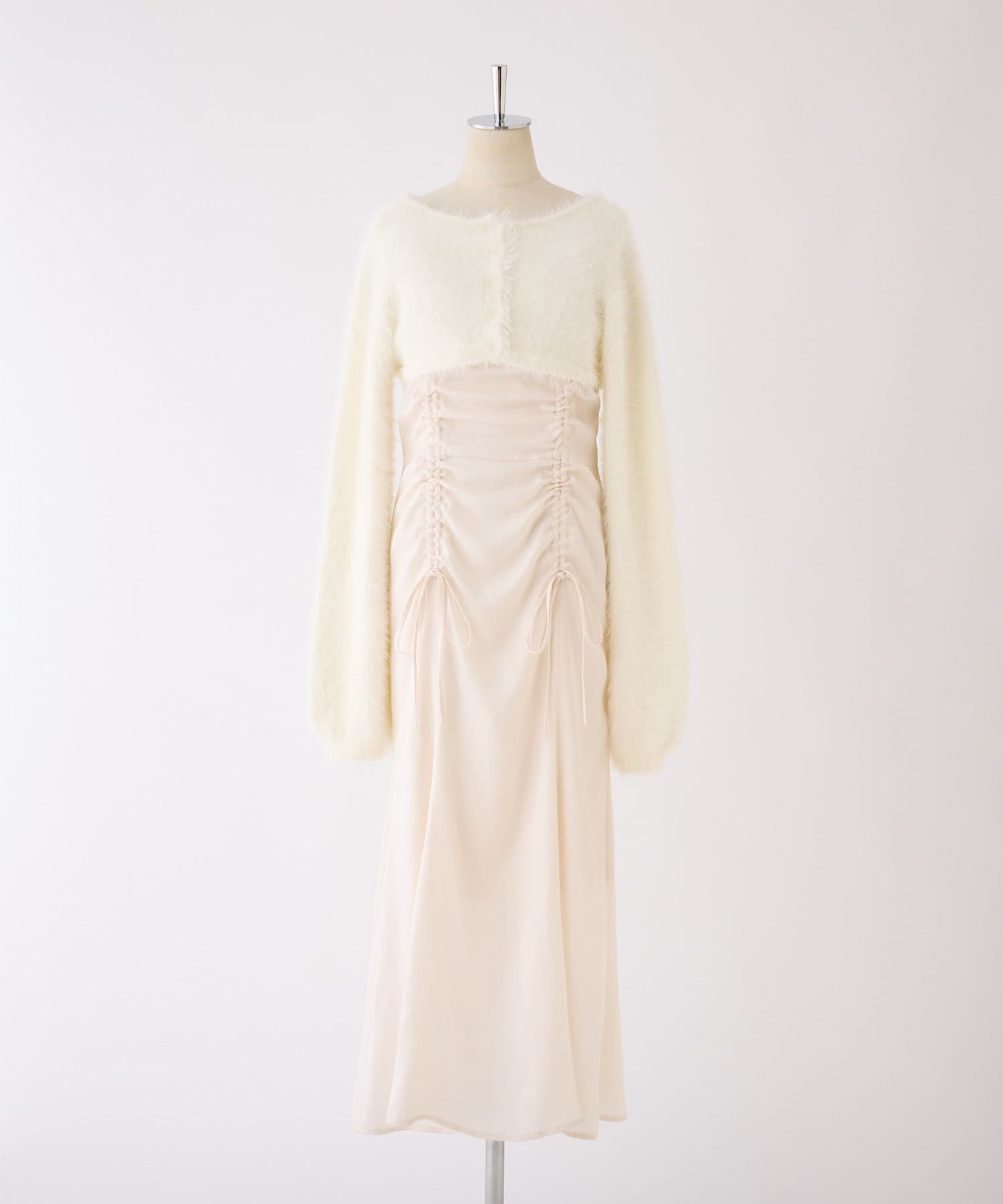 ドロストデザインのワンピース×ニットボレロがセットになったアイテム