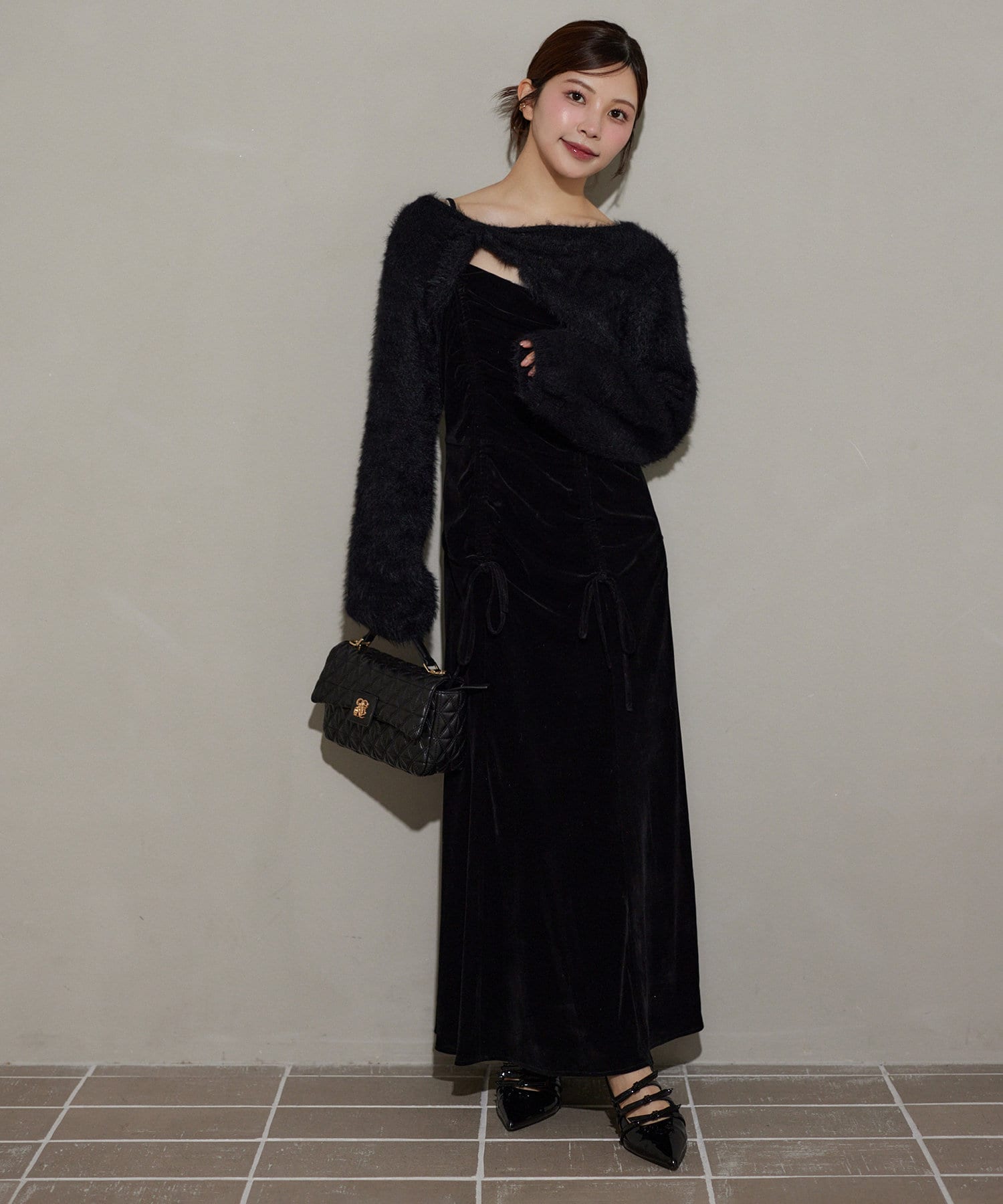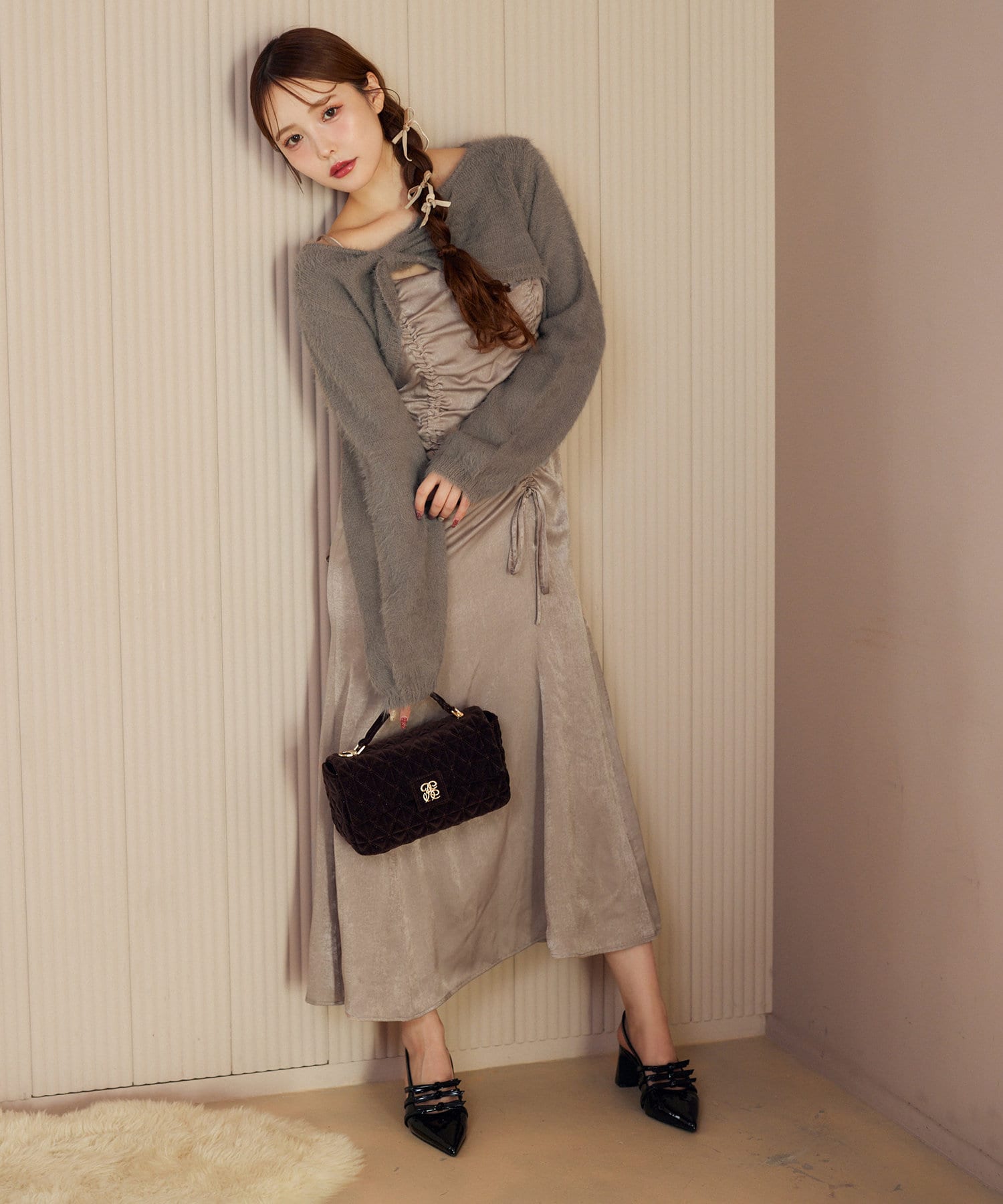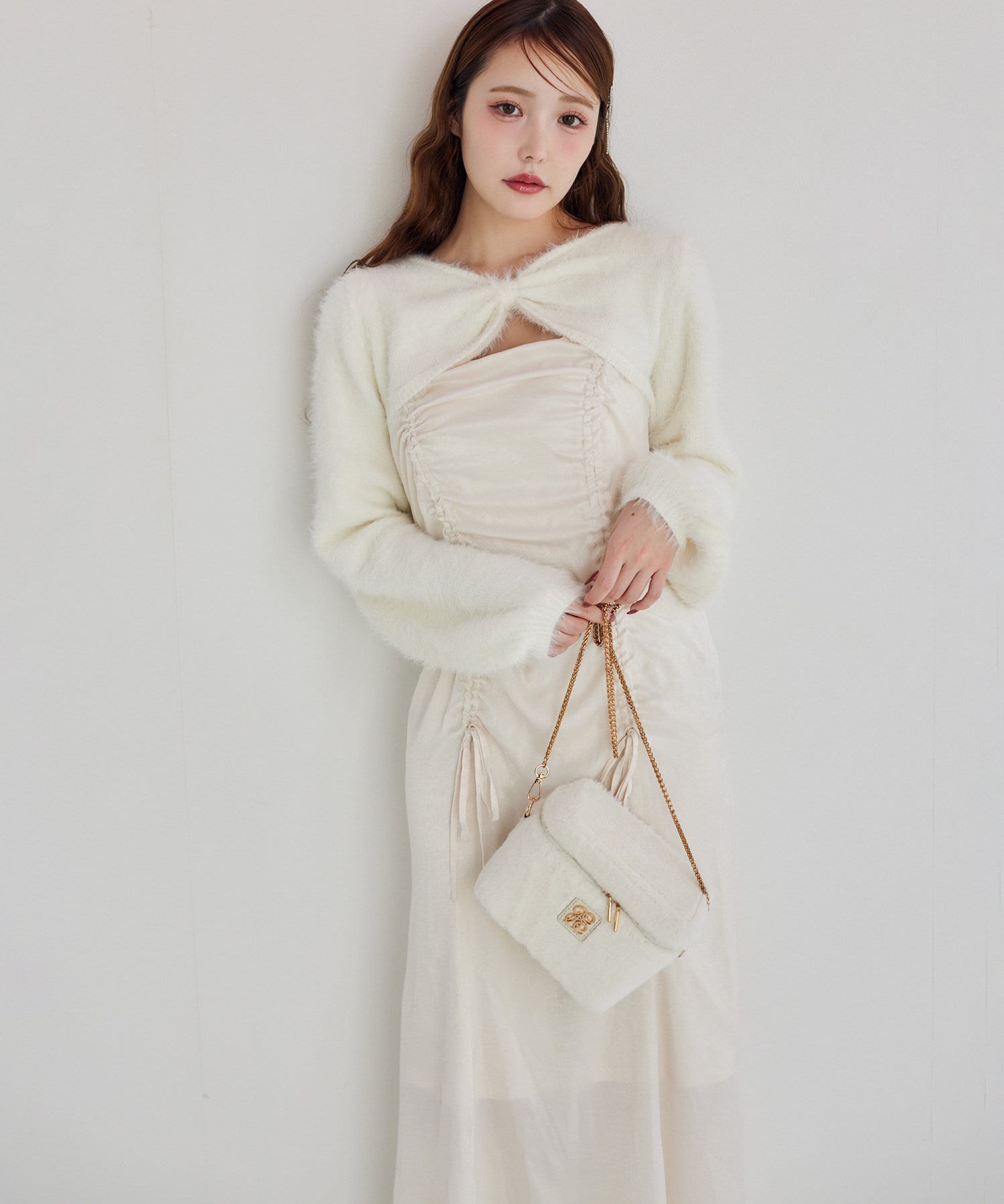 ドロストデザインのワンピース×ニットボレロがセットになったアイテム