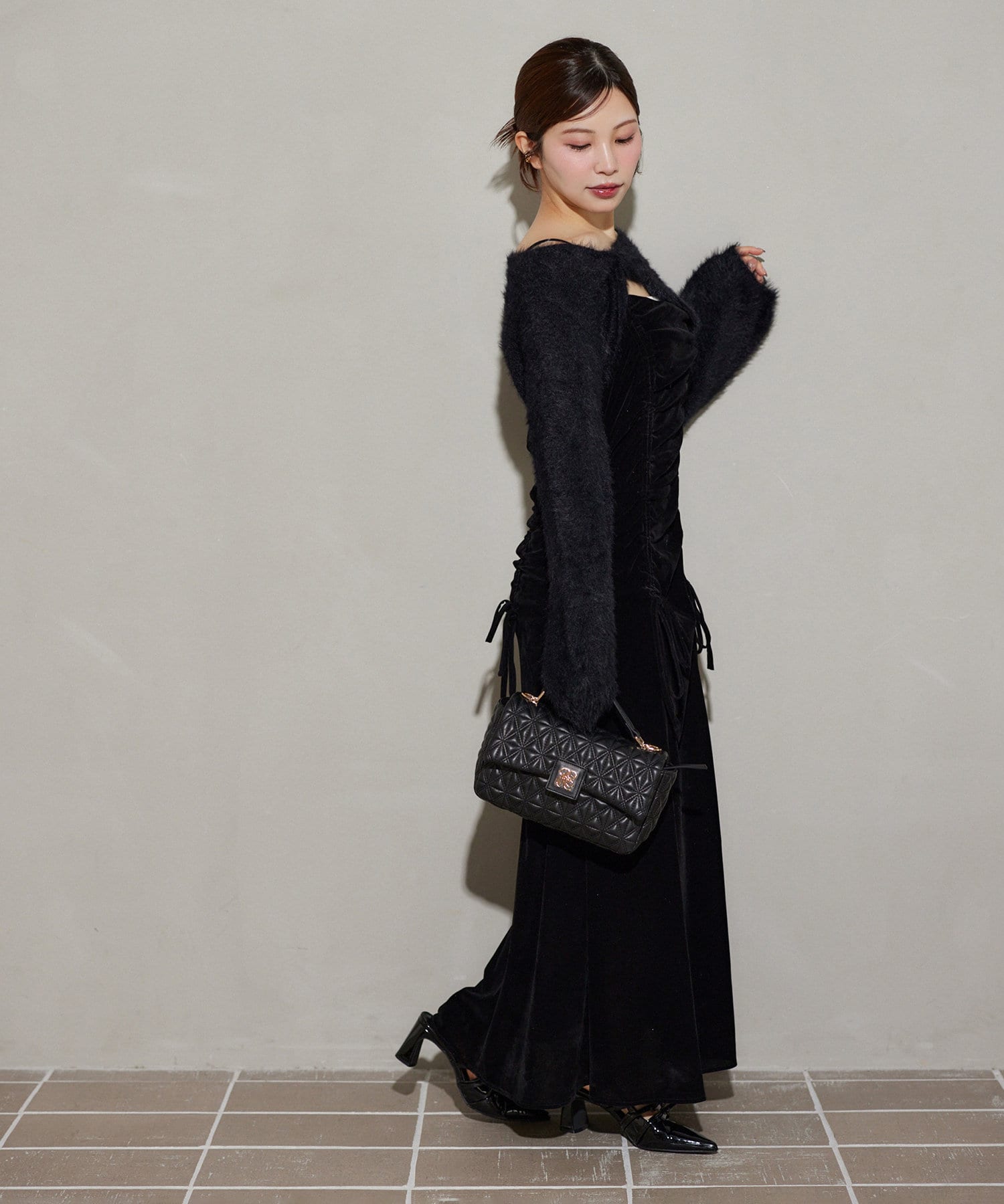 ワンピースは身体のラインをきれいに出し、女性らしいシルエットに。