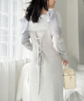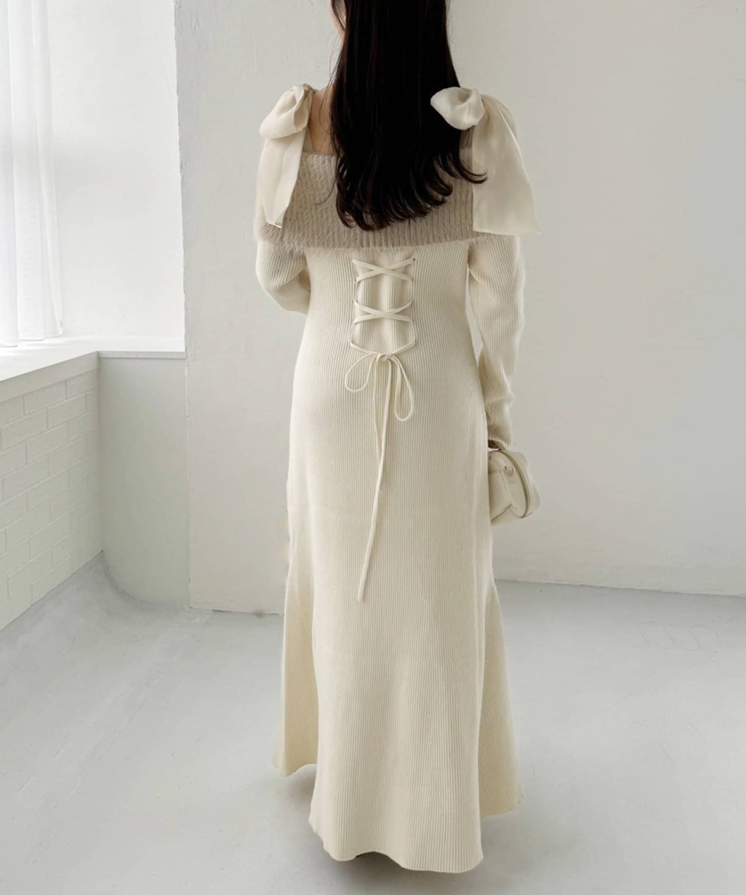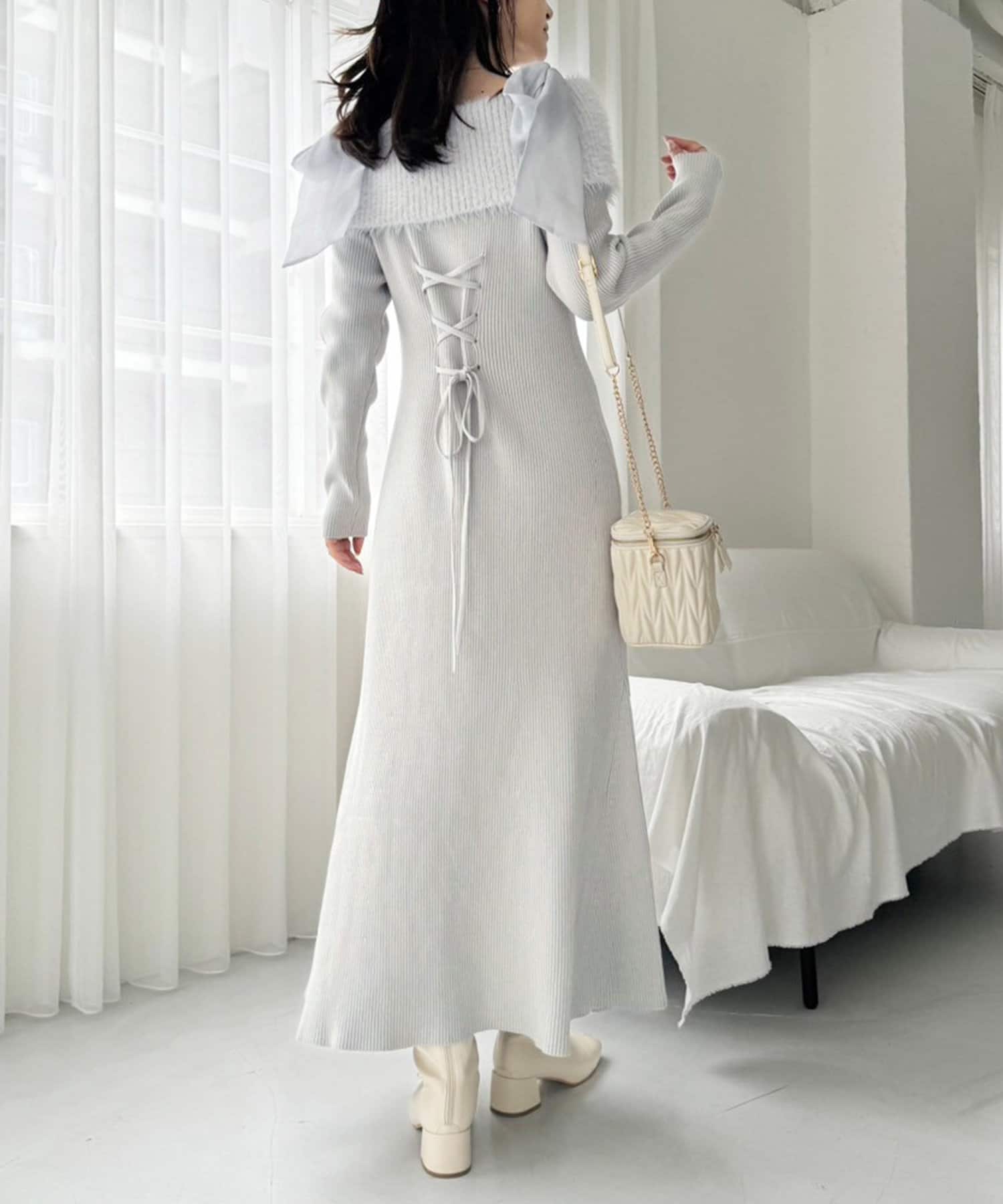 伸縮性のあるリブ編みで着心地もよく、後ろはレースアップになっているので