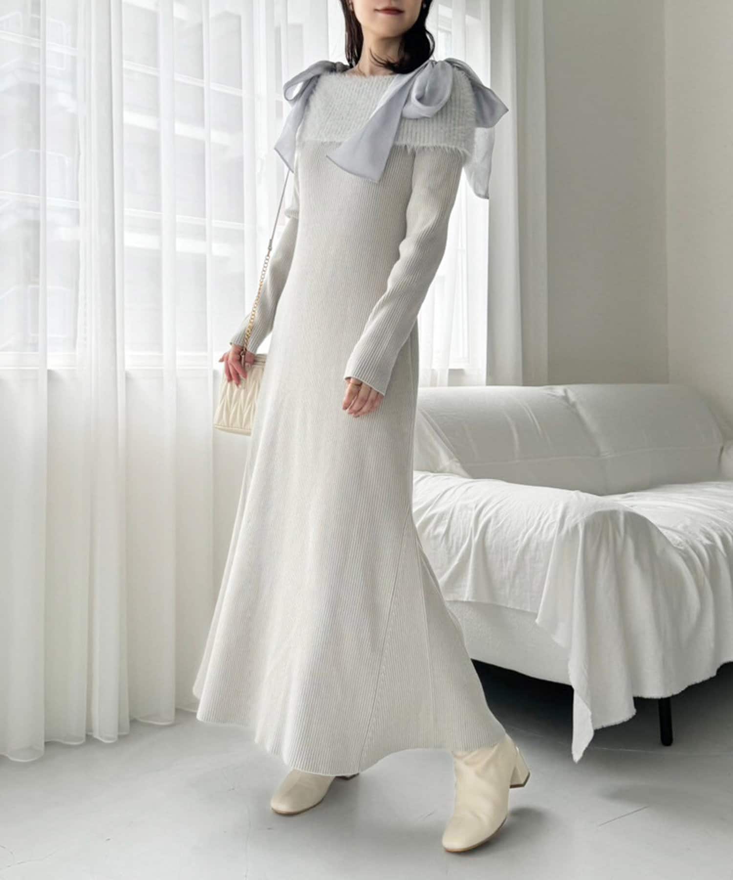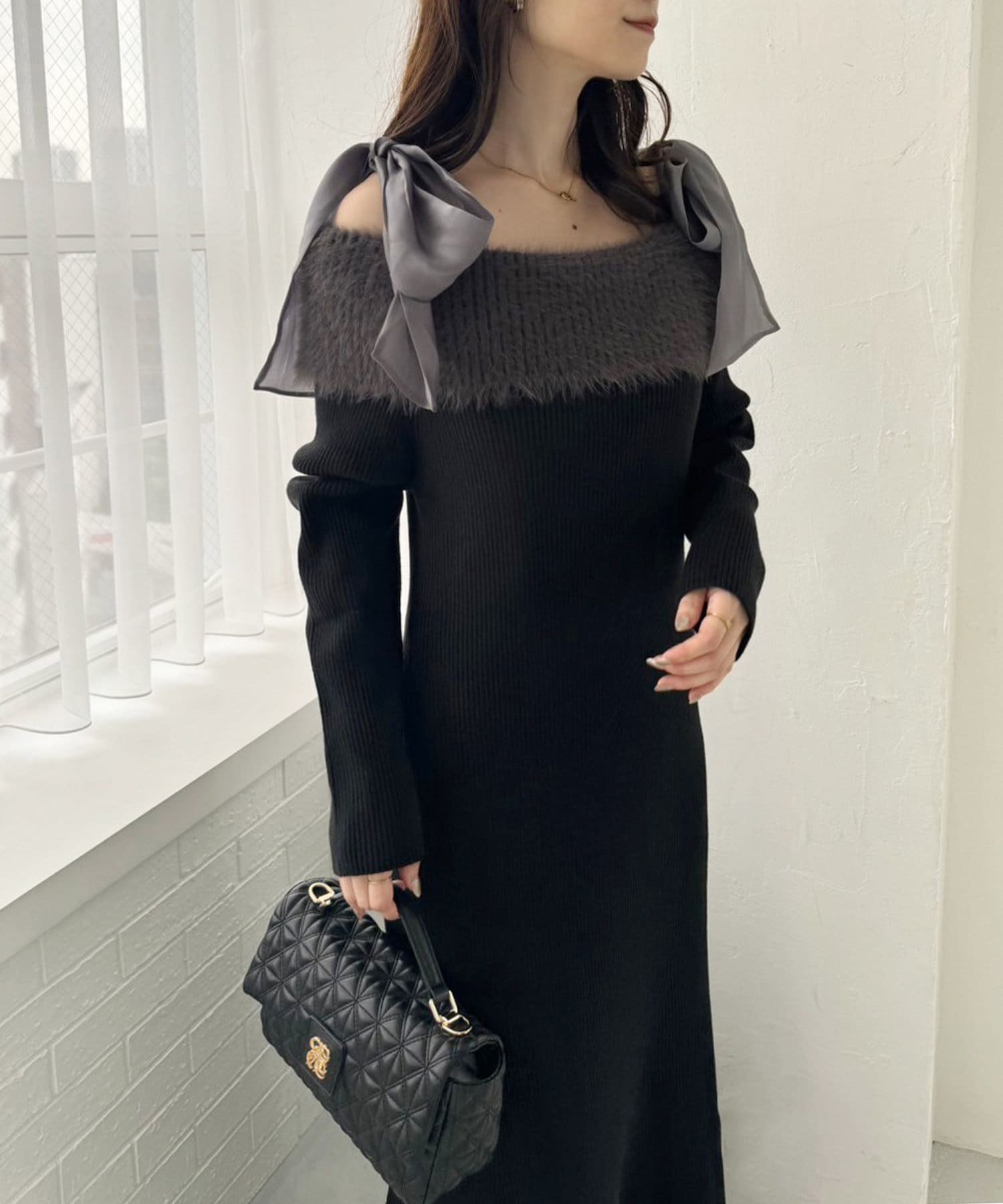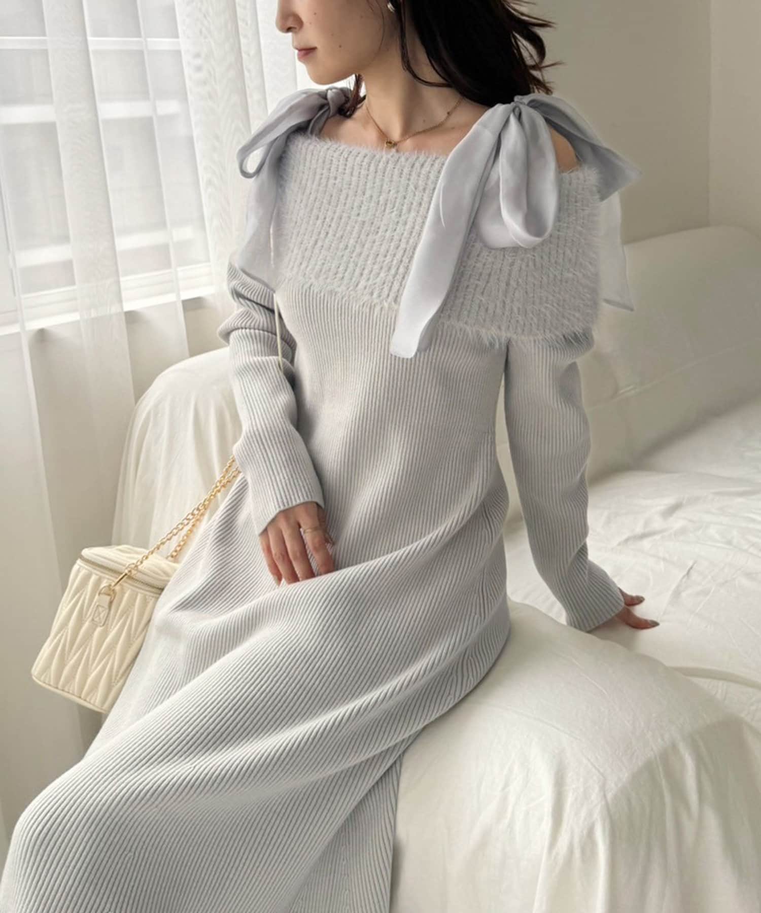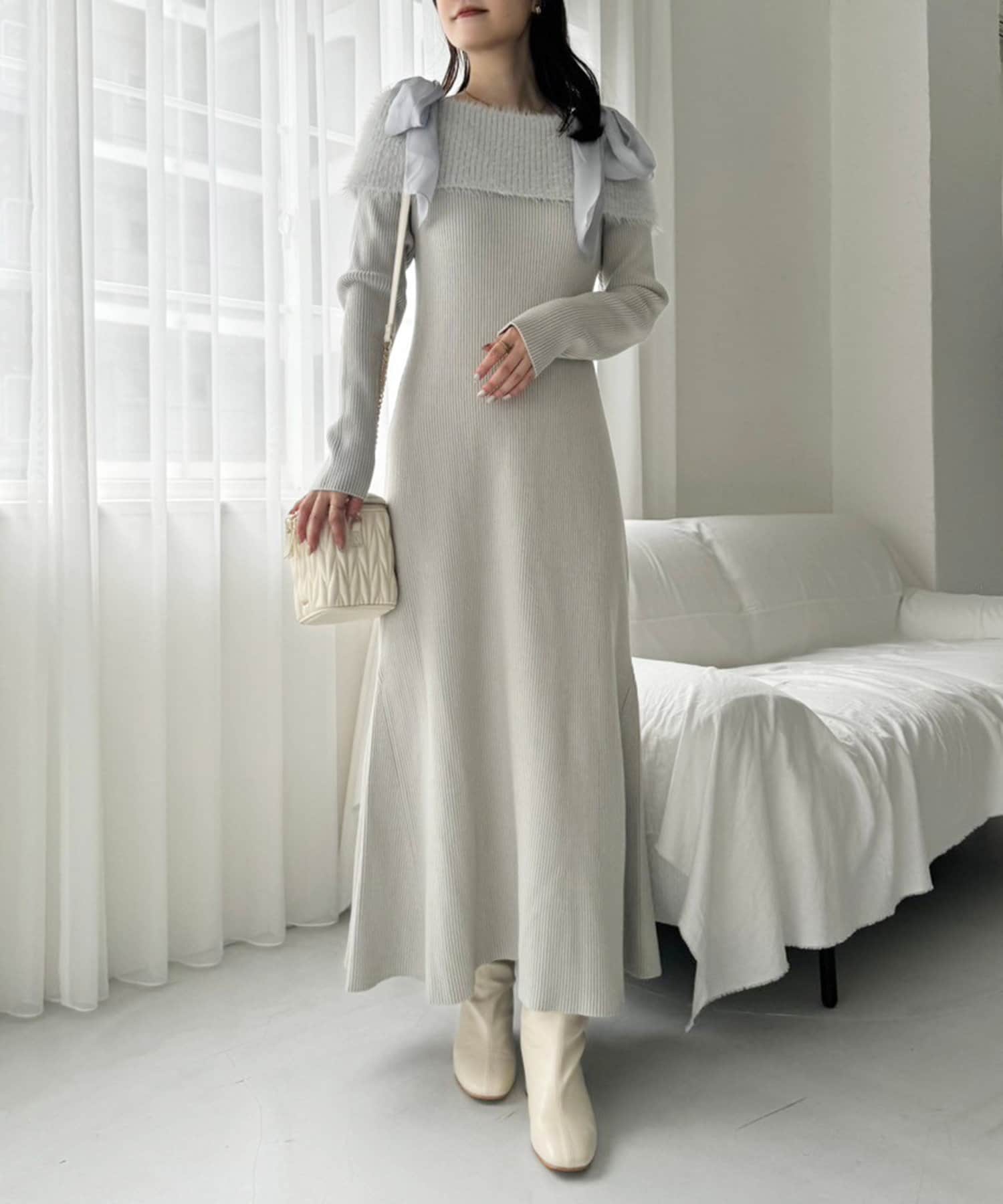 ヘルシーな肌見せが叶うオフショルニットワンピース