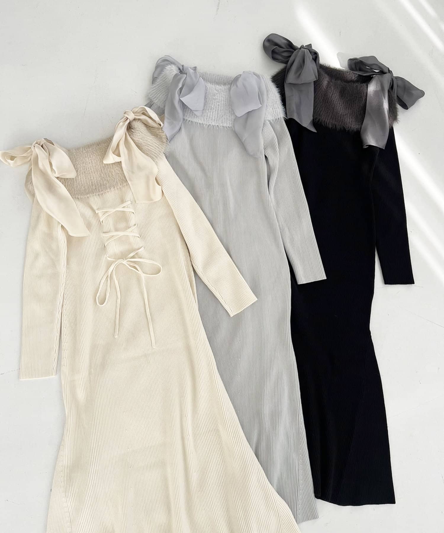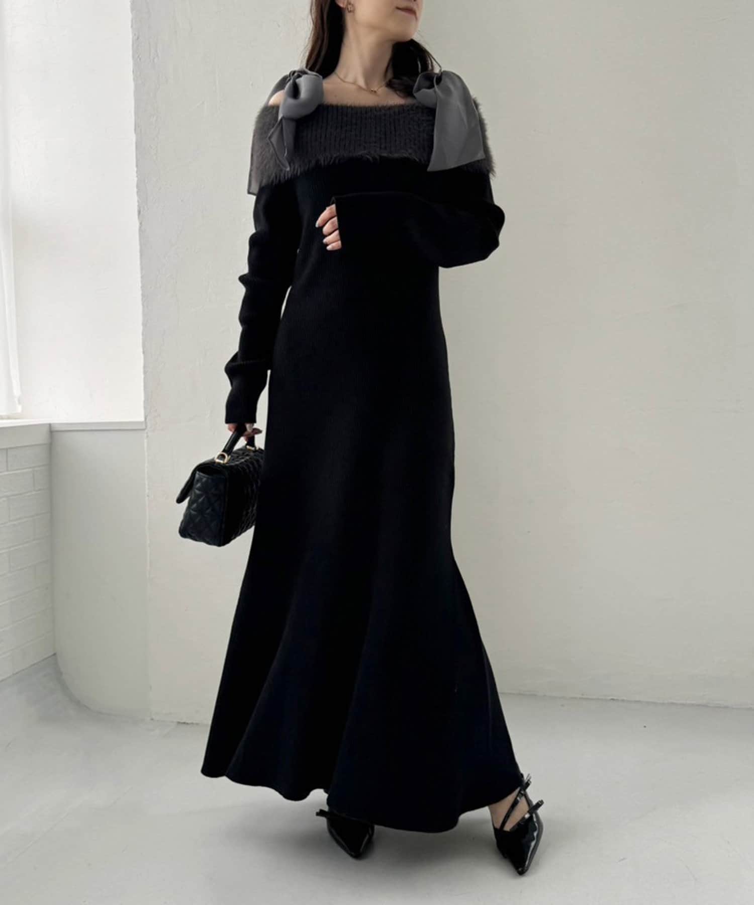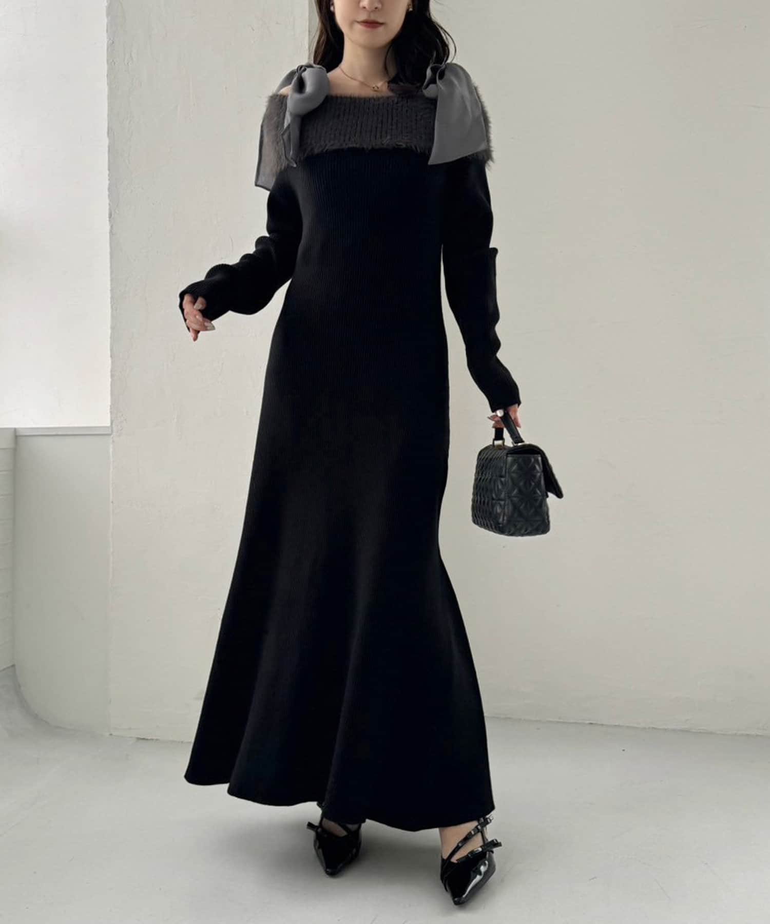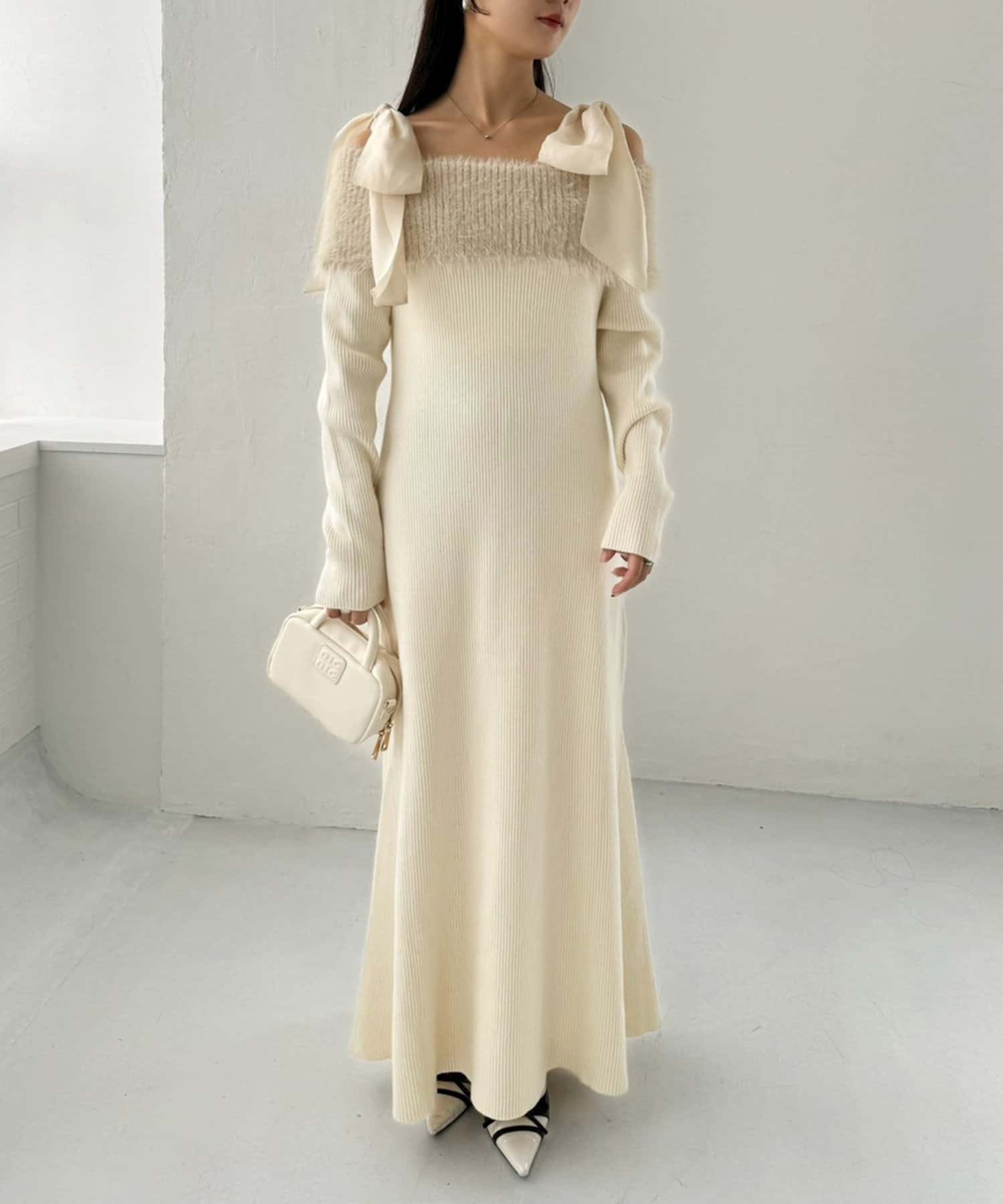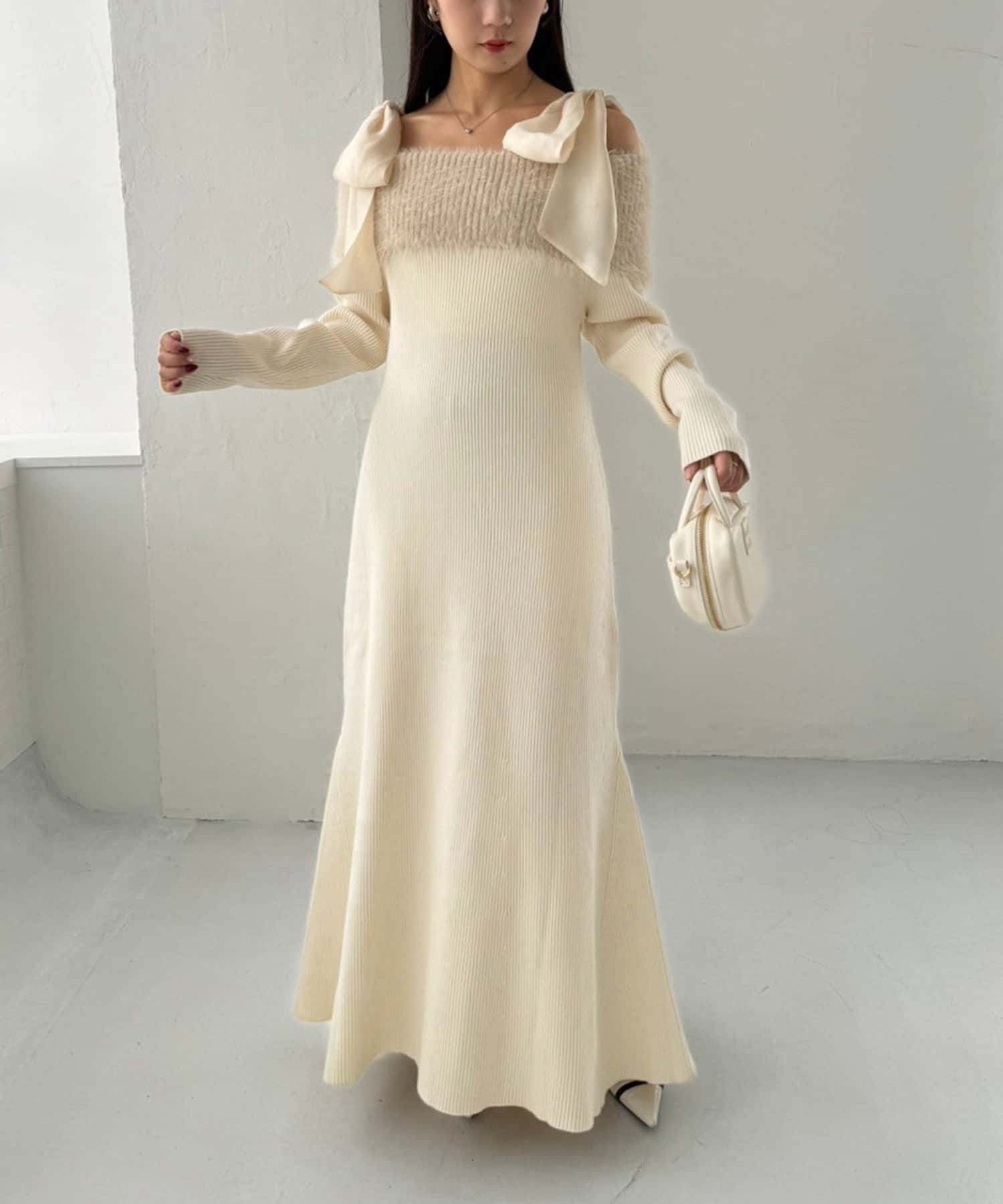 ヘルシーな肌見せが叶うオフショルニットワンピース