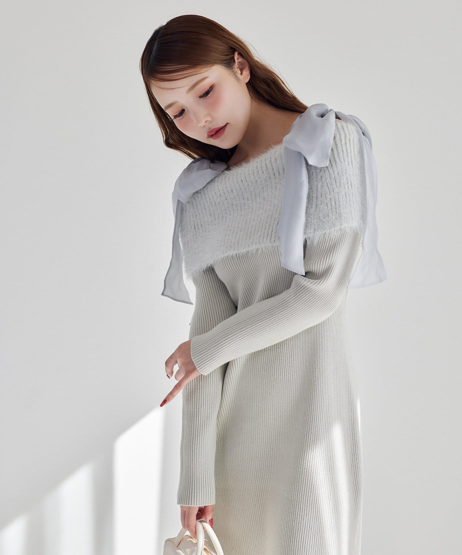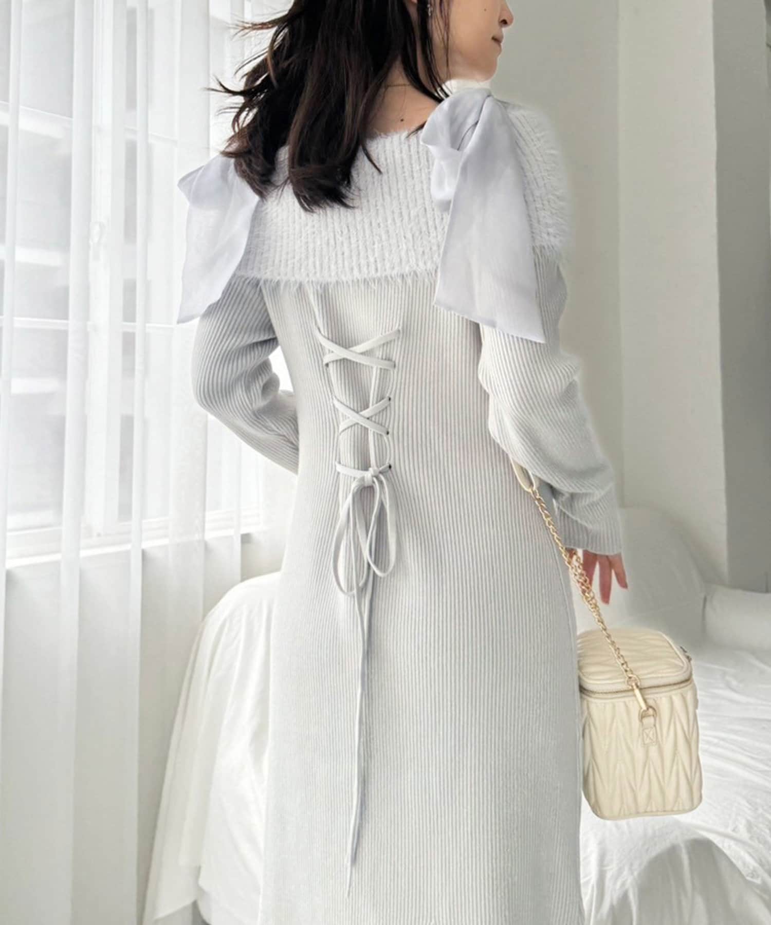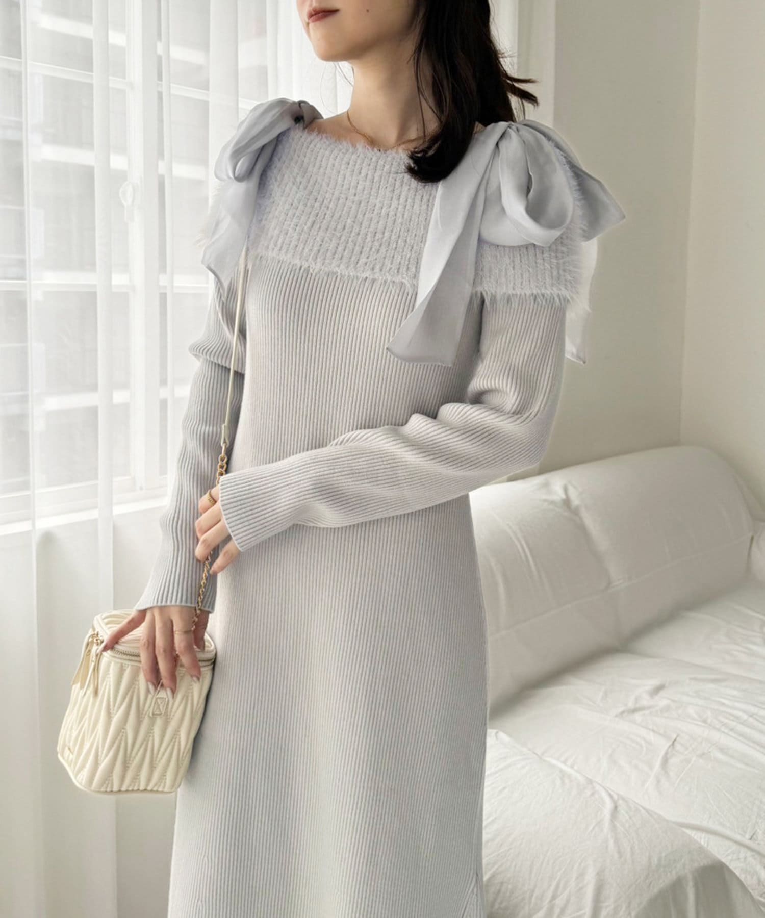 肩のリボンと肌見せであざと可愛く着られるモテワンピースです。