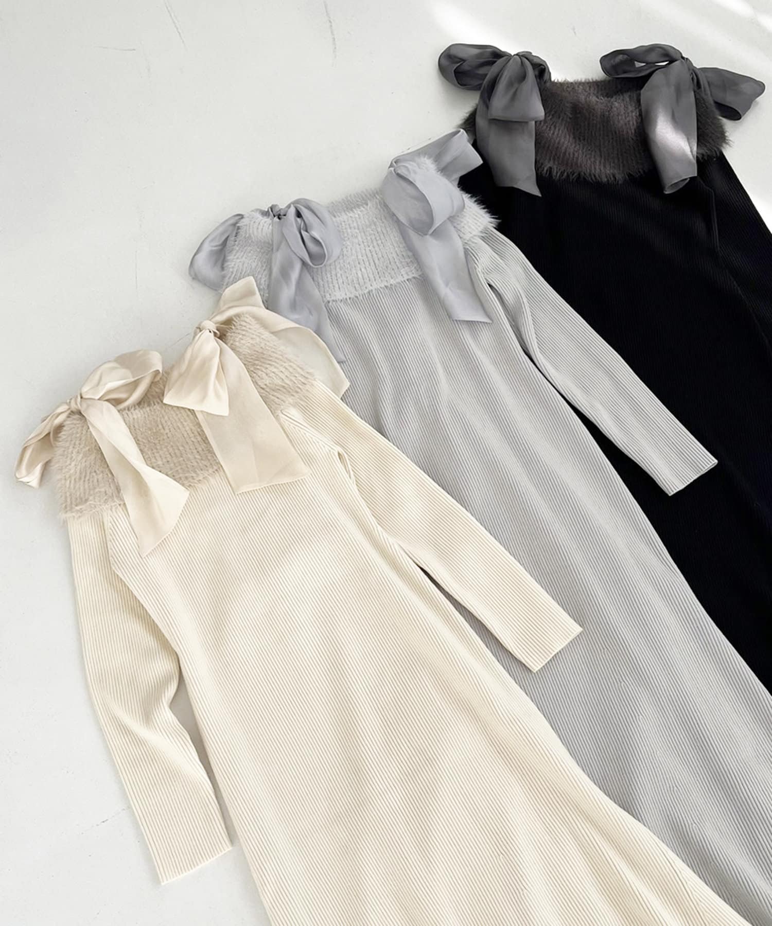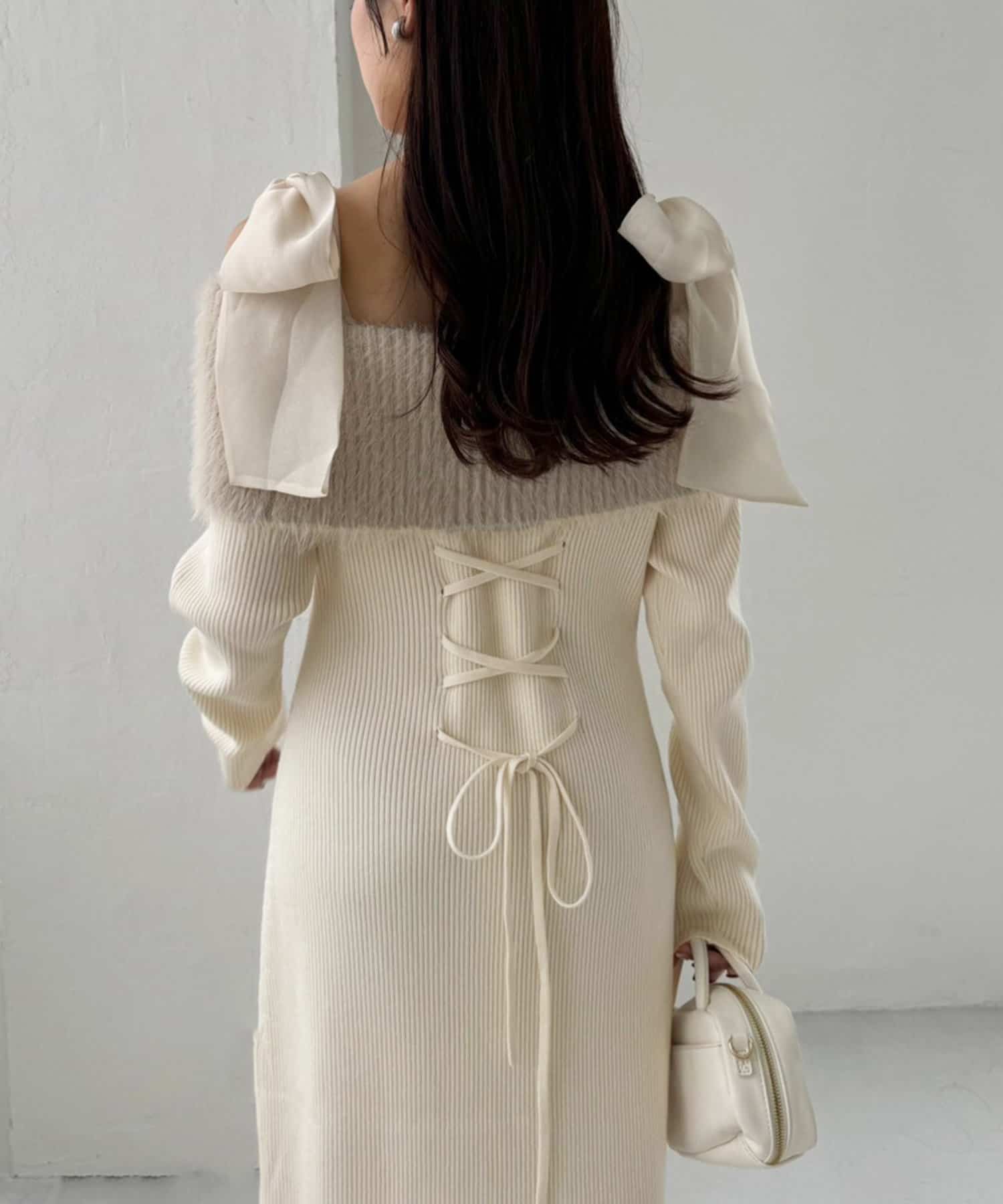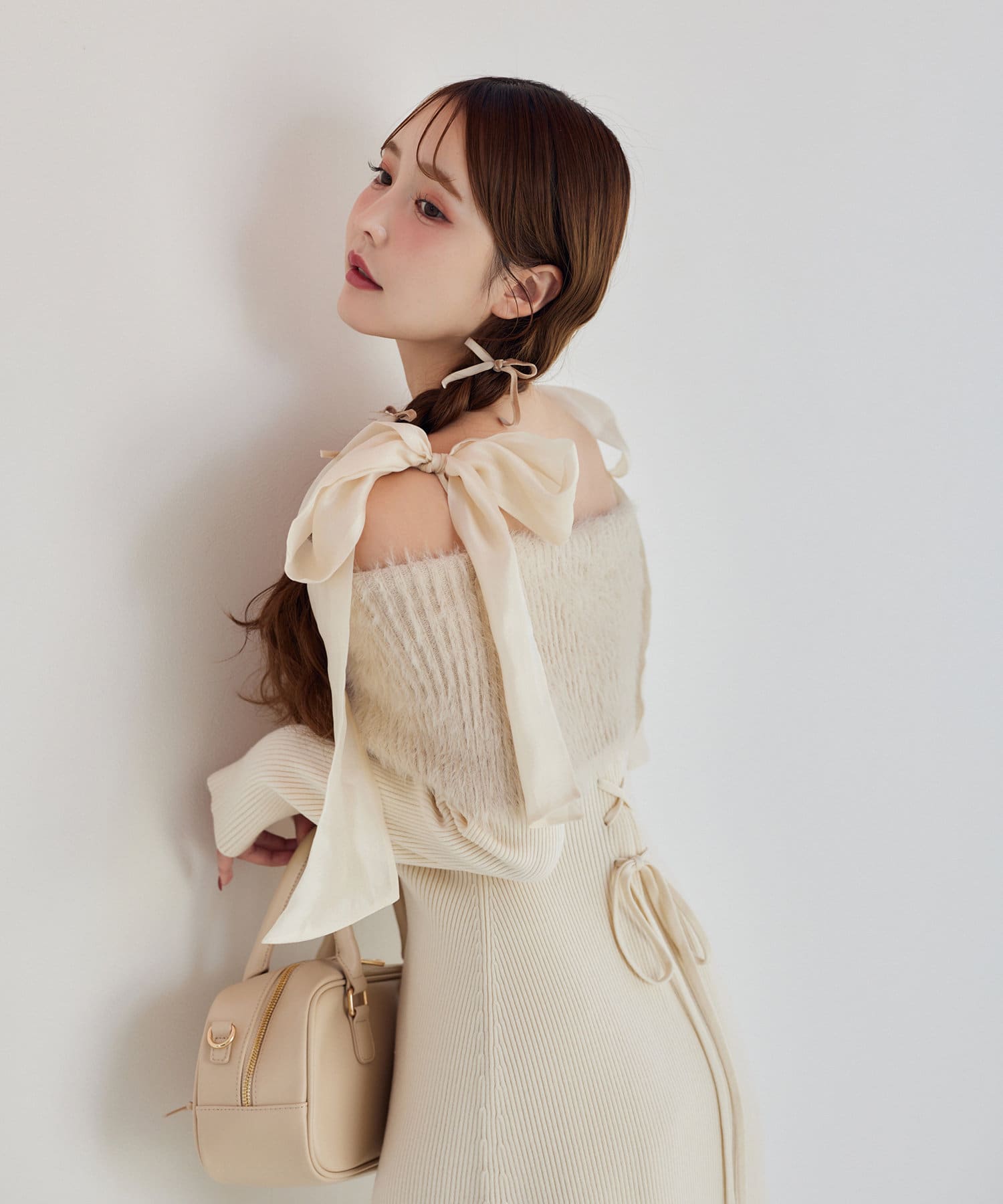 肩のリボンと肌見せであざと可愛く着られるモテワンピースです。