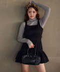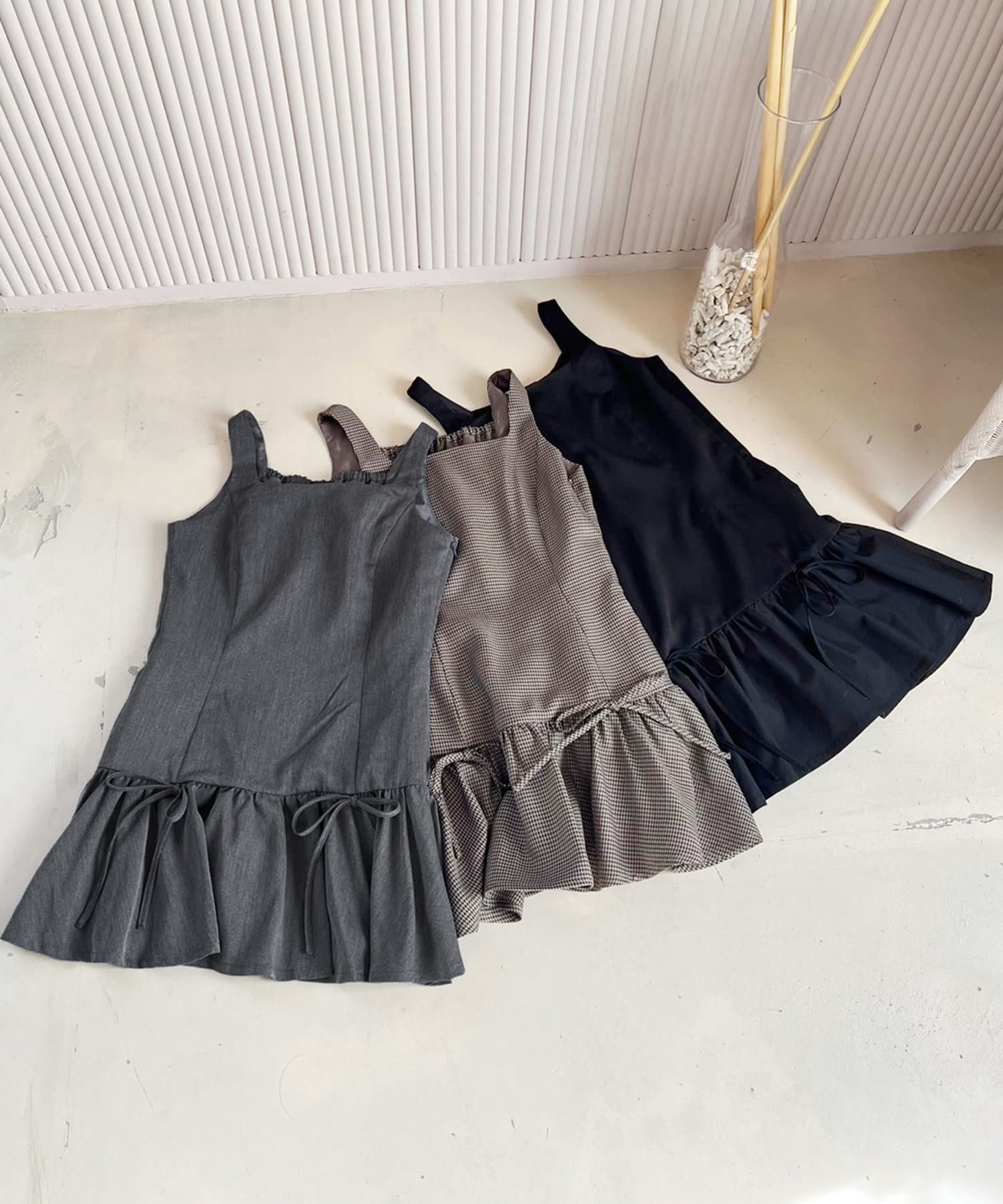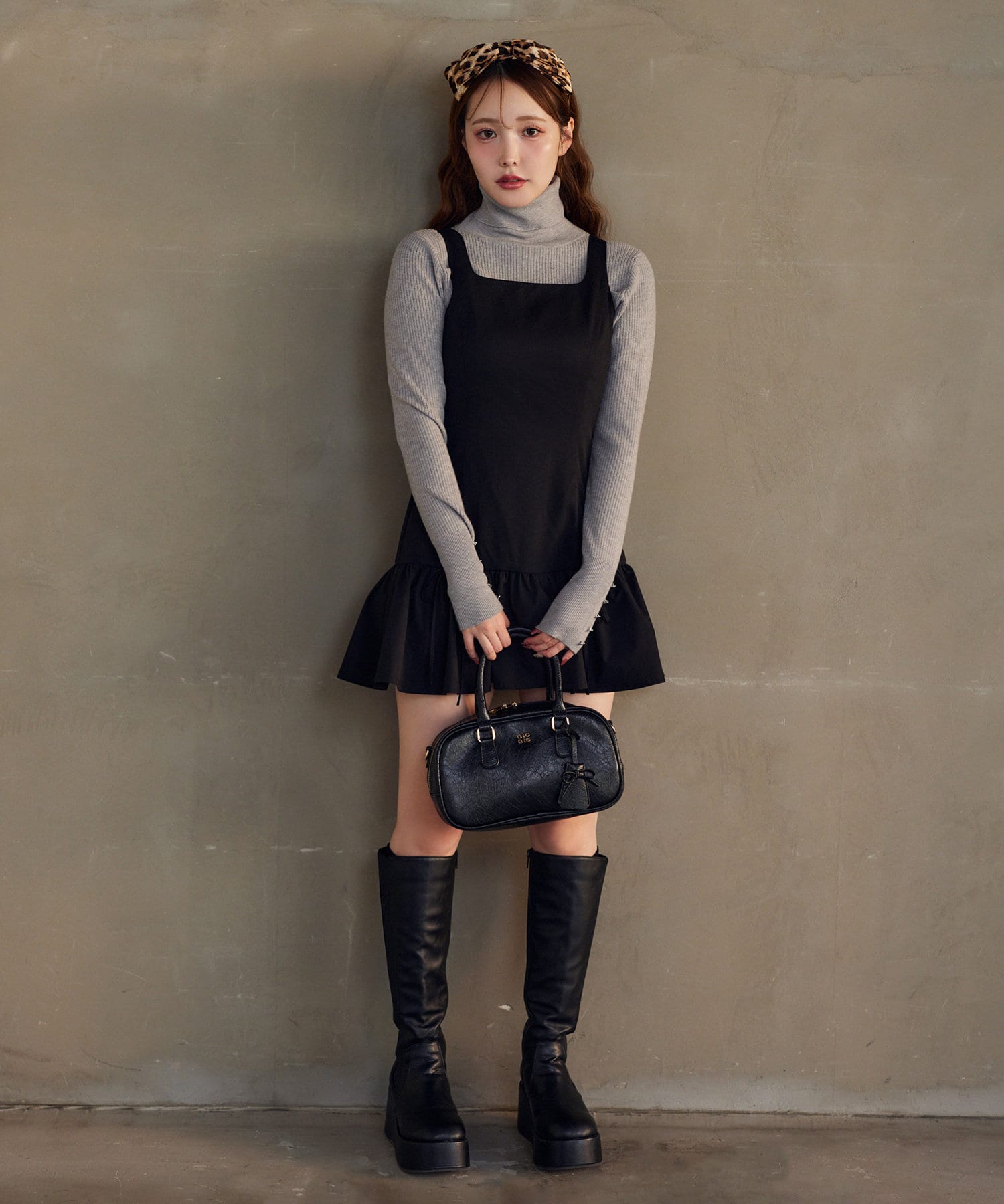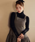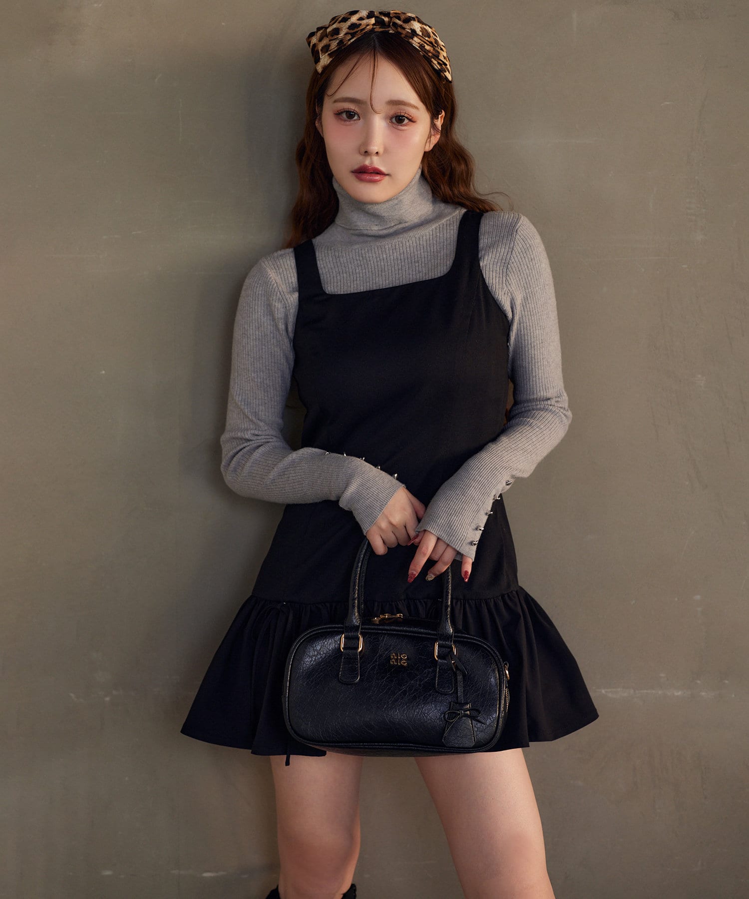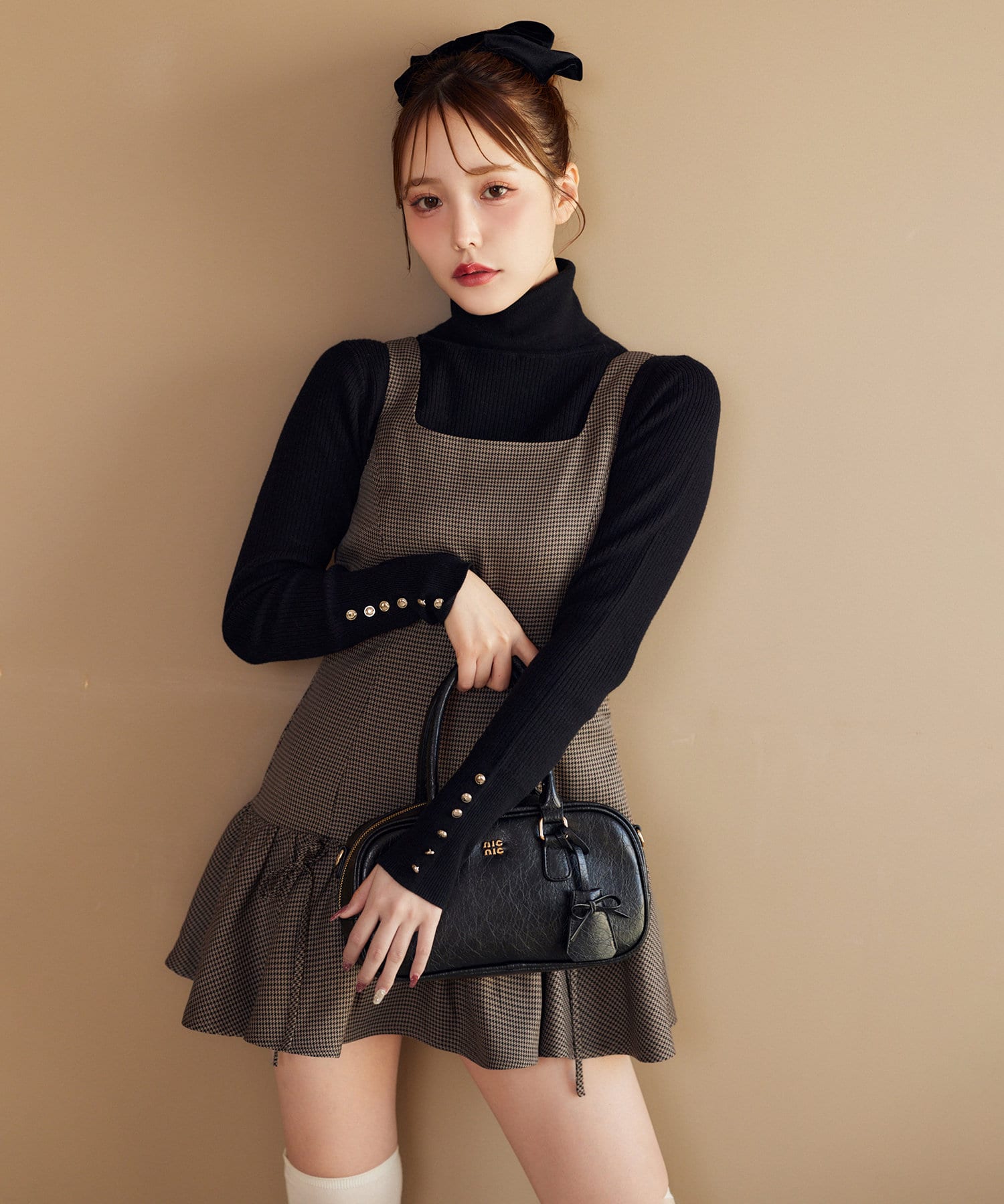 ふんわり広がるシルエットとさりげないリボンが可愛らしいミニジャンパースカート