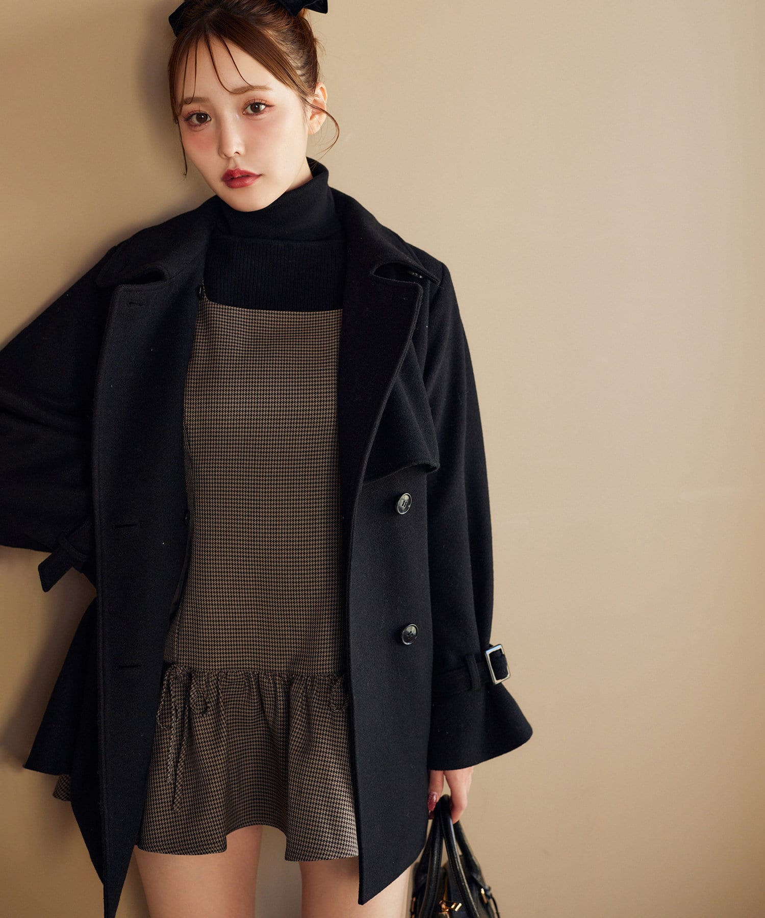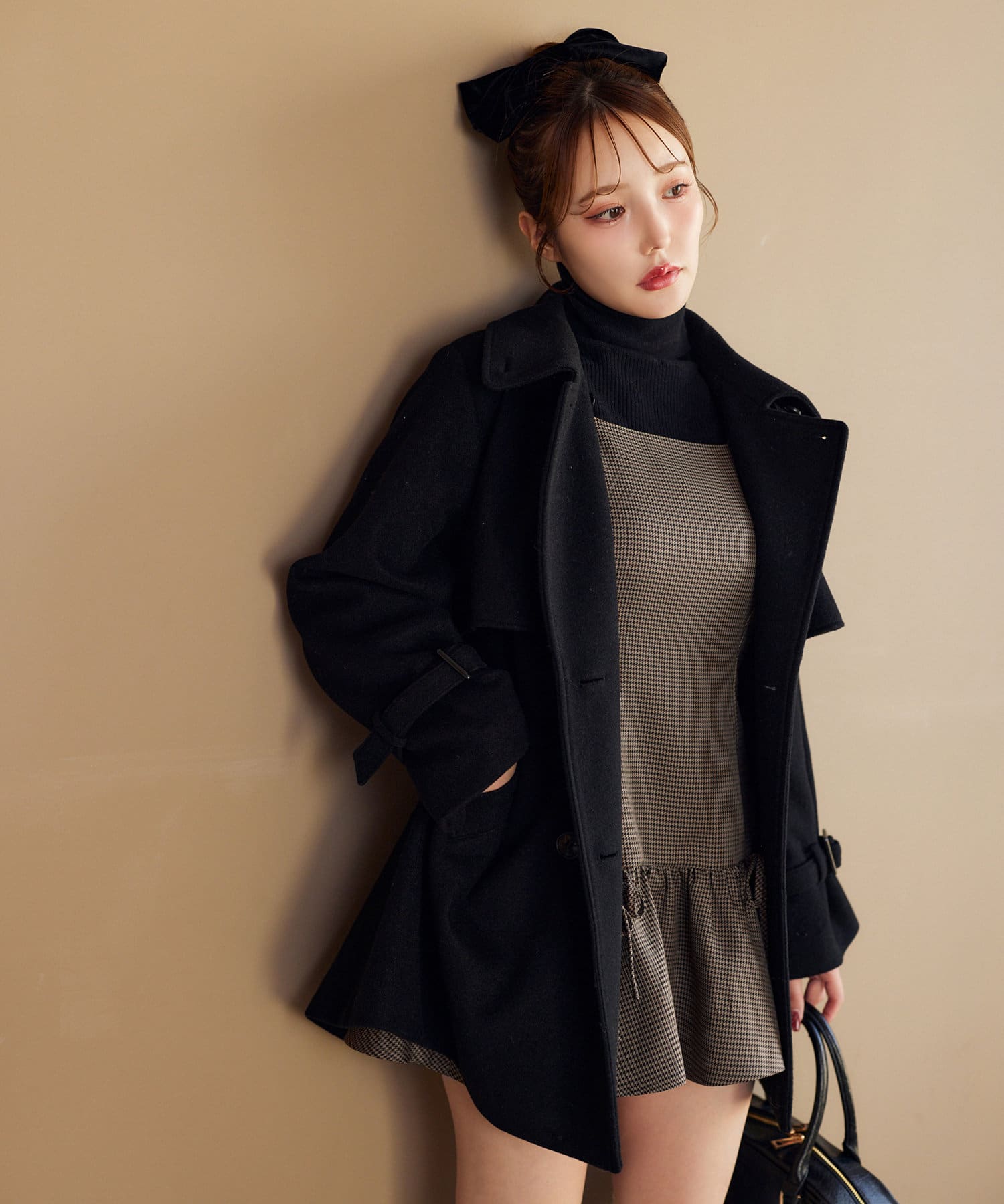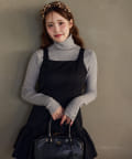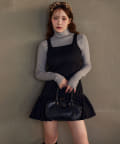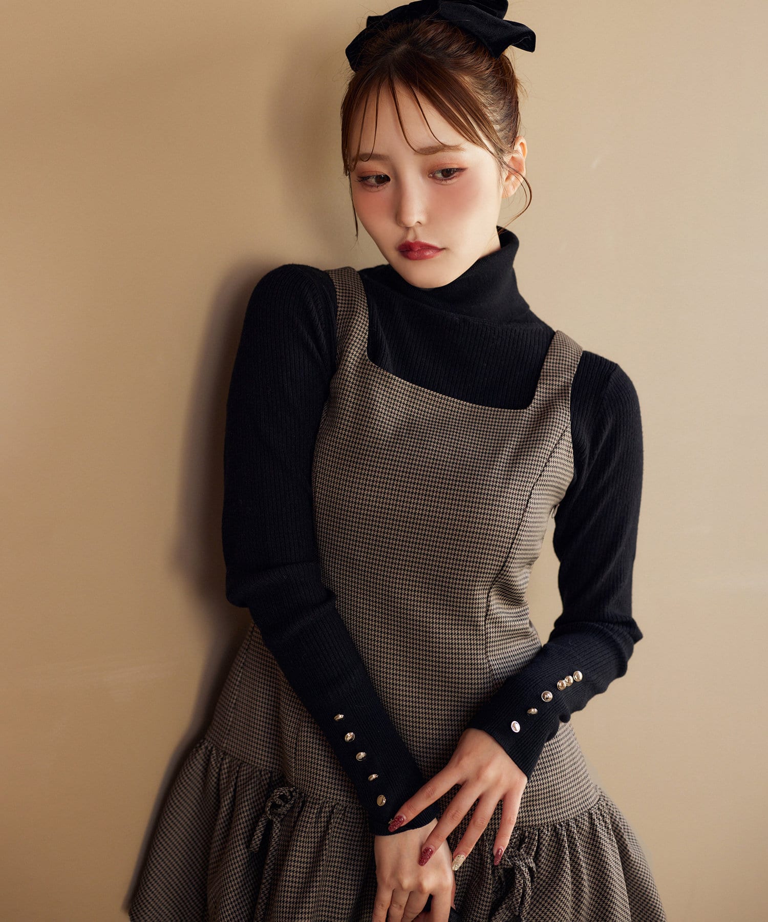 ハイネックニットや薄手のトップスと合わせたレイヤードコーデがオススメ。