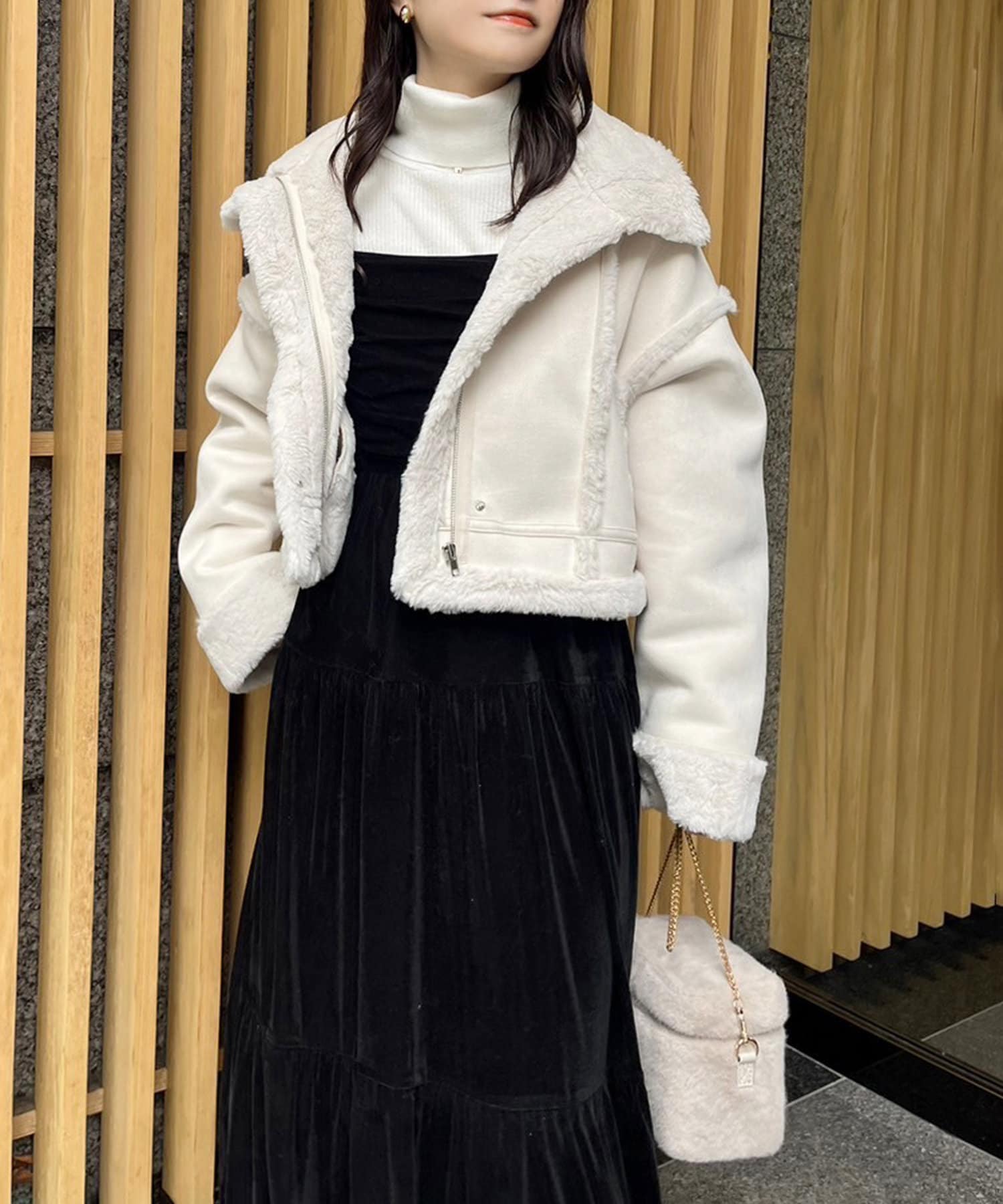 ハイネックニットやシアートップスとレイヤードして着ていただくのがオススメ。