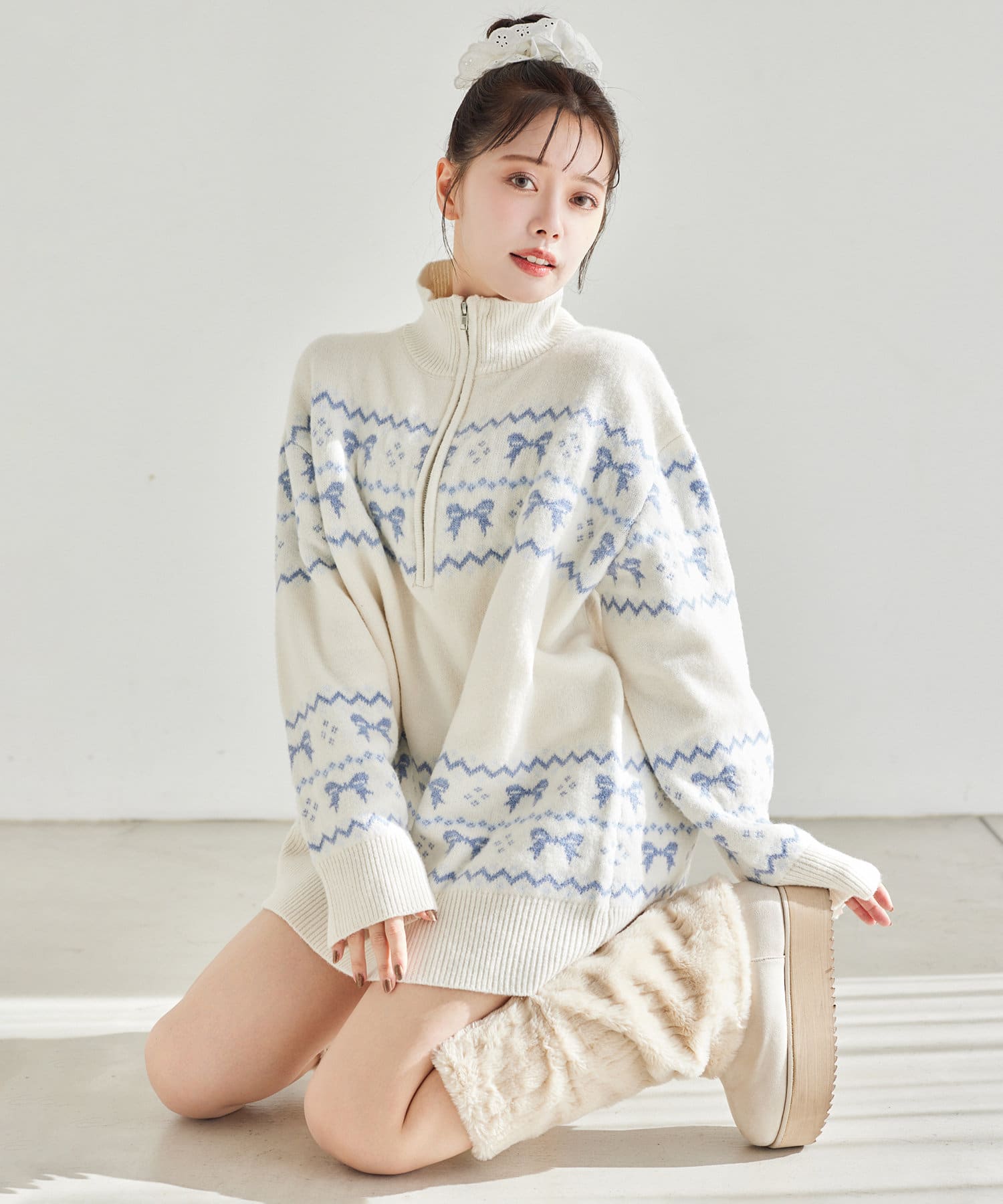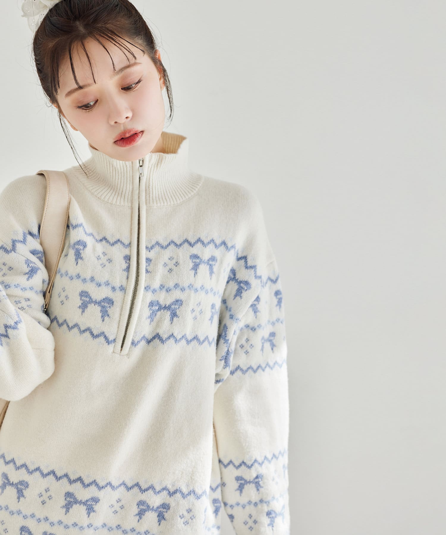 ハーフジップなのでトレンドも押さえつつ、旬なこなれたスタイルが楽しめます。