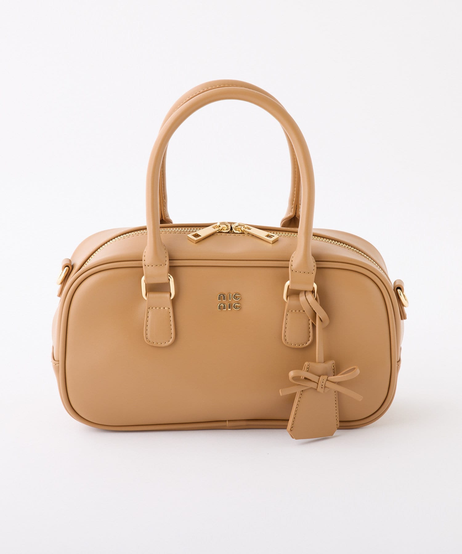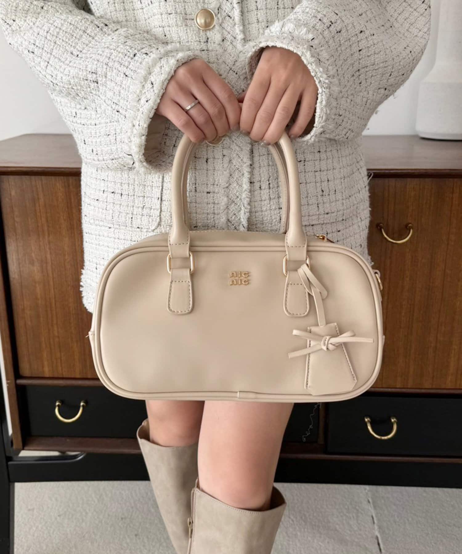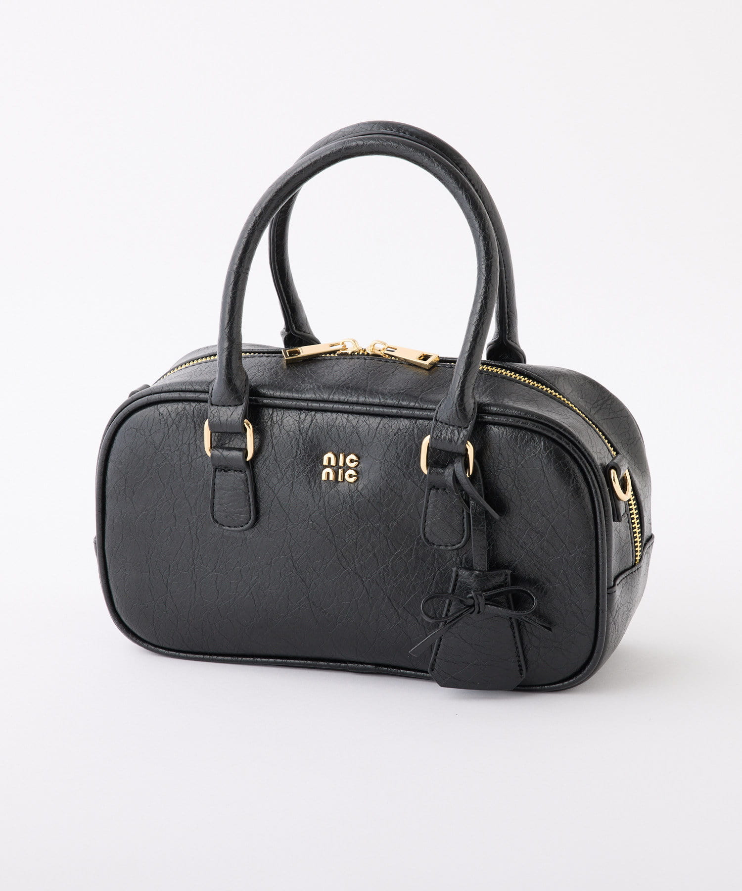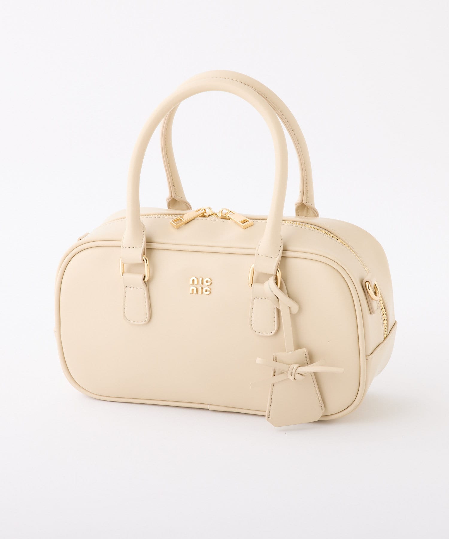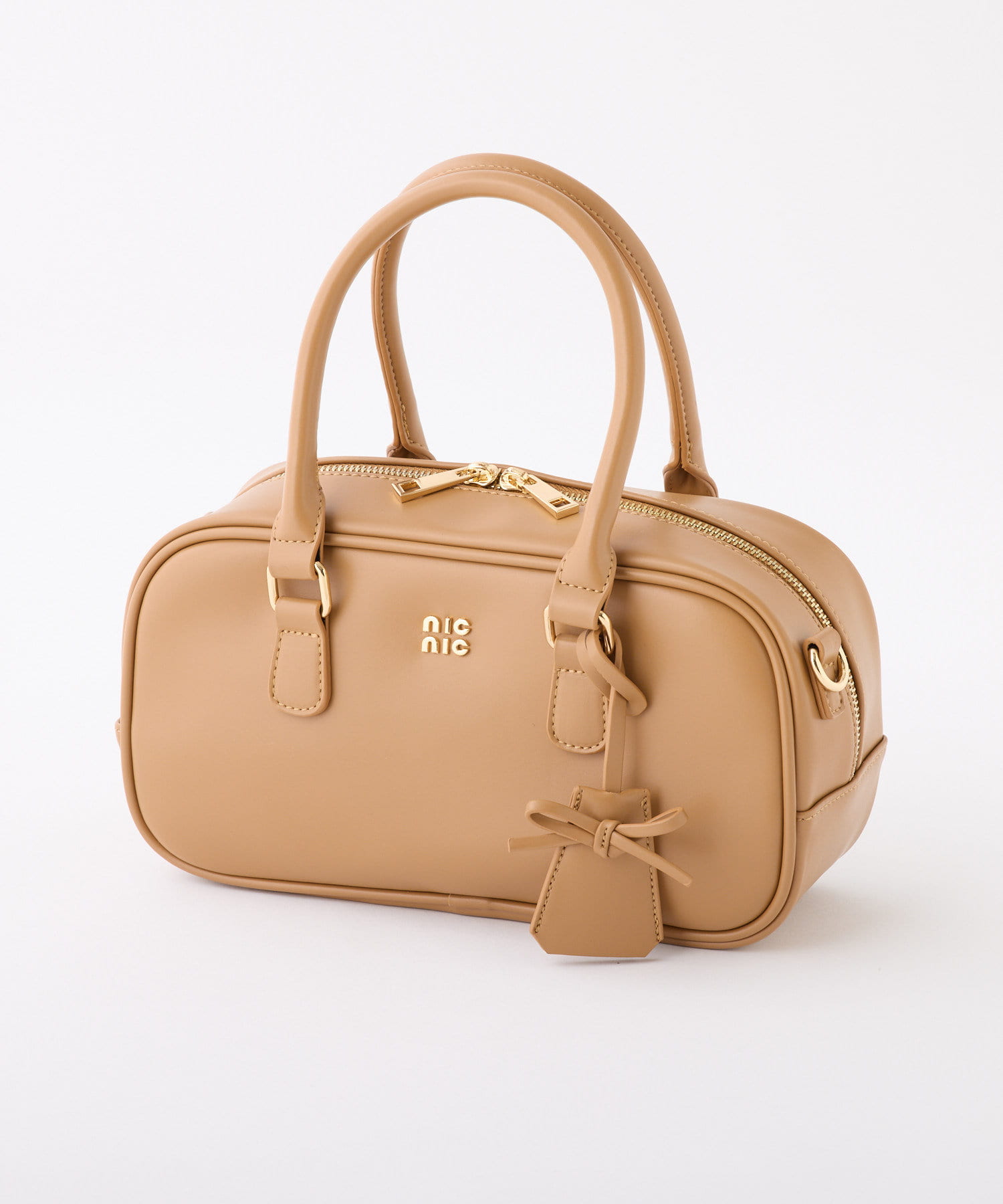 【収納力◎】キーチャーム付きスクエアボストンバッグ