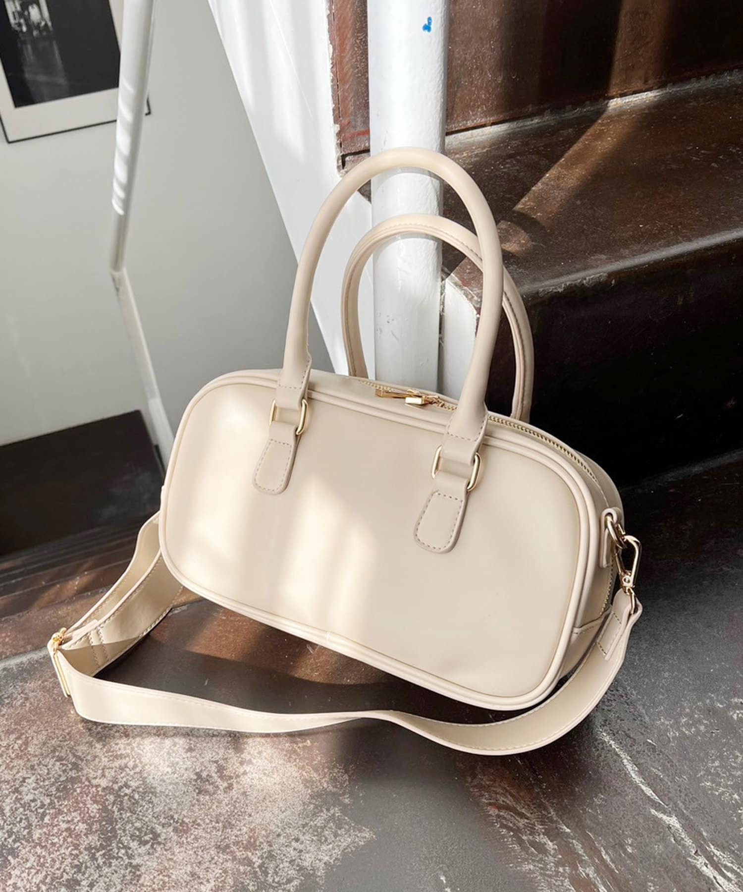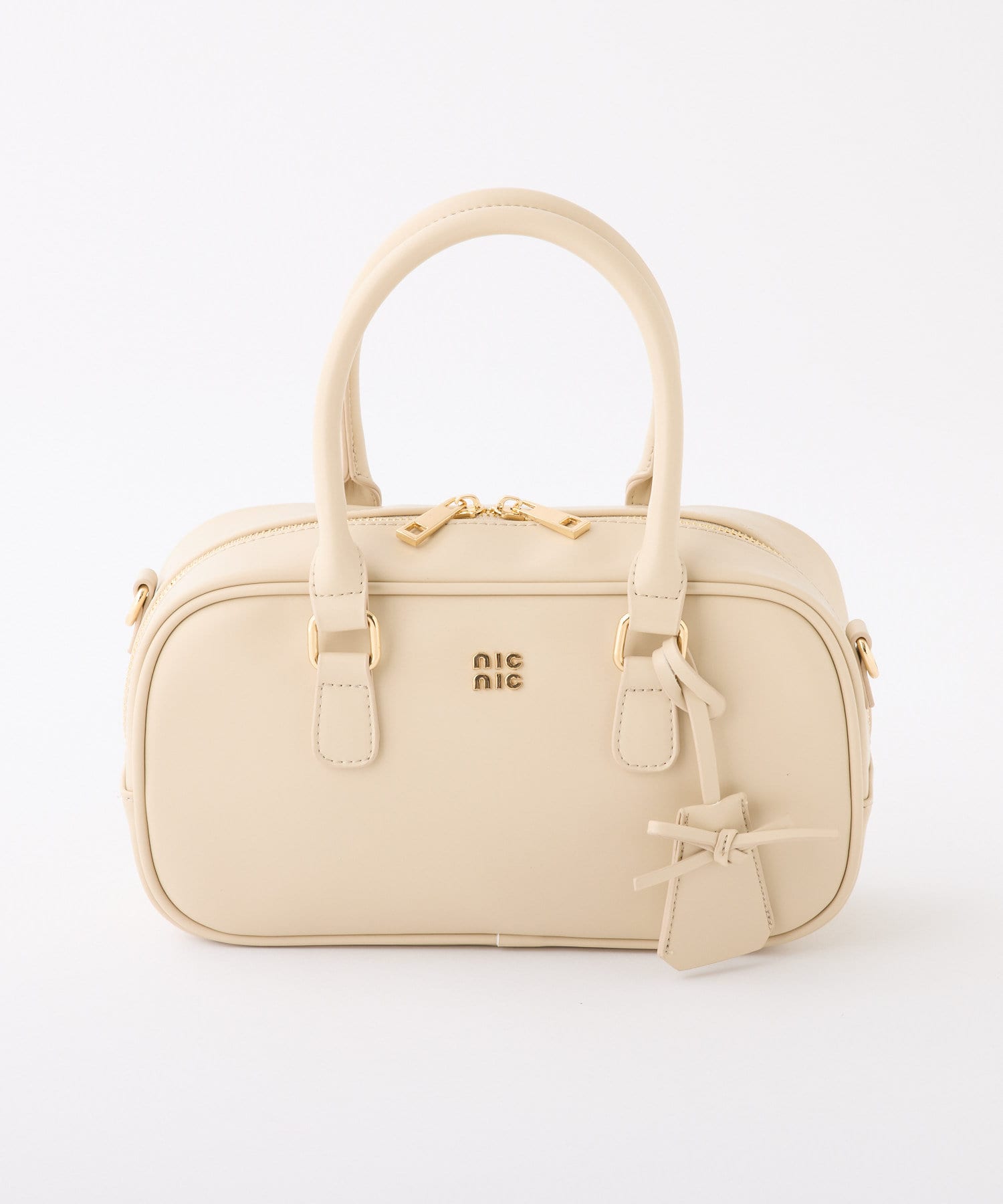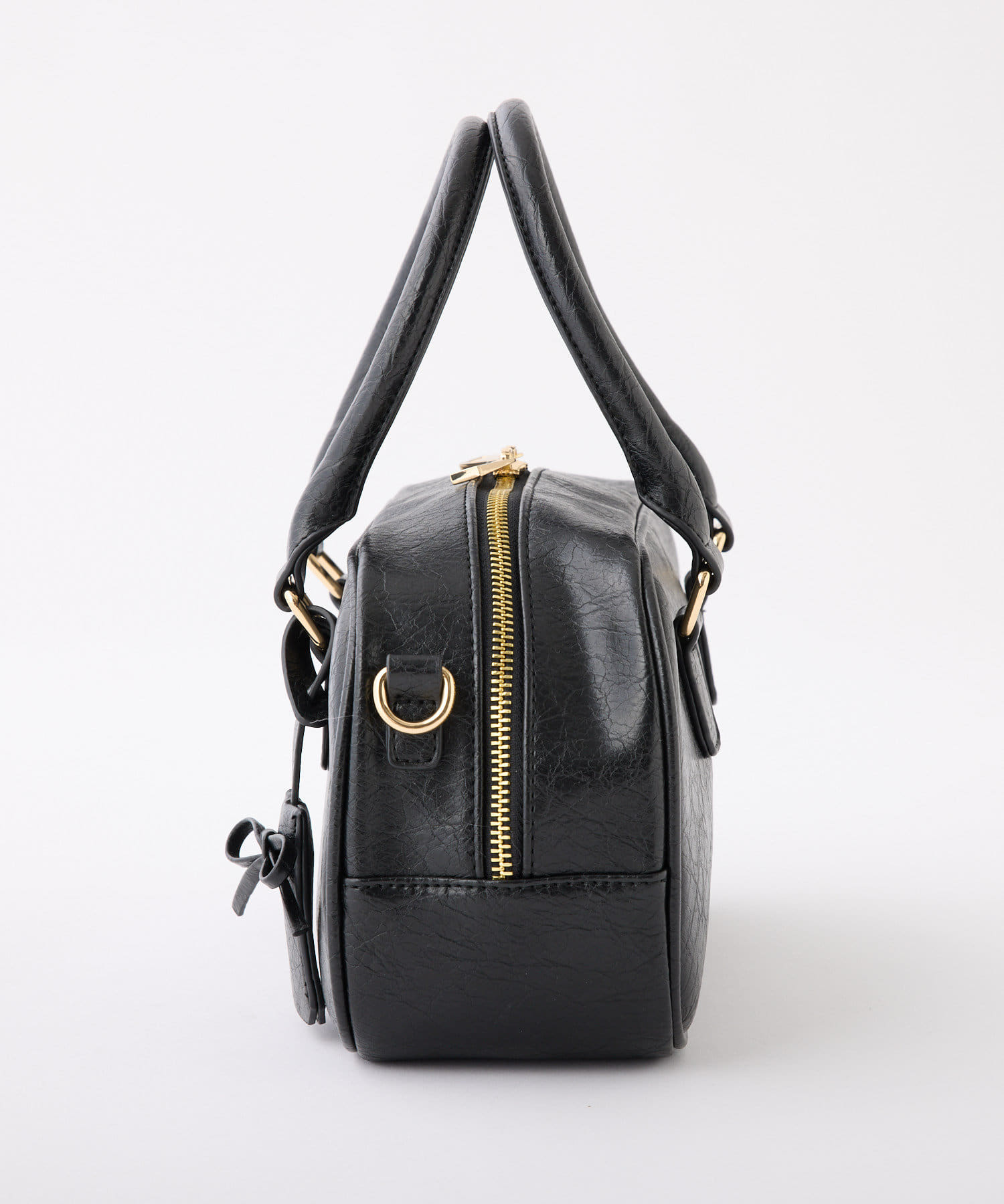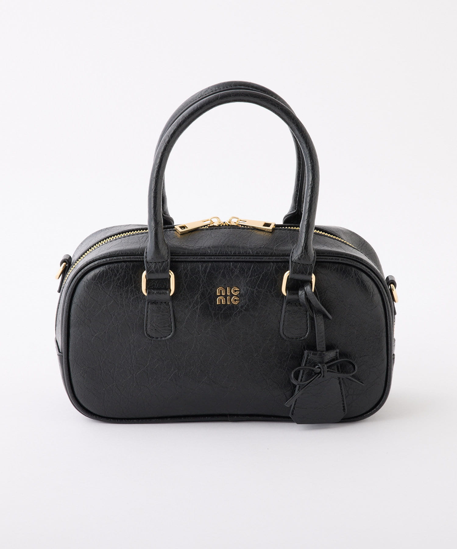 【収納力◎】キーチャーム付きスクエアボストンバッグ