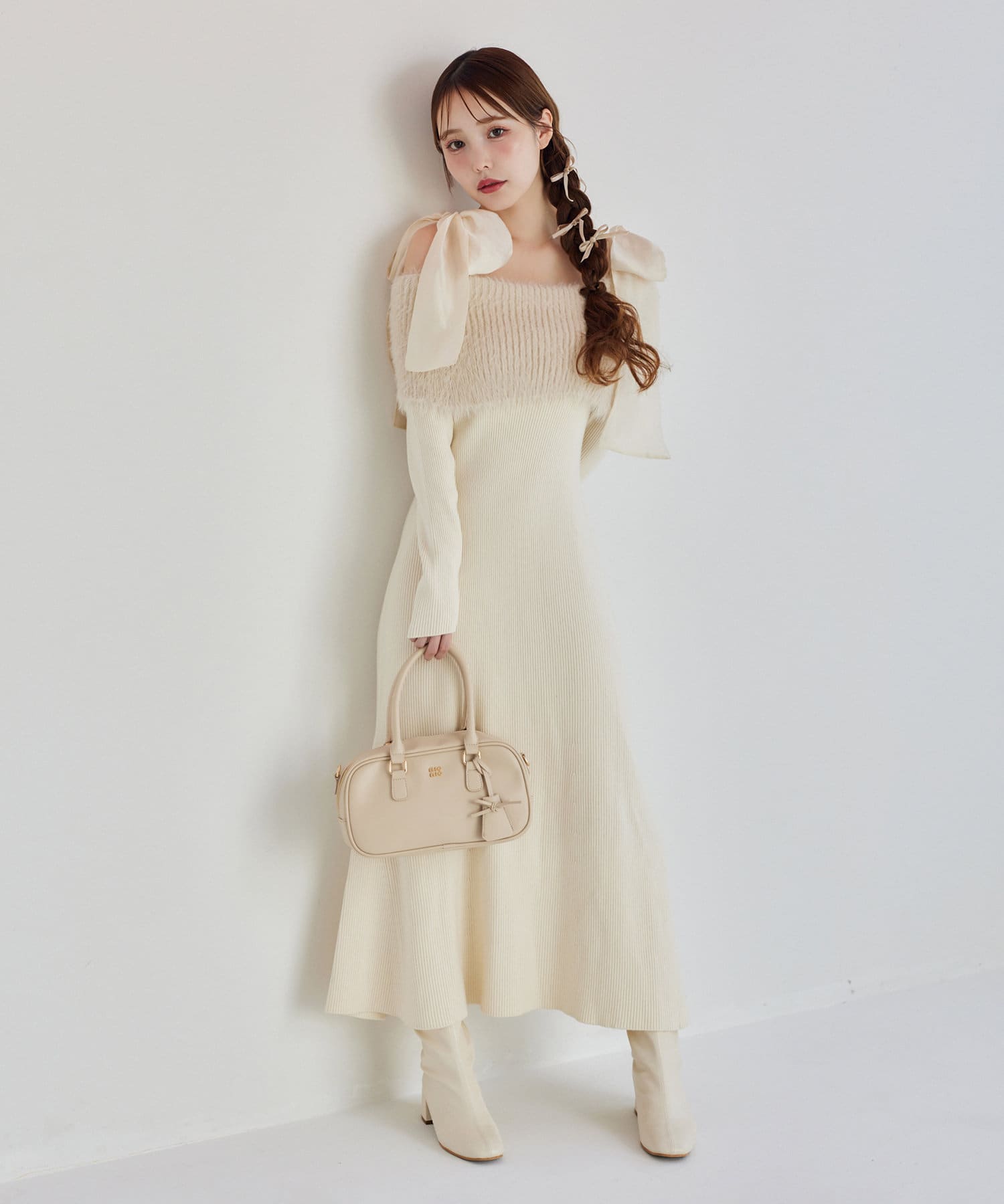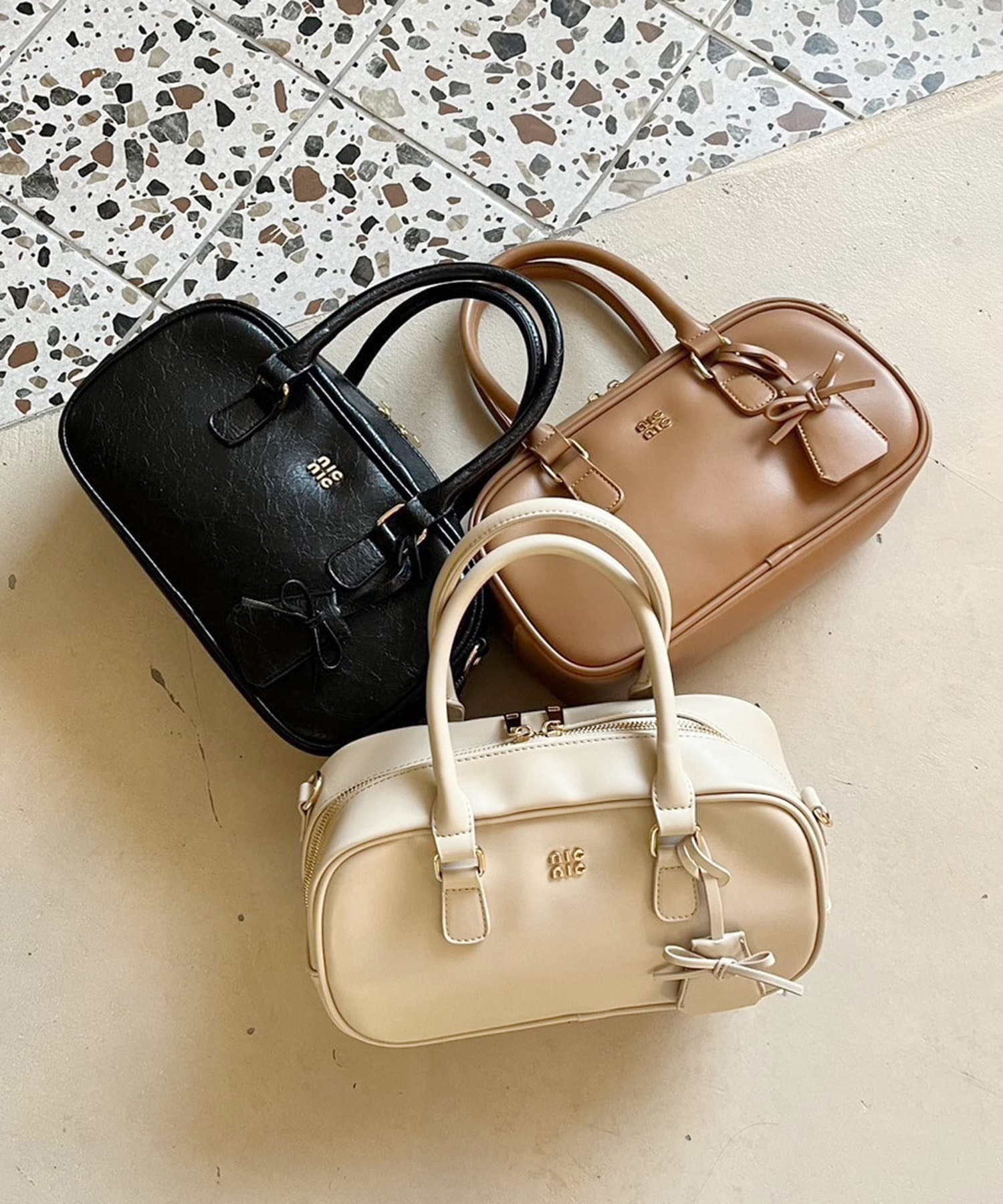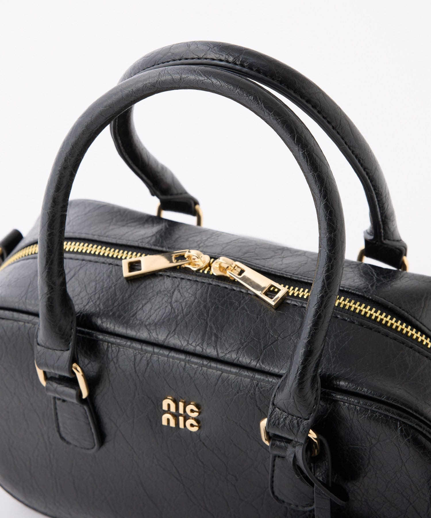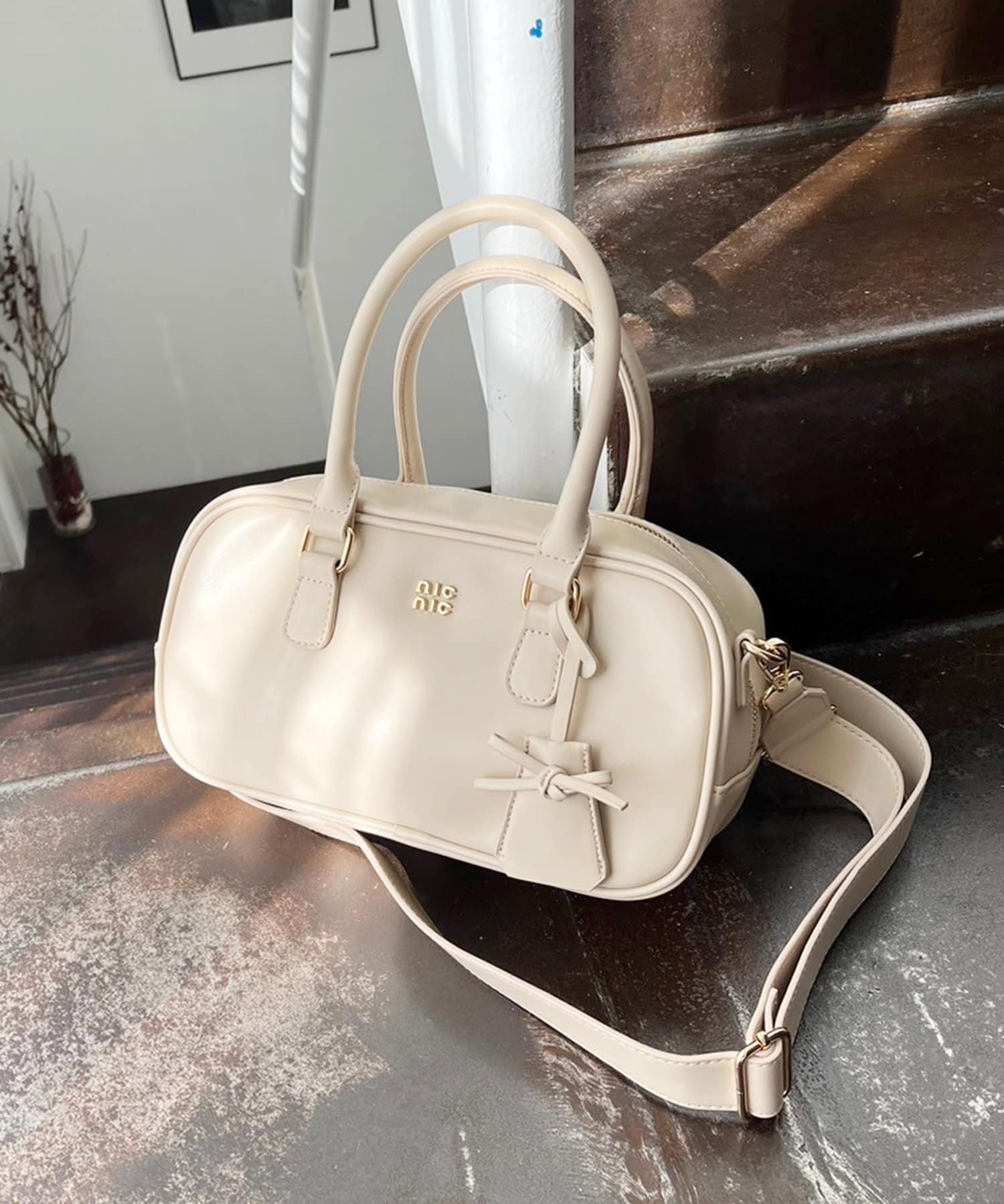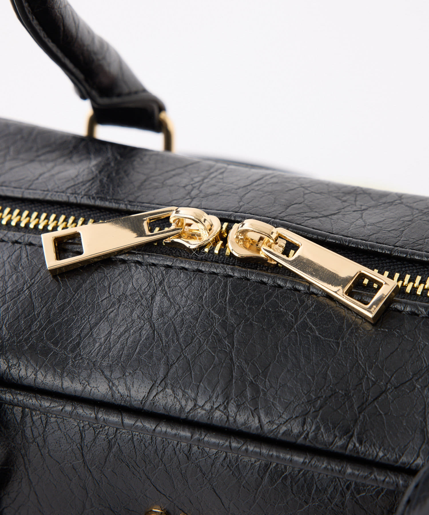 【収納力◎】キーチャーム付きスクエアボストンバッグ