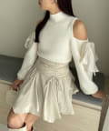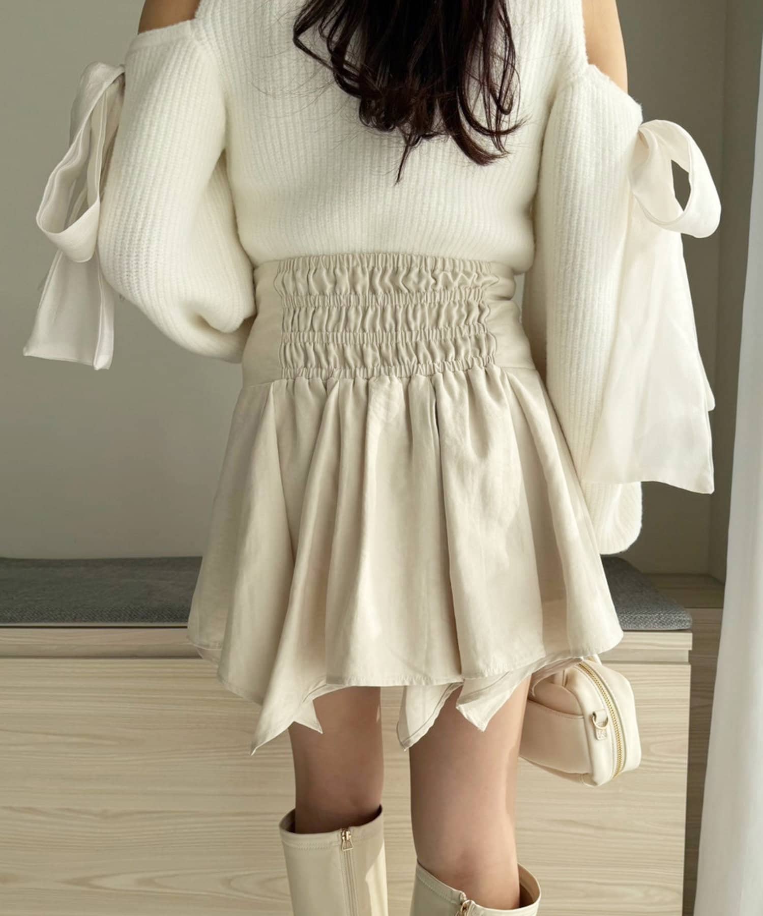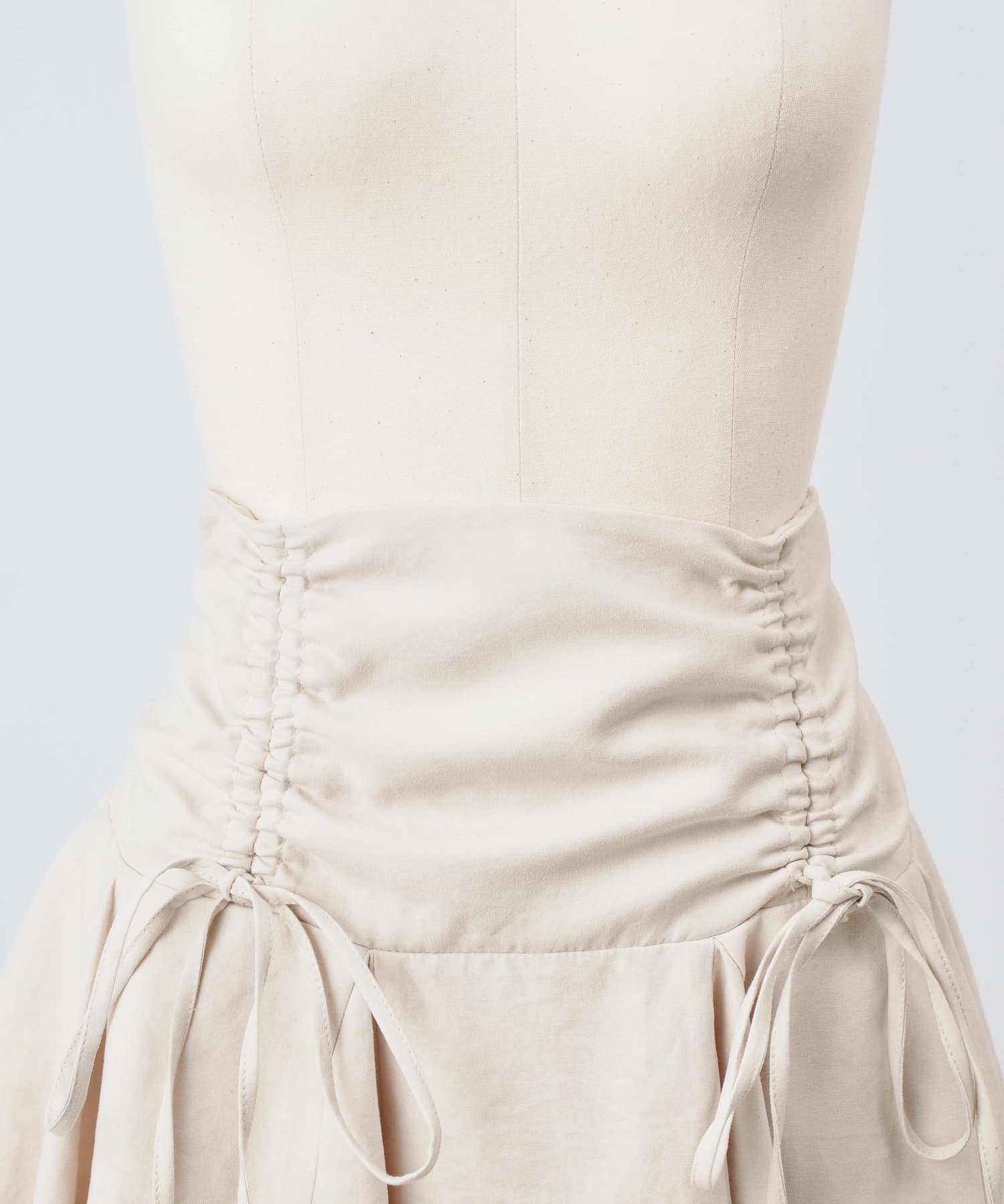 ウエスト部分のドロストとリボンがガーリーな印象を与えてくれます◎