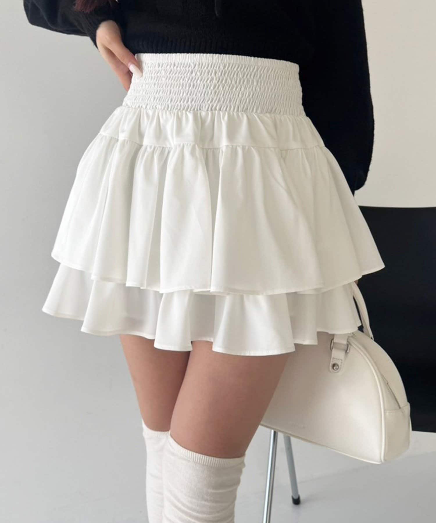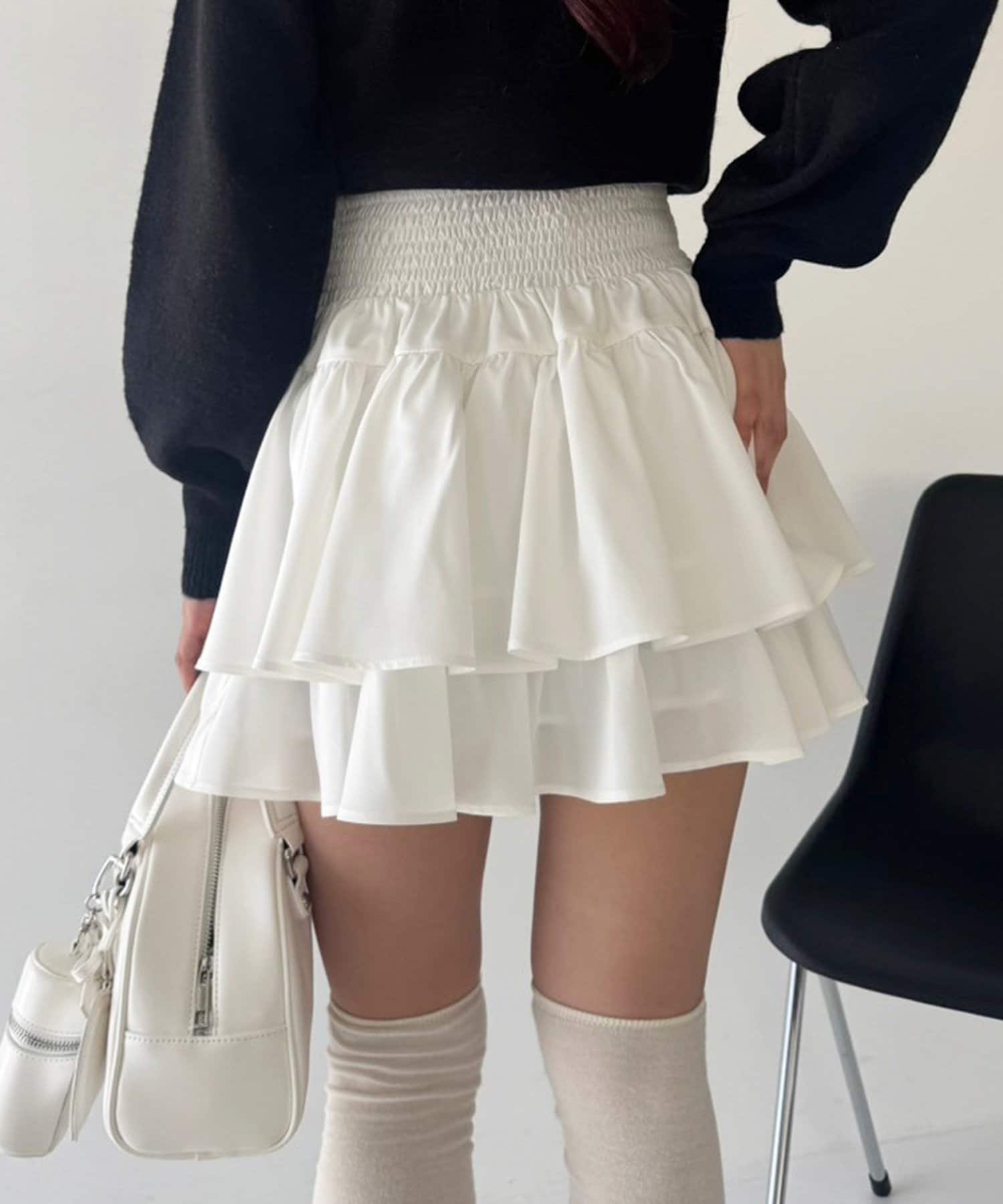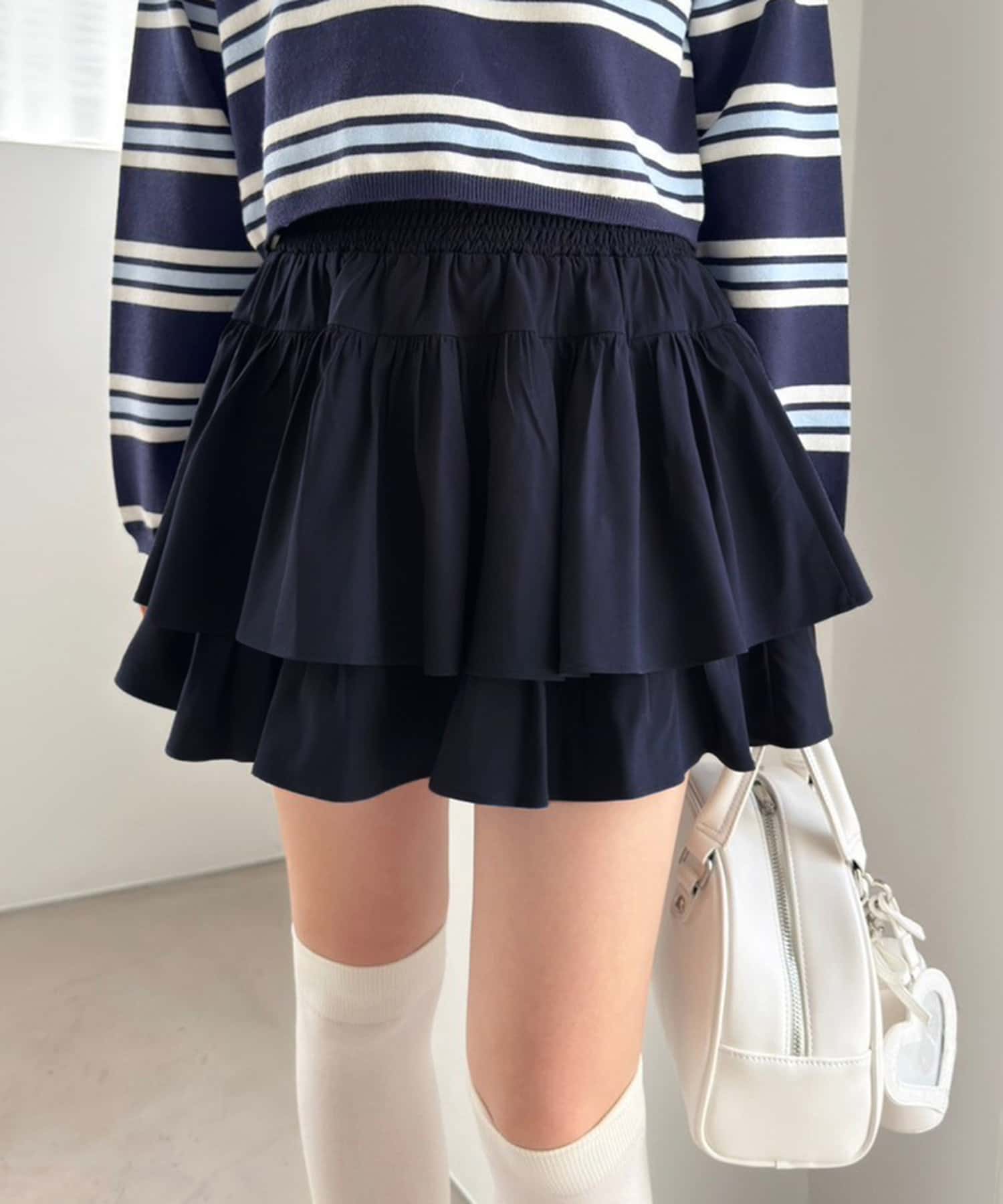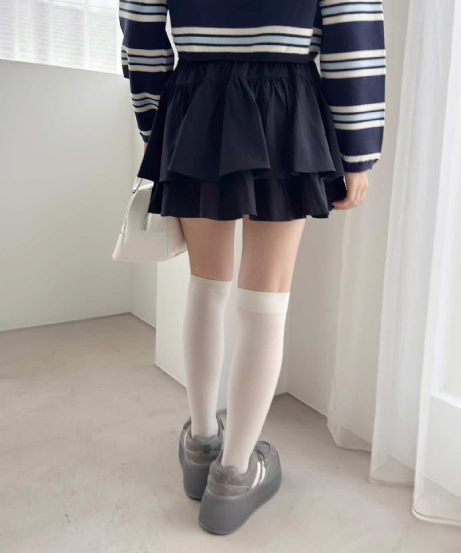 ふわっと広がるフリルティアードがかわいい韓国風スカート