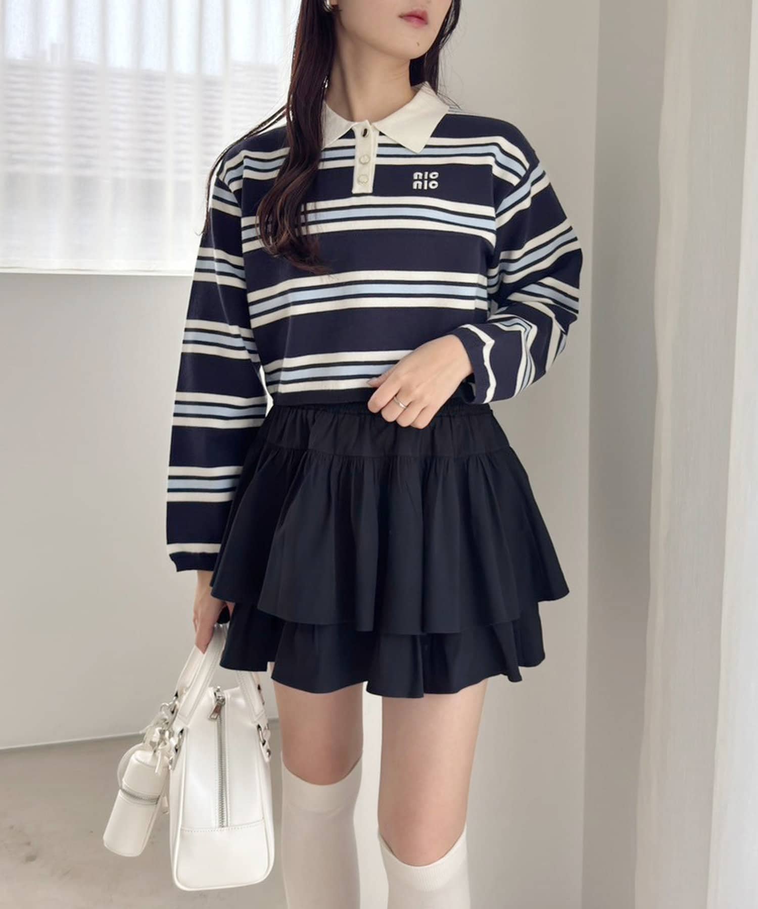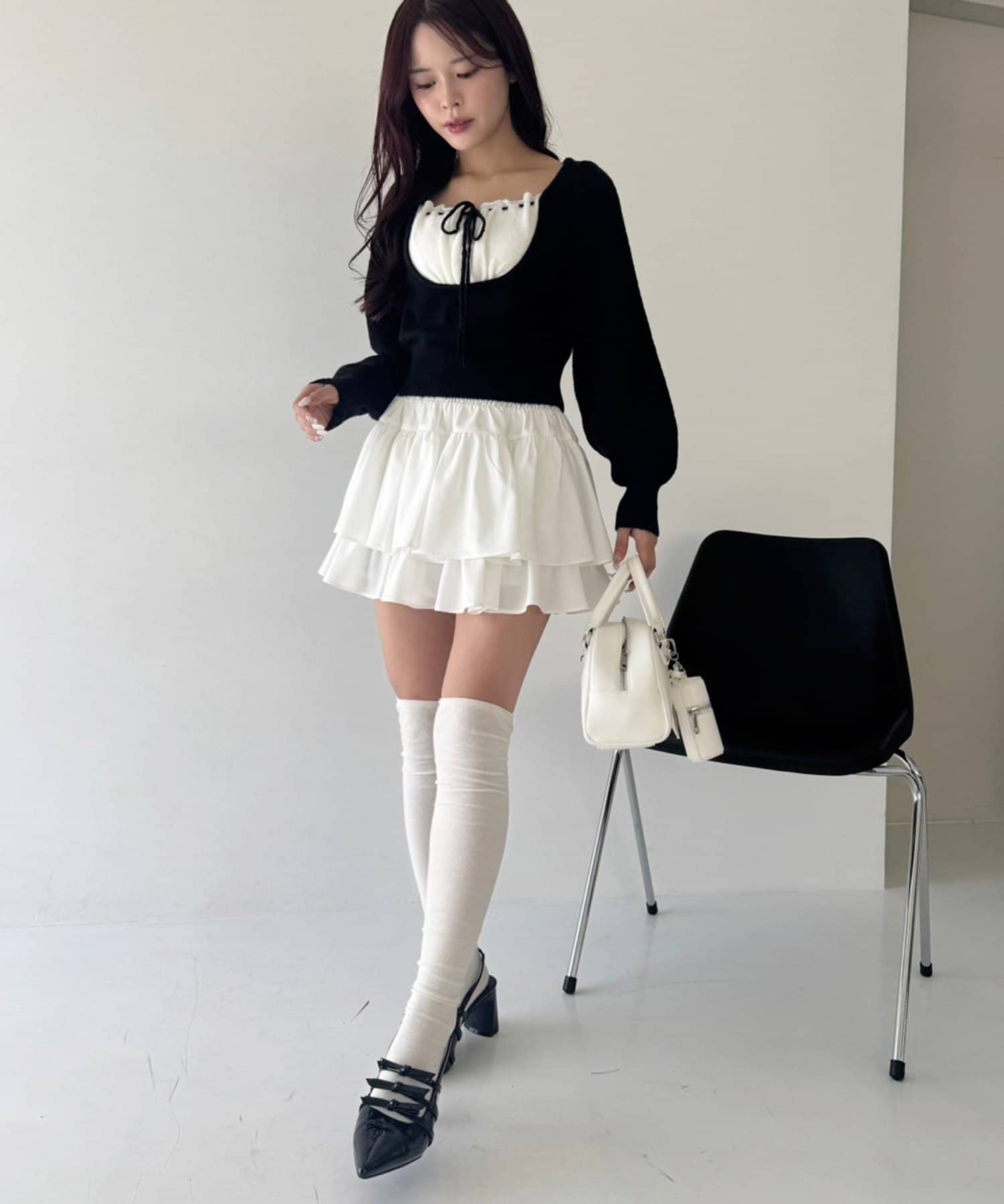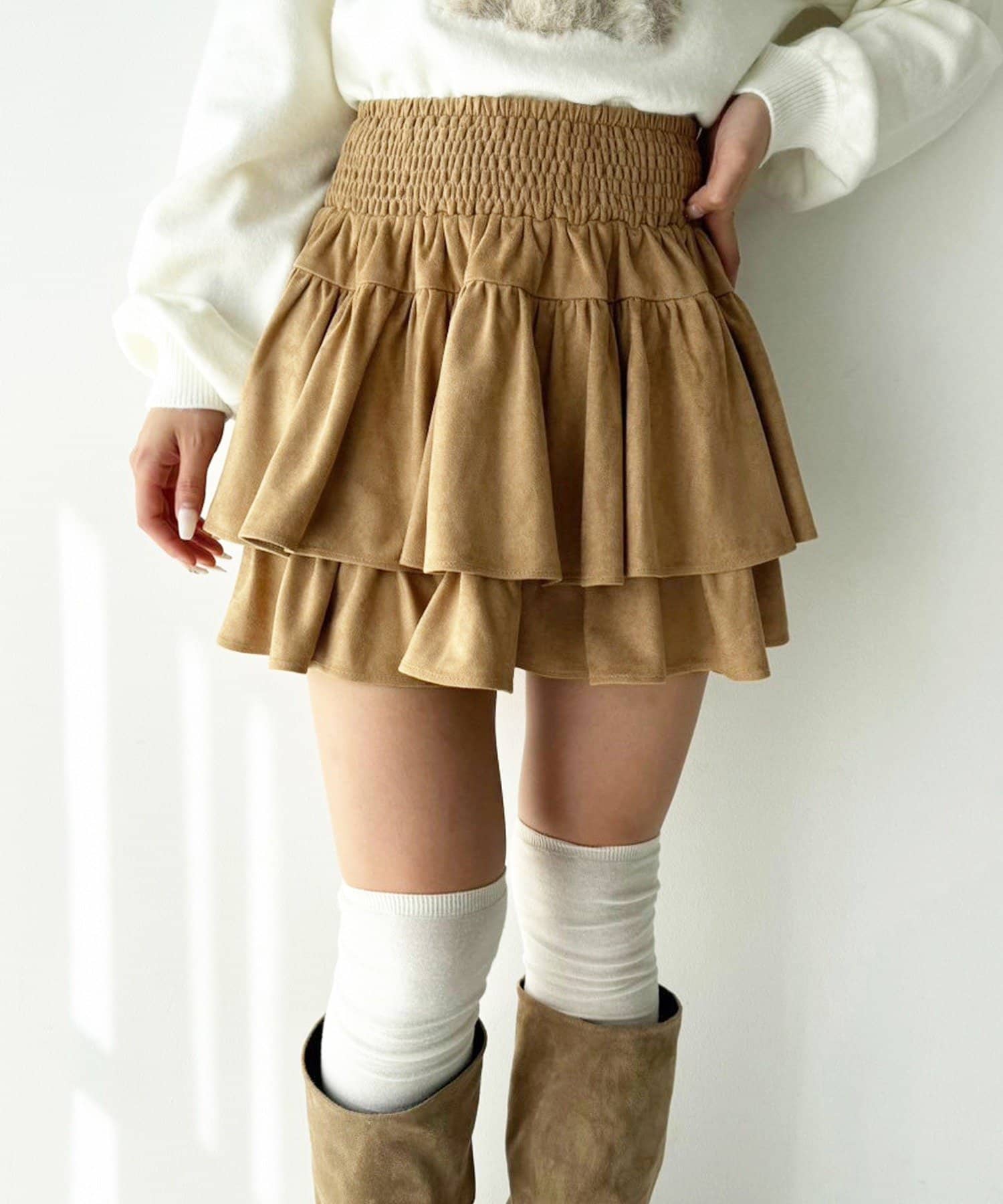 ふわっと広がるフリルティアードがかわいい韓国風スカート