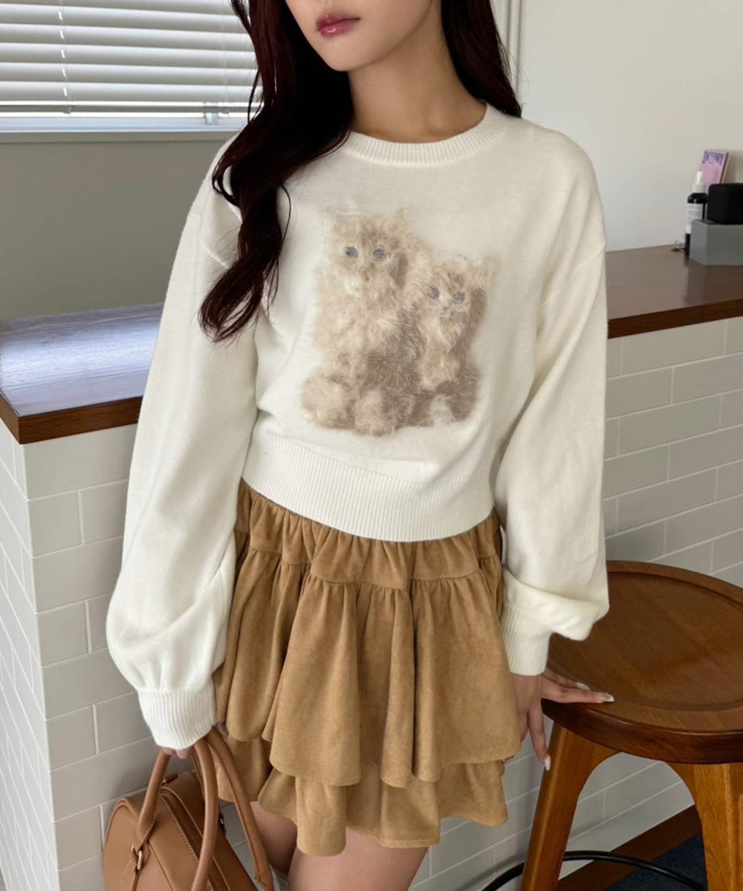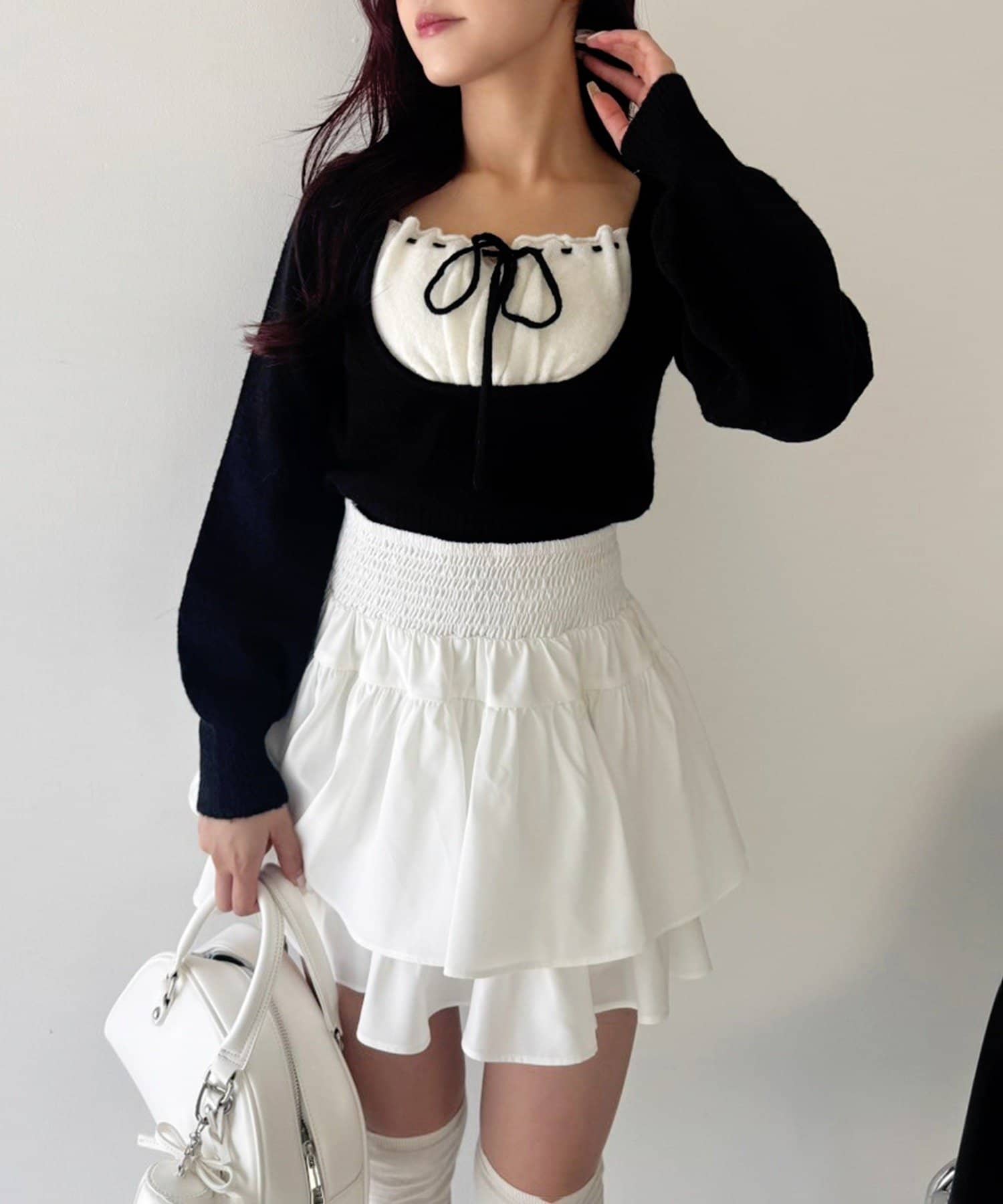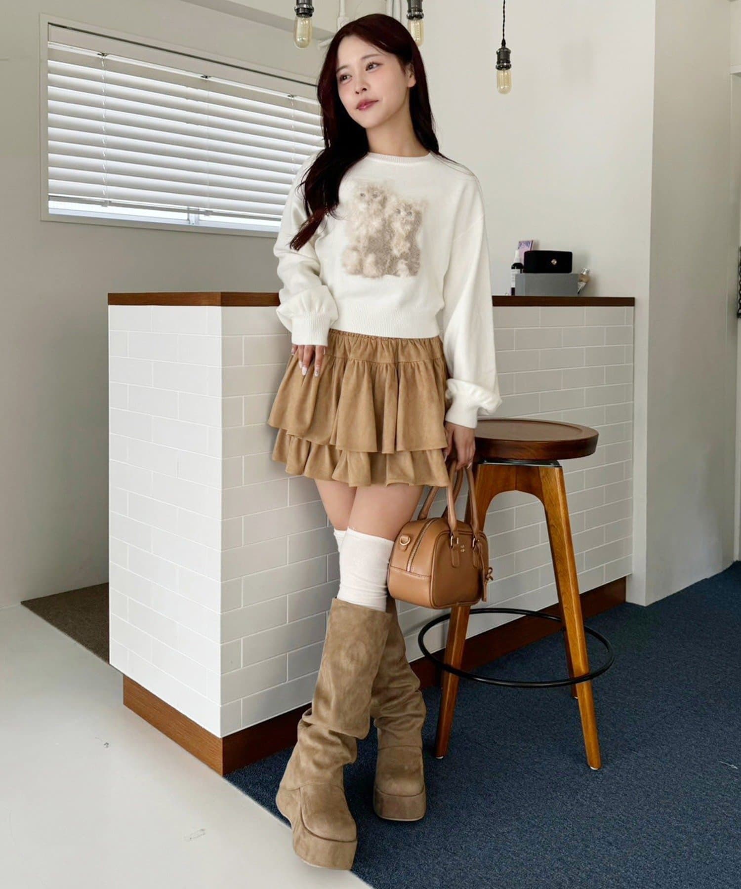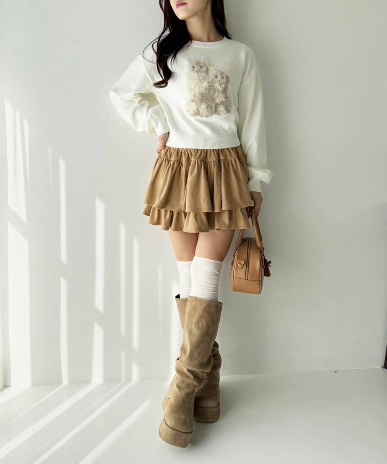 ふわっと広がるフリルティアードがかわいい韓国風スカート