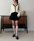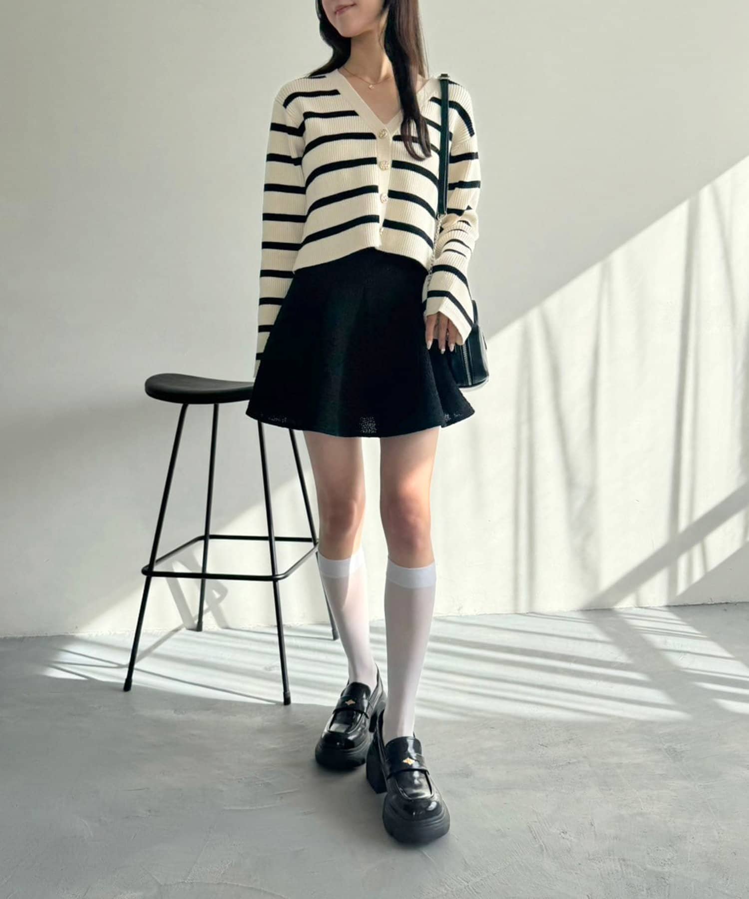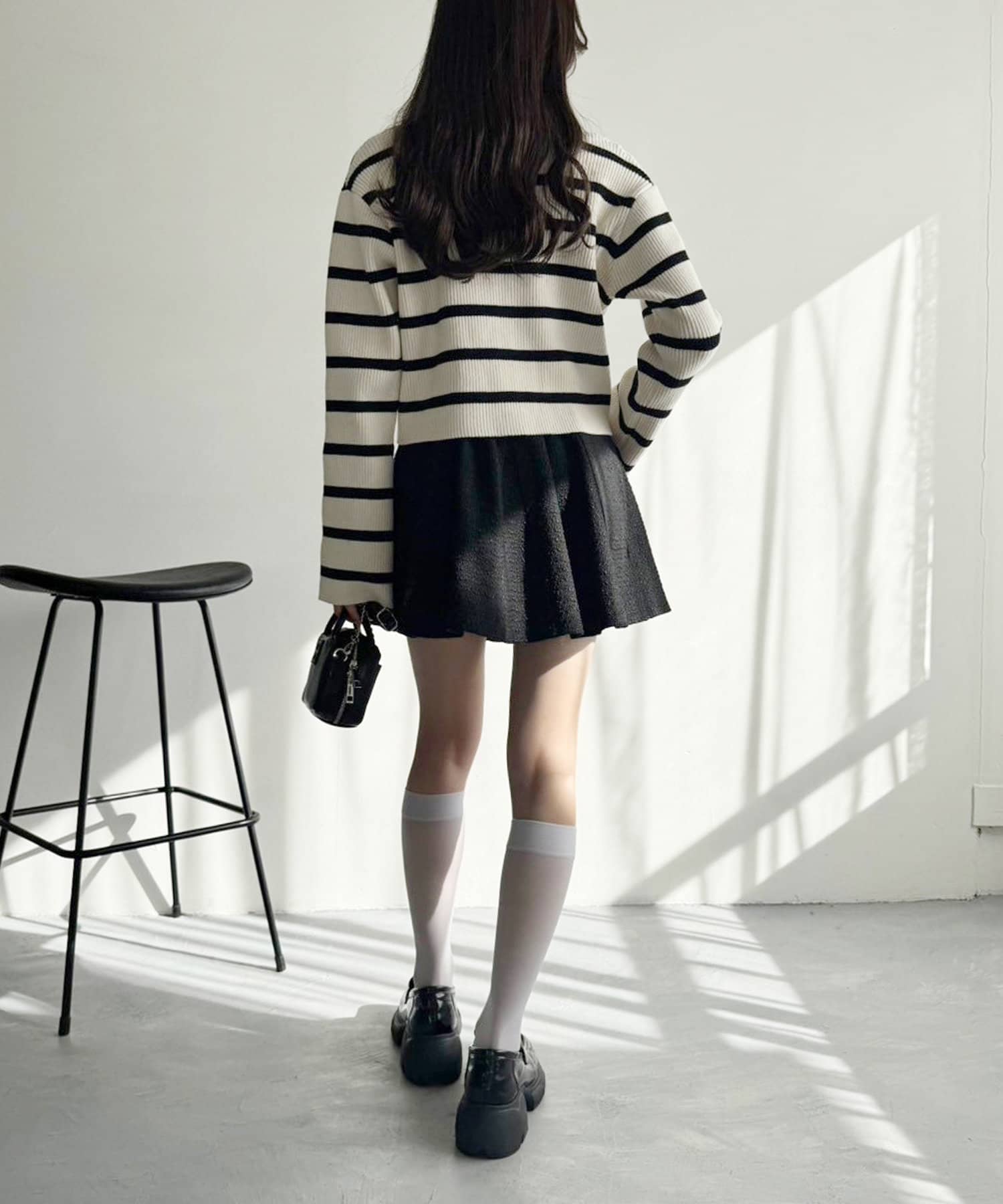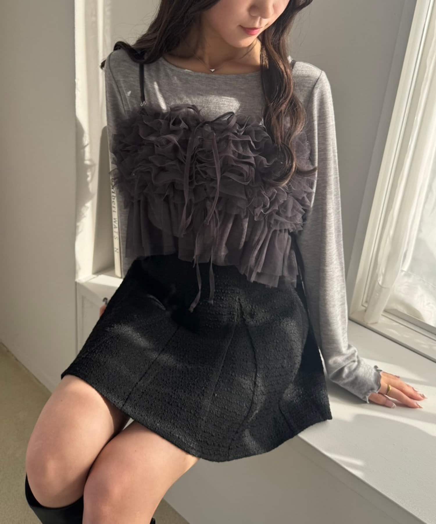 より可愛らしくしたい方はブラウス合わせで上品さをプラスするのがオススメ。