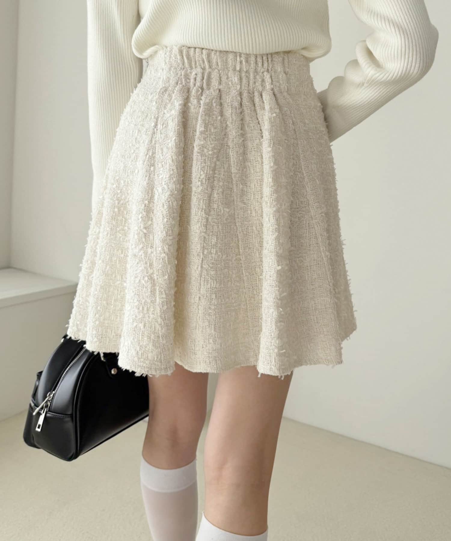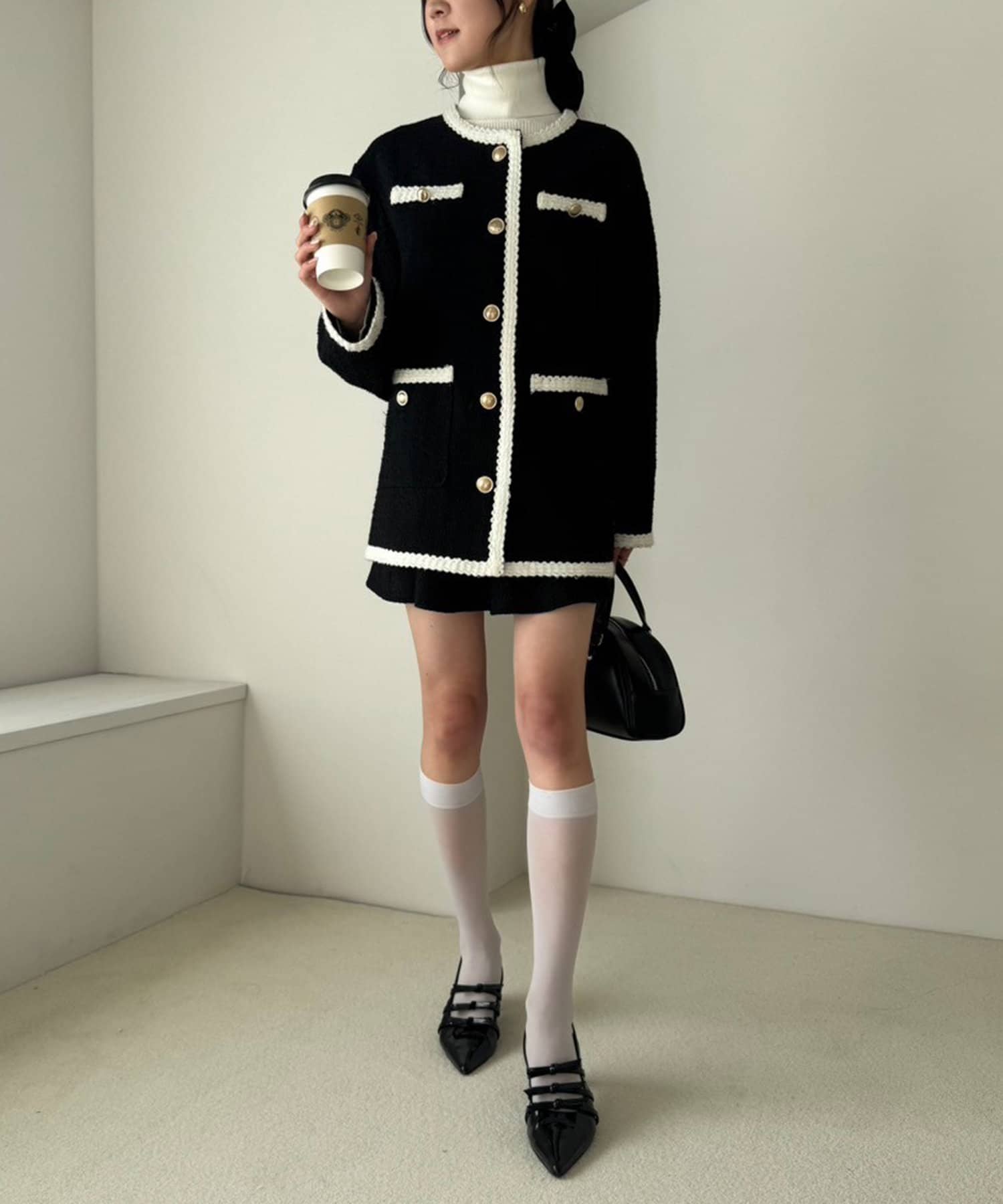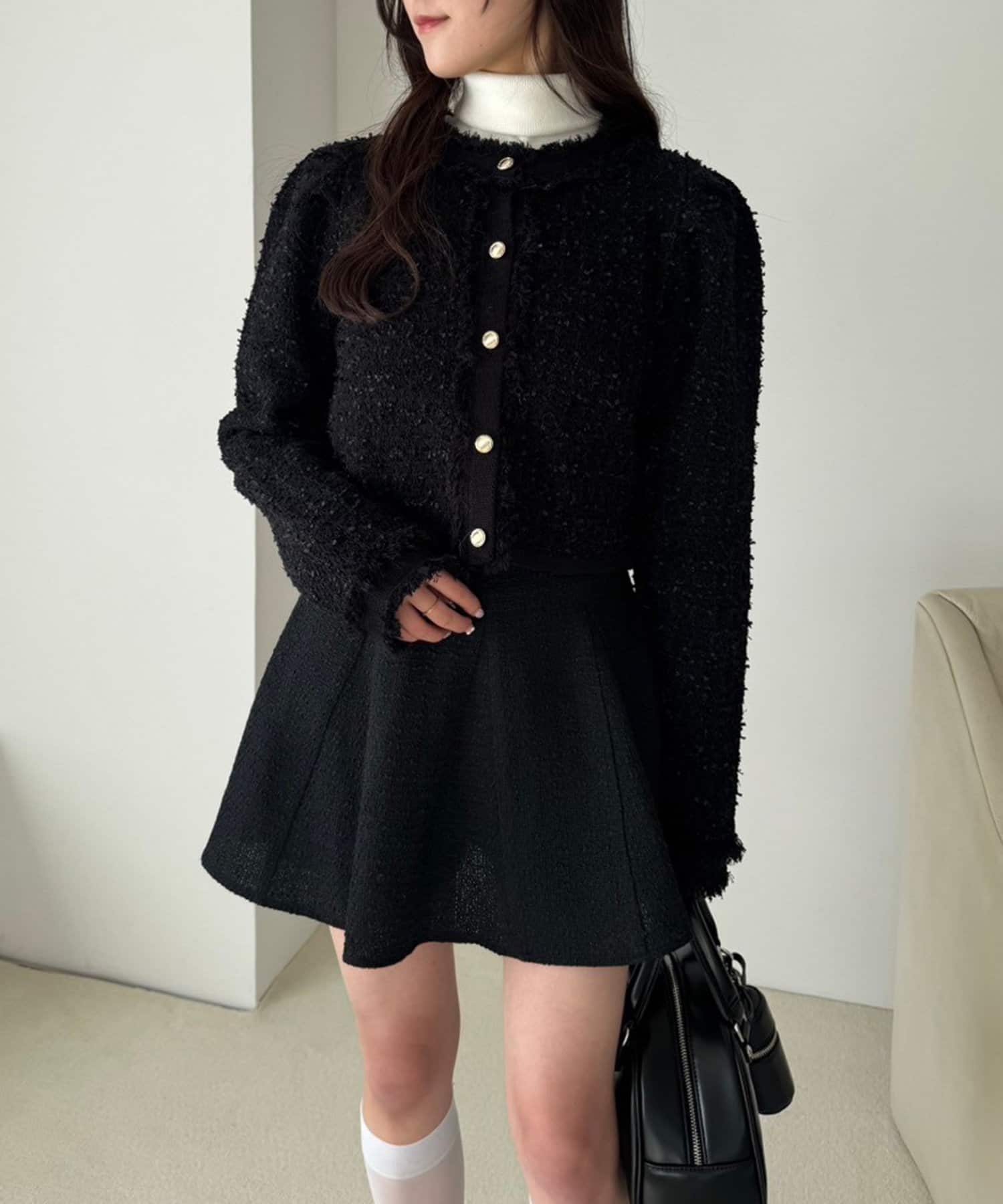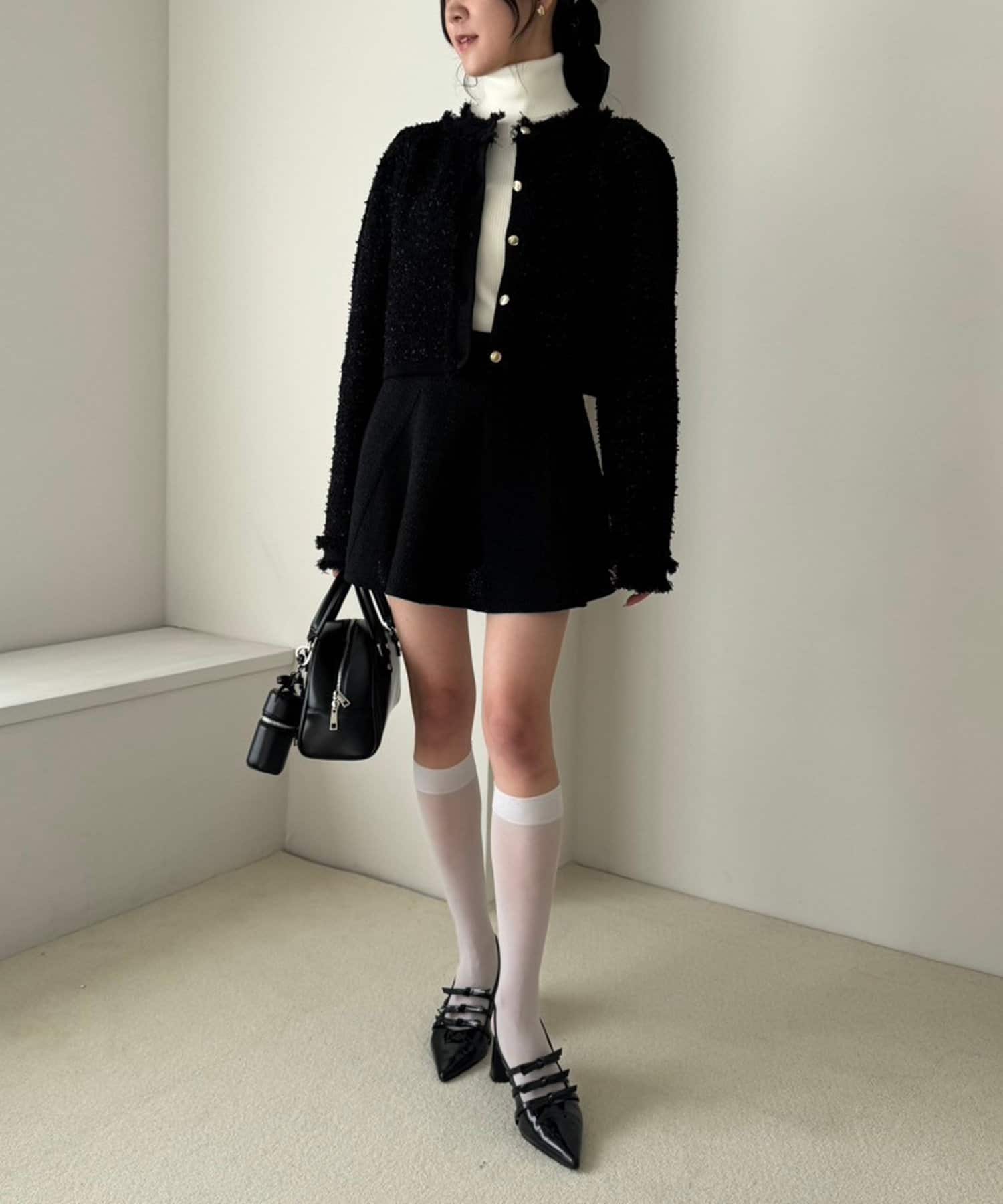 ツイードならではの高級感漂うアイテムは、シンプルコーデにも映えます。