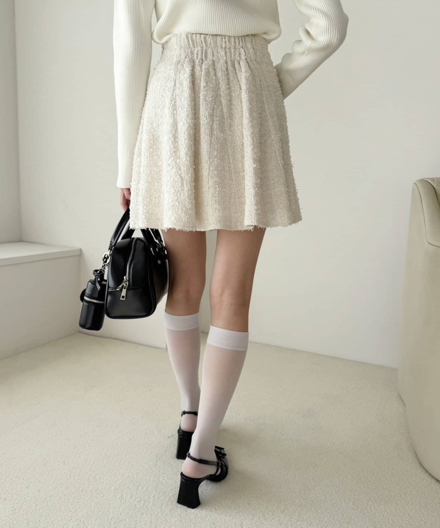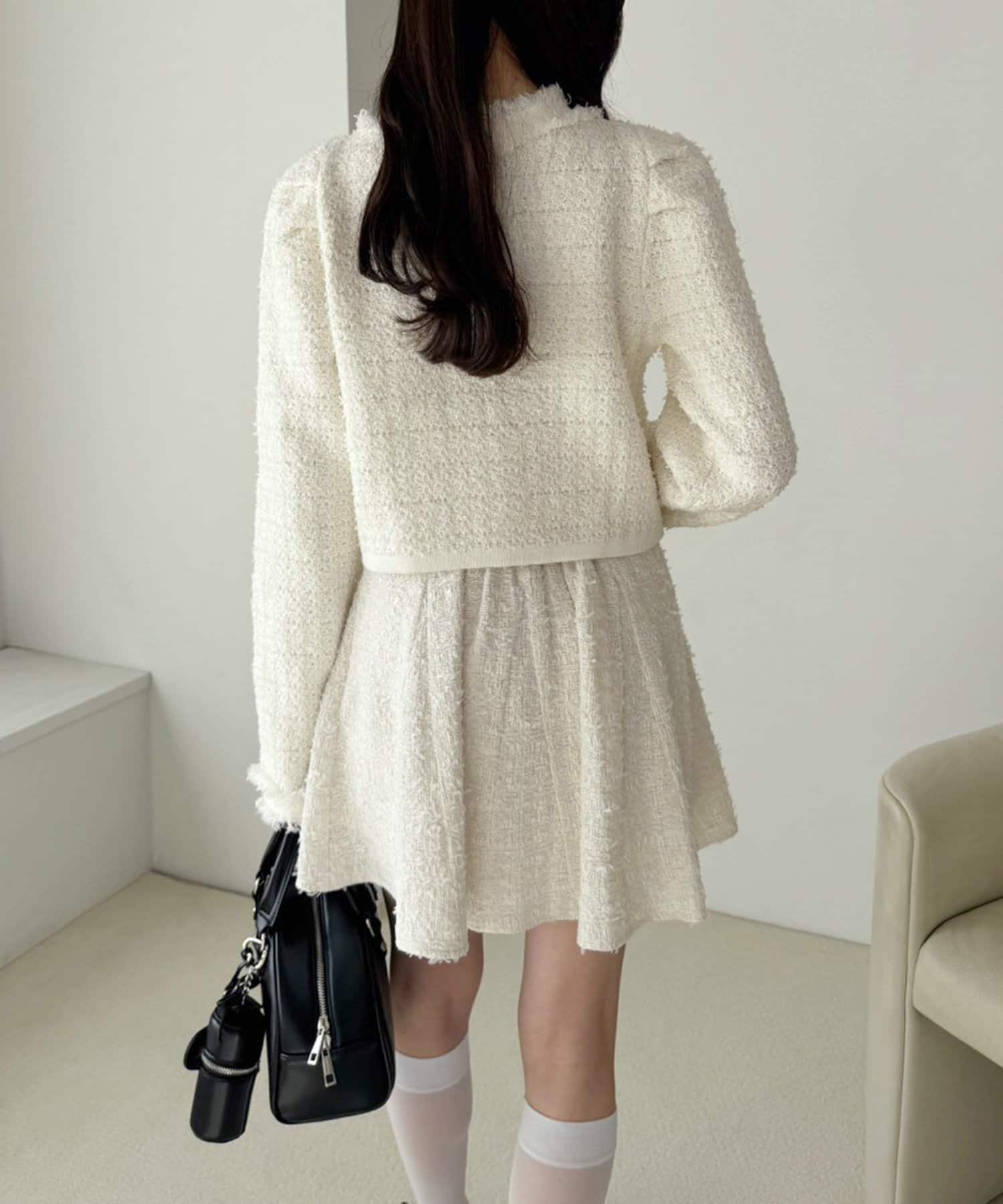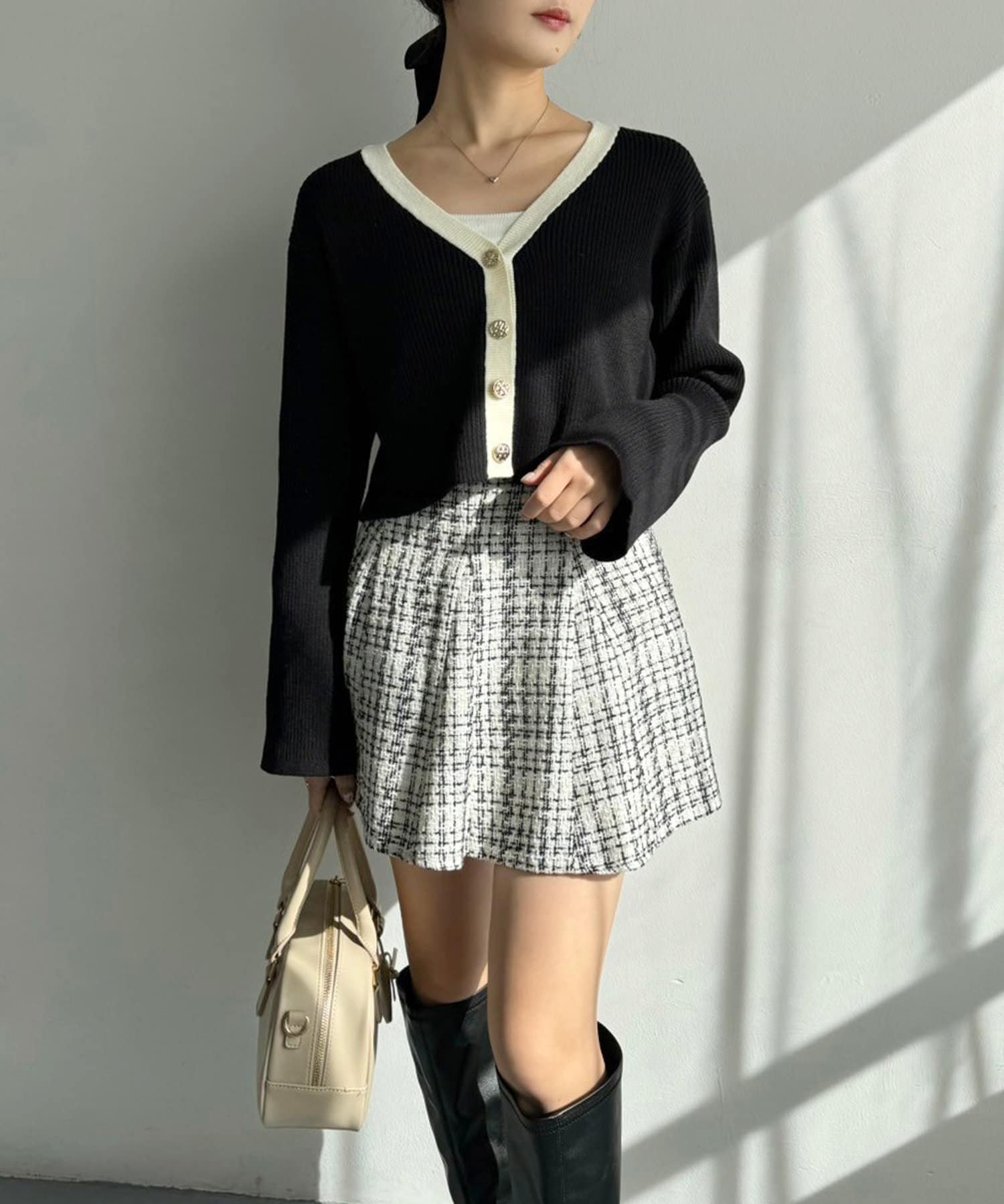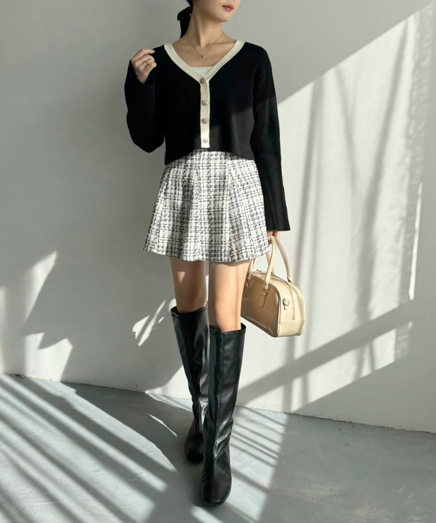 ツイードならではの高級感漂うアイテムは、シンプルコーデにも映えます。