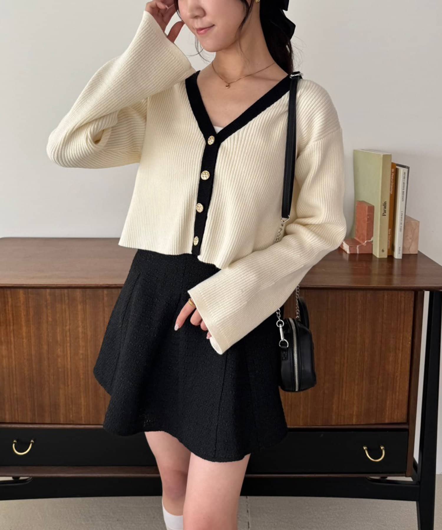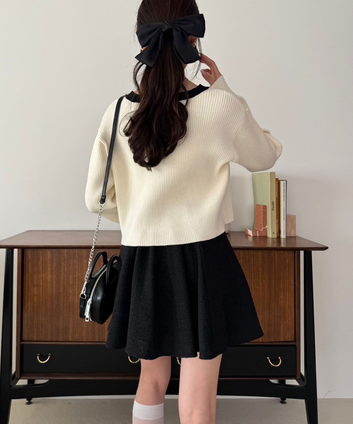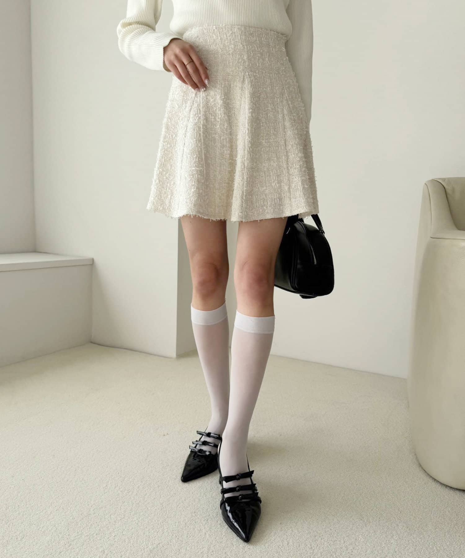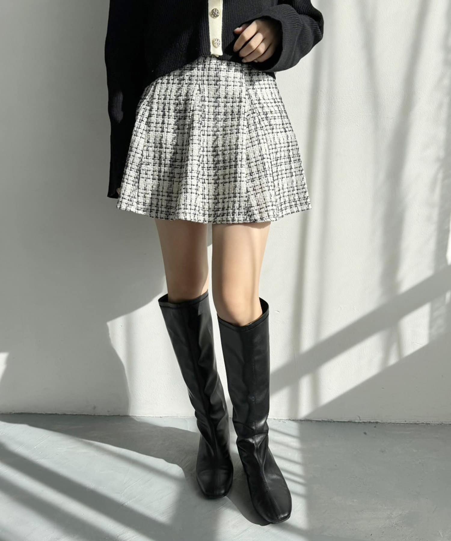 ツイードならではの高級感漂うアイテムは、シンプルコーデにも映えます。
